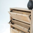 نظّم مدخل منزلك مع رف الأحذية الخشبي الأنيق المصنوع من خشب الروطان، والمُتقن الصنع من الخشب الصلب لضمان متانته. يجمع تصميمه الجذاب بين العملية والأناقة، موفراً مساحة تخزين واسعة. يأتي مع ضمان لمدة عام كامل لراحة بالك!