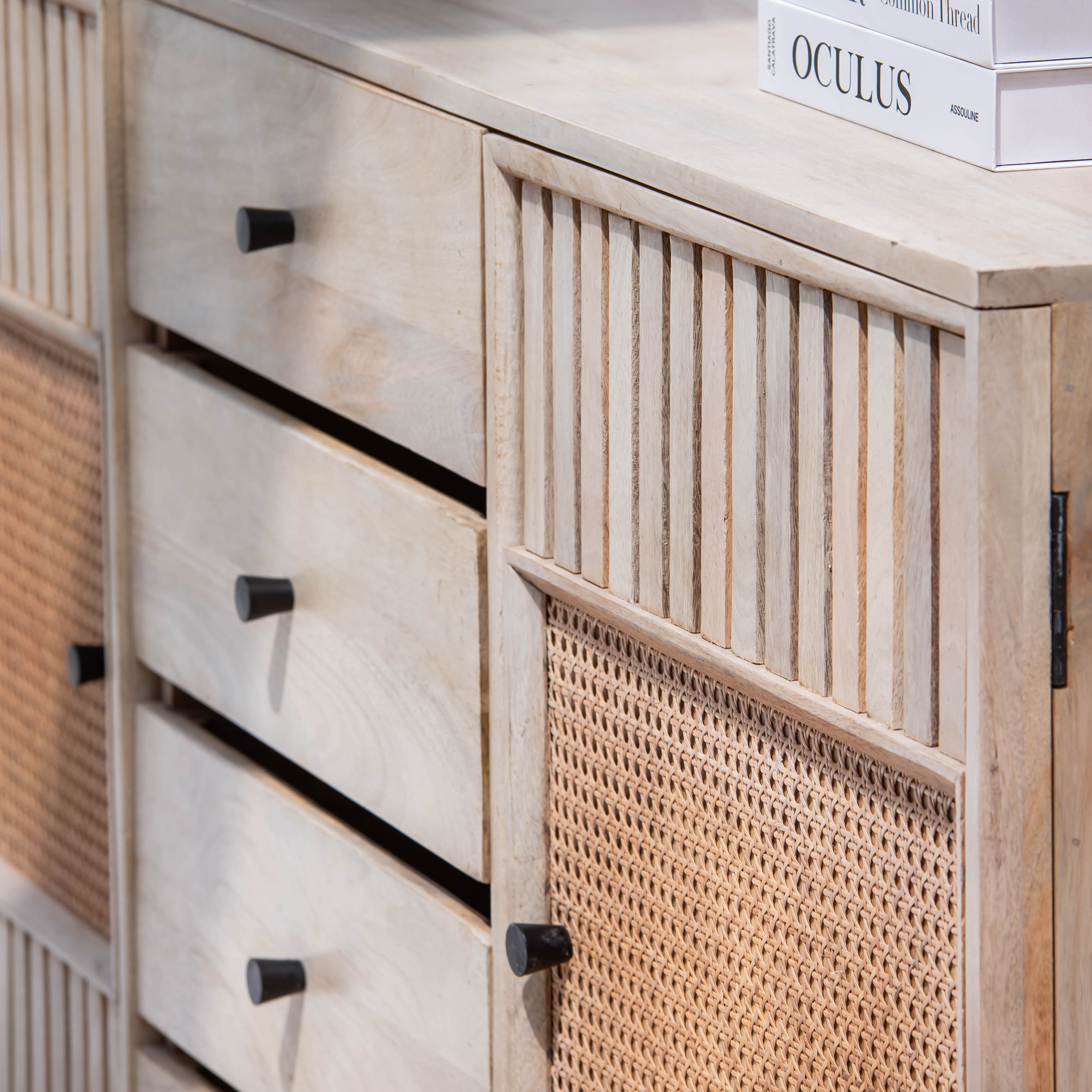 خزانة جانبية من خشب القصب من كانوفيا ببابين وأربعة أدراج