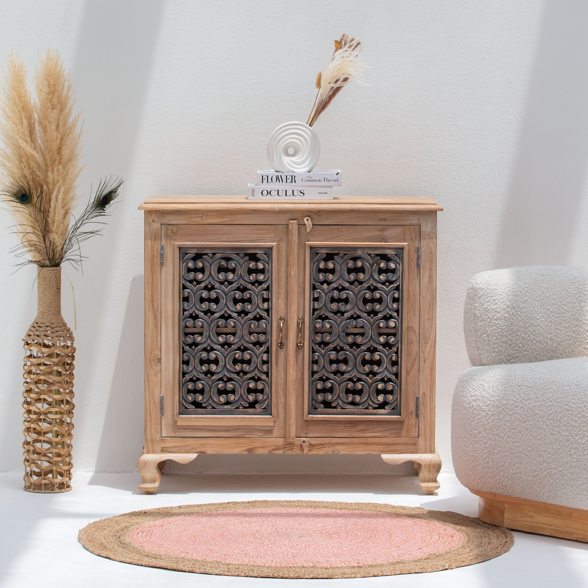 خزانة جانبية خشبية من شارلور ببابين، توفر مساحة تخزين عملية بلمسة نهائية دافئة من الخشب الطبيعي، تُضفي لمسة جمالية على أي غرفة معيشة أو طعام. يضمن تصميمها المتين عمرًا طويلًا، بينما يوفر البابان سهولة الوصول لترتيب الأغراض الأساسية بشكل أنيق. تُعزز هذه الخزانة أناقة منزلك ووظائفه العملية، إذ تجمع بين التصميم الكلاسيكي والراحة اليومية.