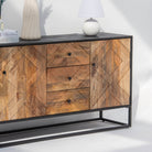 خزانة جانبية خشبية من خشب المورو بثلاثة أبواب وثلاثة أدراج