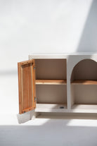 The Natura Curve Wooden One Door Sideboard brings organic elegance to any room with its gracefully curved silhouette and warm wood construction. This handcrafted piece features a single door design, offering practical storage while maintaining a refined aesthetic. The flowing lines and natural wood grain celebrate traditional craftsmanship, making it a statement piece that complements both contemporary and classic interiors. Perfect for displaying treasured items or concealing everyday essentials with understated sophistication.