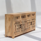 تُجسّد خزانة سييرا الخشبية ذات الأربعة أبواب براعة حرفية أصيلة، فهي مصنوعة يدويًا من خشب المانجو الصلب الفاخر. تتميز هذه القطعة المصنوعة في الهند بتصميم أنيق بأربعة أبواب وأربعة أدراج، مما يوفر مساحة تخزين واسعة لغرف الطعام والمعيشة والمداخل. يُبرز تشطيب الخشب الطبيعي أنماط حبيبات خشب المانجو الدافئة والعضوية، ليخلق جمالية خالدة تُناسب الديكورات الداخلية التقليدية والمعاصرة على حد سواء. صُممت هذه الخزانة لتدوم طويلًا، فهي تجمع بين التصميم العملي والجودة الحرفية، مما يجعلها استثمارًا في أثاث متين ومستدام المصدر.