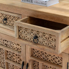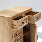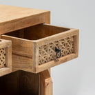 تُجسّد خزانة سييرا الجانبية براعة الصنع الأصيلة، فهي مصنوعة يدويًا من خشب المانجو الصلب الفاخر المستورد من الهند. يجمع تصميمها ذو الدرجين والبابين بين التخزين العملي والجاذبية الخالدة، إذ يتميز بتنوع حبيبات الخشب الطبيعية وألوانه الدافئة التي تُميز خشب المانجو عالي الجودة. تعكس كل قطعة دقة الصنع، مما يضمن متانتها وجمالها الفريد الذي يُضفي لمسة جمالية على الديكورات الداخلية التقليدية والمعاصرة على حد سواء. تُعدّ هذه الخزانة مثالية لغرف الطعام والمعيشة والمداخل التي تبحث عن أثاث متين ومتقن الصنع ذي طابع مميز.