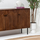 تجمع خزانة VERVE الخشبية ذات الأبواب الثلاثة بين الحرفية الأصيلة والتصميم الخالد. مصنوعة يدويًا من خشب المانجو الصلب الفاخر في الهند، تتميز هذه الخزانة العملية بثلاثة أبواب واسعة تخفي رفوفًا رحبة للأطباق والبياضات أو قطع الديكور. يبرز اللون البني الغني جمال حبيبات الخشب الطبيعية، بينما يضمن هيكلها المتين عمرًا طويلًا. تُعد هذه الخزانة مثالية لغرف الطعام أو غرف المعيشة، فهي حل تخزين عملي ونقطة جذب أنيقة تُكمل الديكورات الداخلية التقليدية والمعاصرة على حد سواء.
