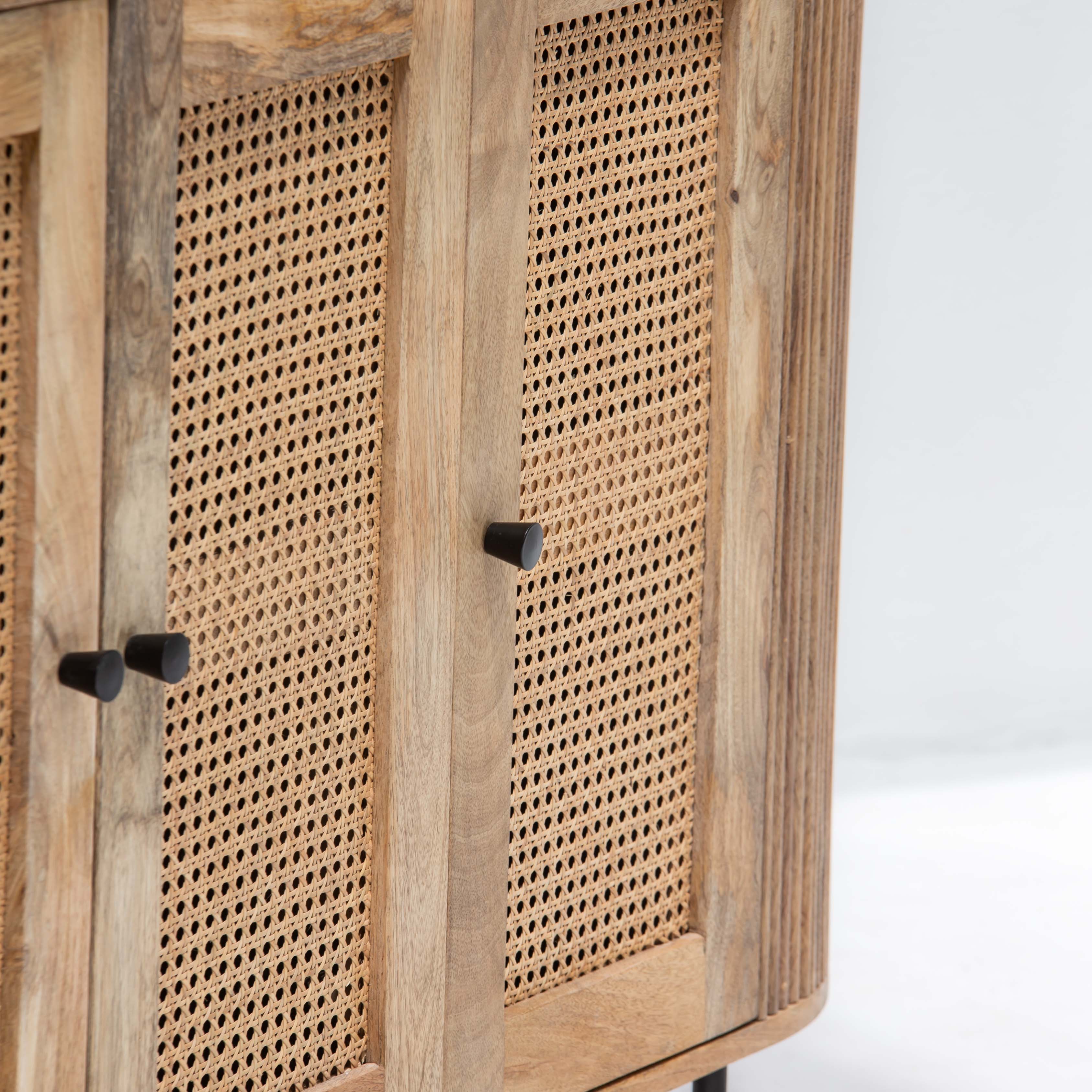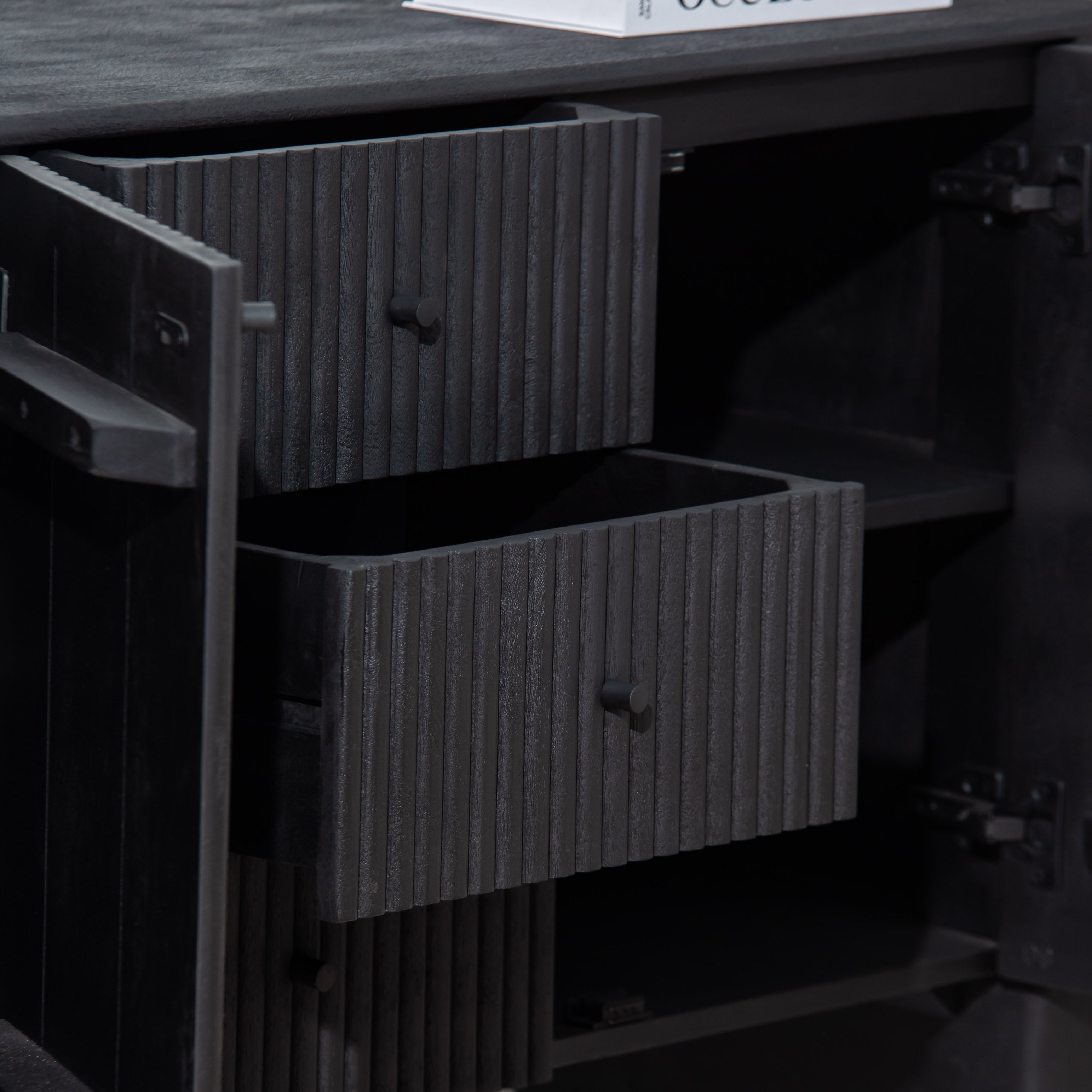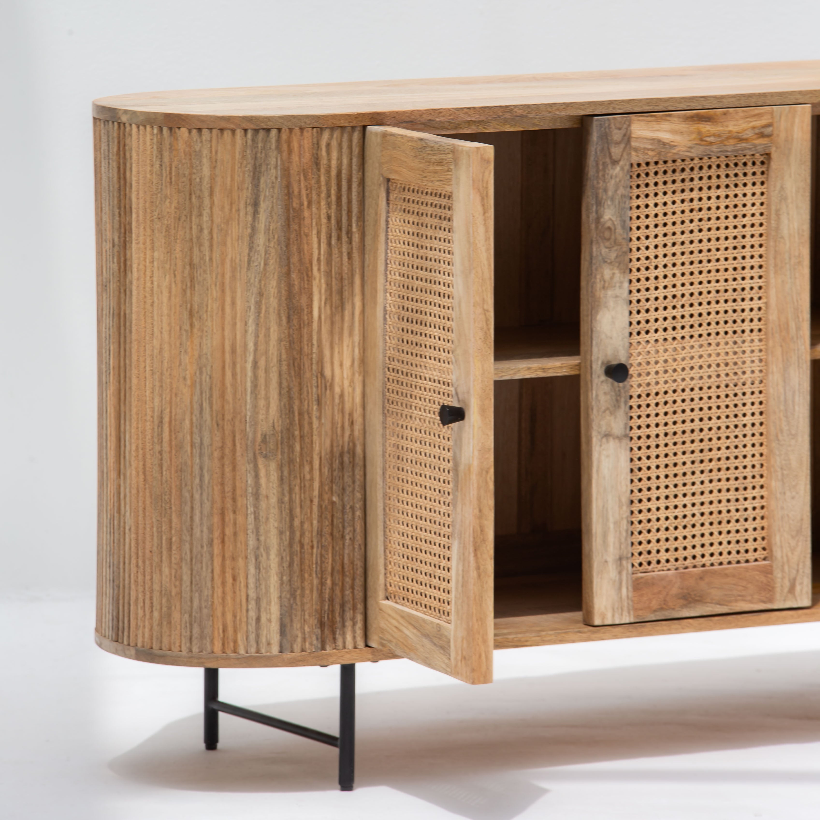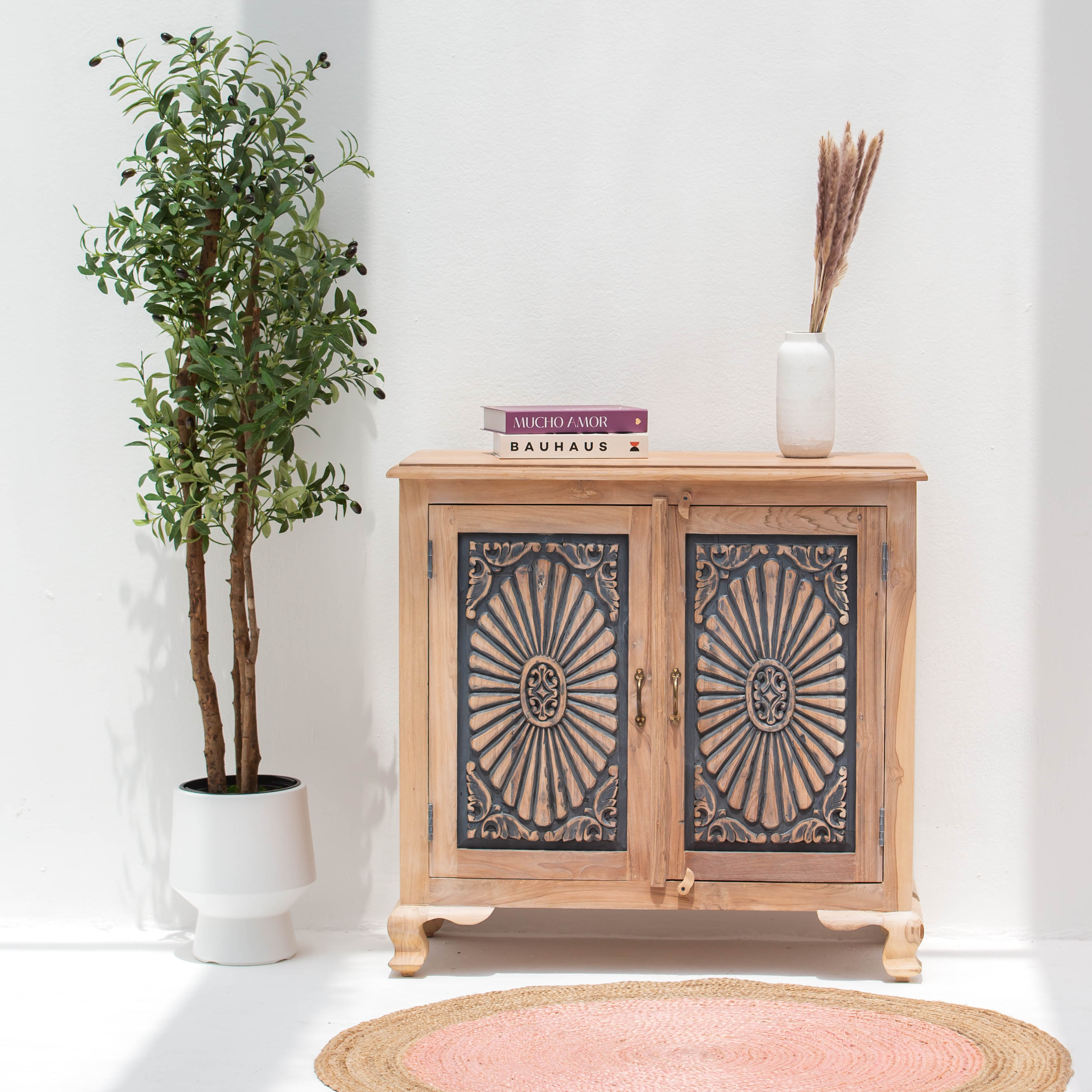 أضف لمسة من السحر الخالد والأناقة العصرية إلى مساحة معيشتك مع خزانة البوفيه المنحوتة يدويًا ، المصنوعة بحرفية عالية من خشب المانجو المستدام وخشب الأكاسيا المتين . تمزج هذه القطعة بسلاسة بين التصميم البسيط والحرفية العريقة ، لتجمع بين العملية والجمال في منزلك.