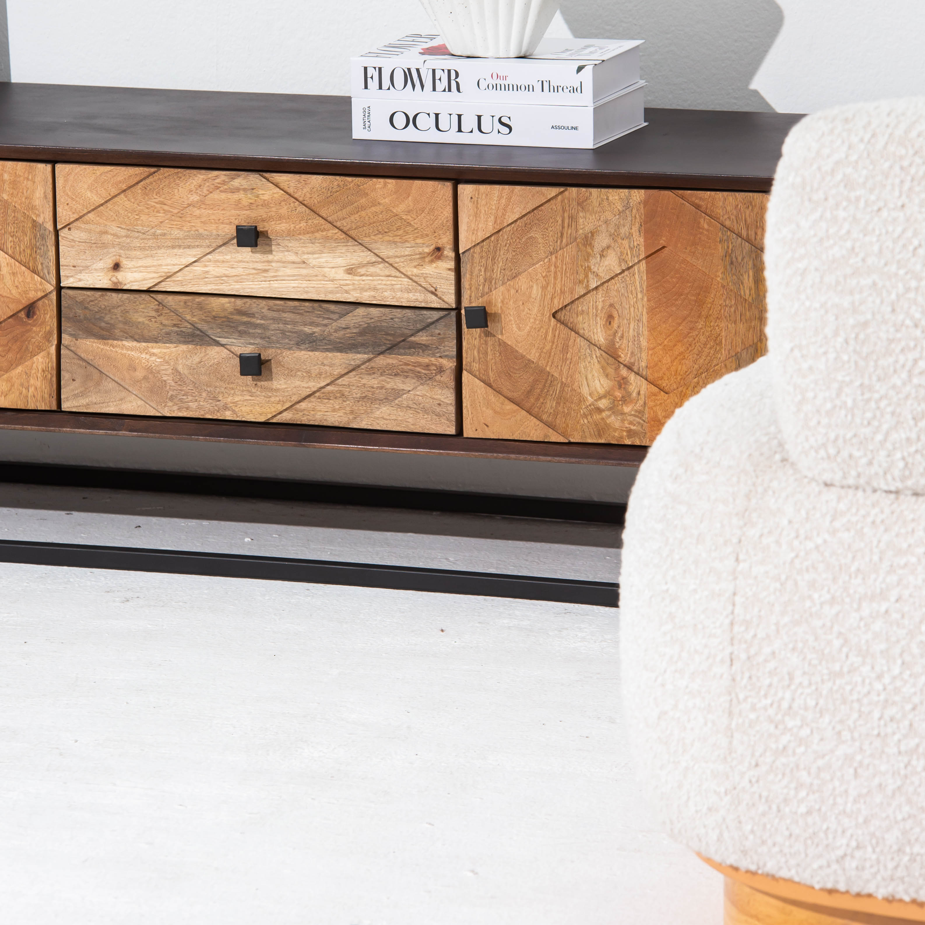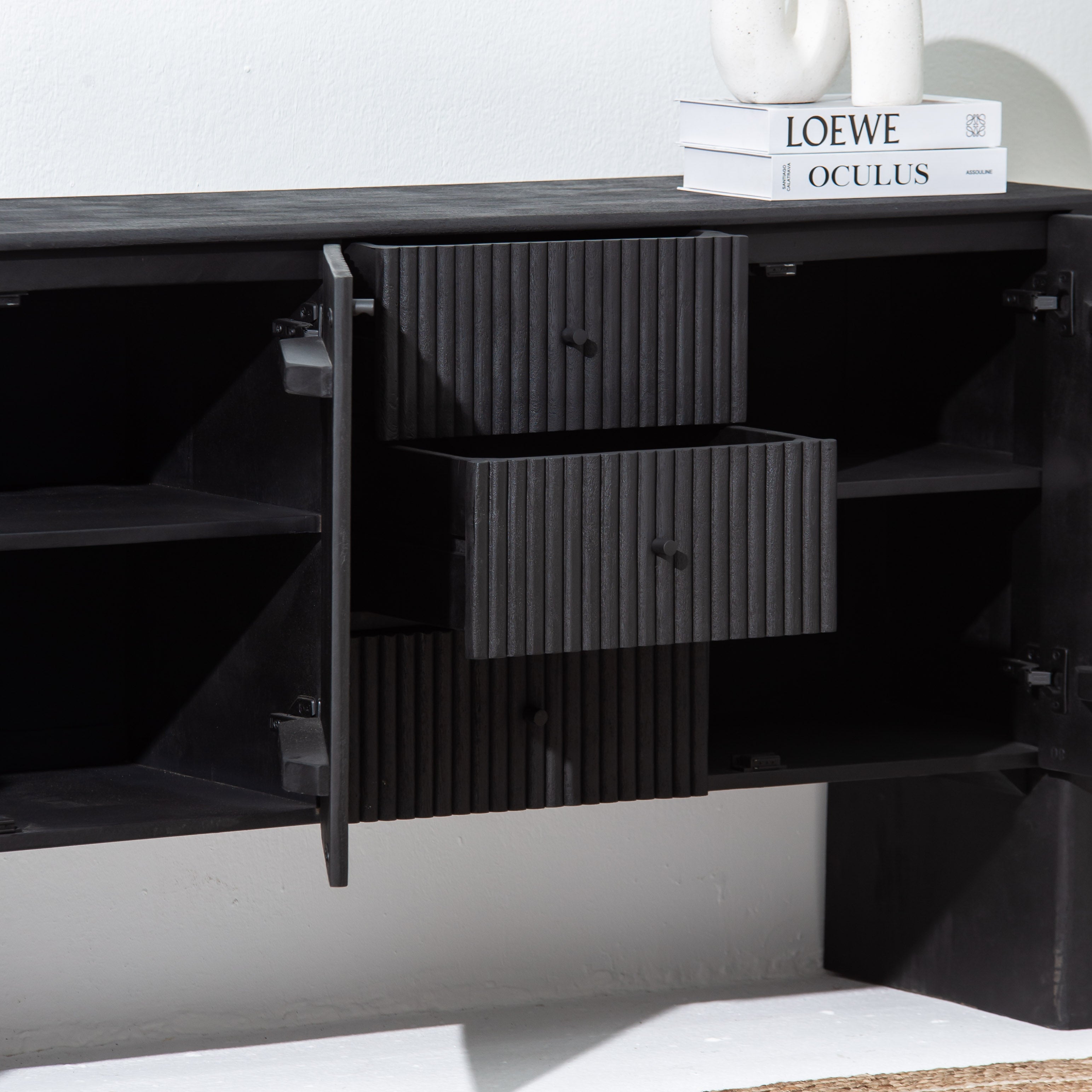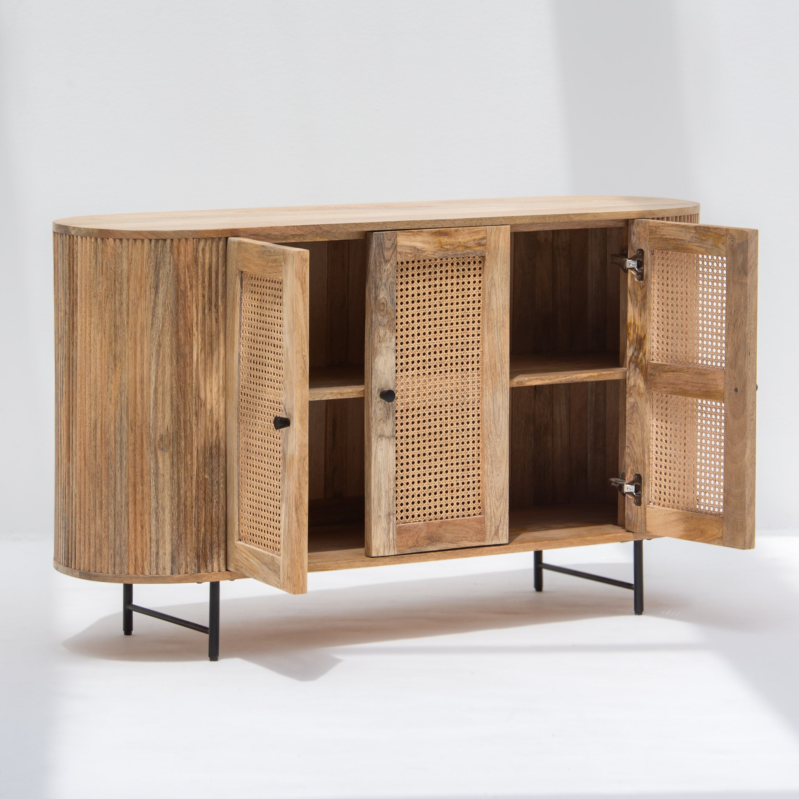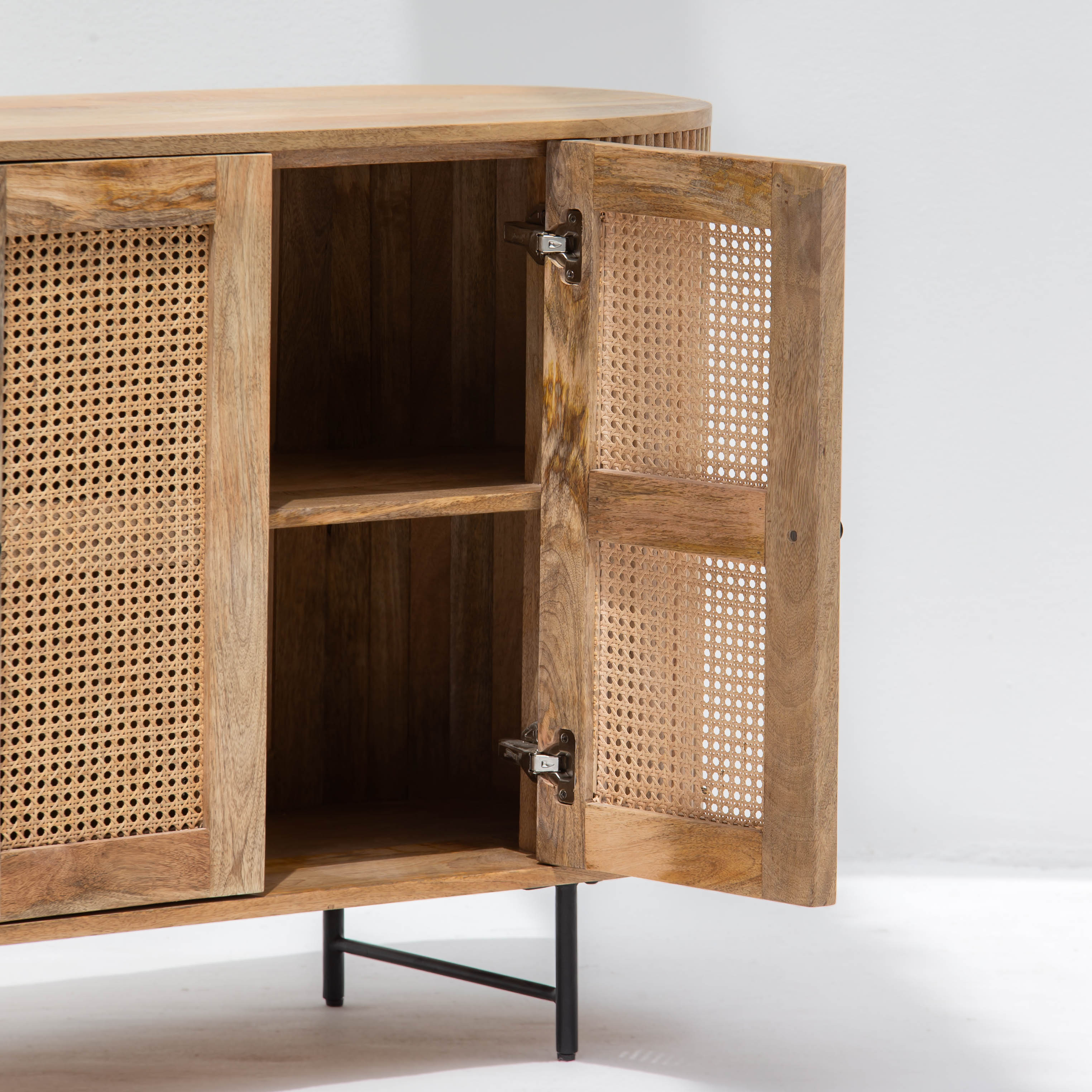 أضف لمسة من السحر الخالد والأناقة العصرية إلى مساحة معيشتك مع خزانة البوفيه المنحوتة يدويًا ، المصنوعة بحرفية عالية من خشب المانجو المستدام وخشب الأكاسيا المتين . تمزج هذه القطعة بسلاسة بين التصميم البسيط والحرفية العريقة ، لتجمع بين العملية والجمال في منزلك.