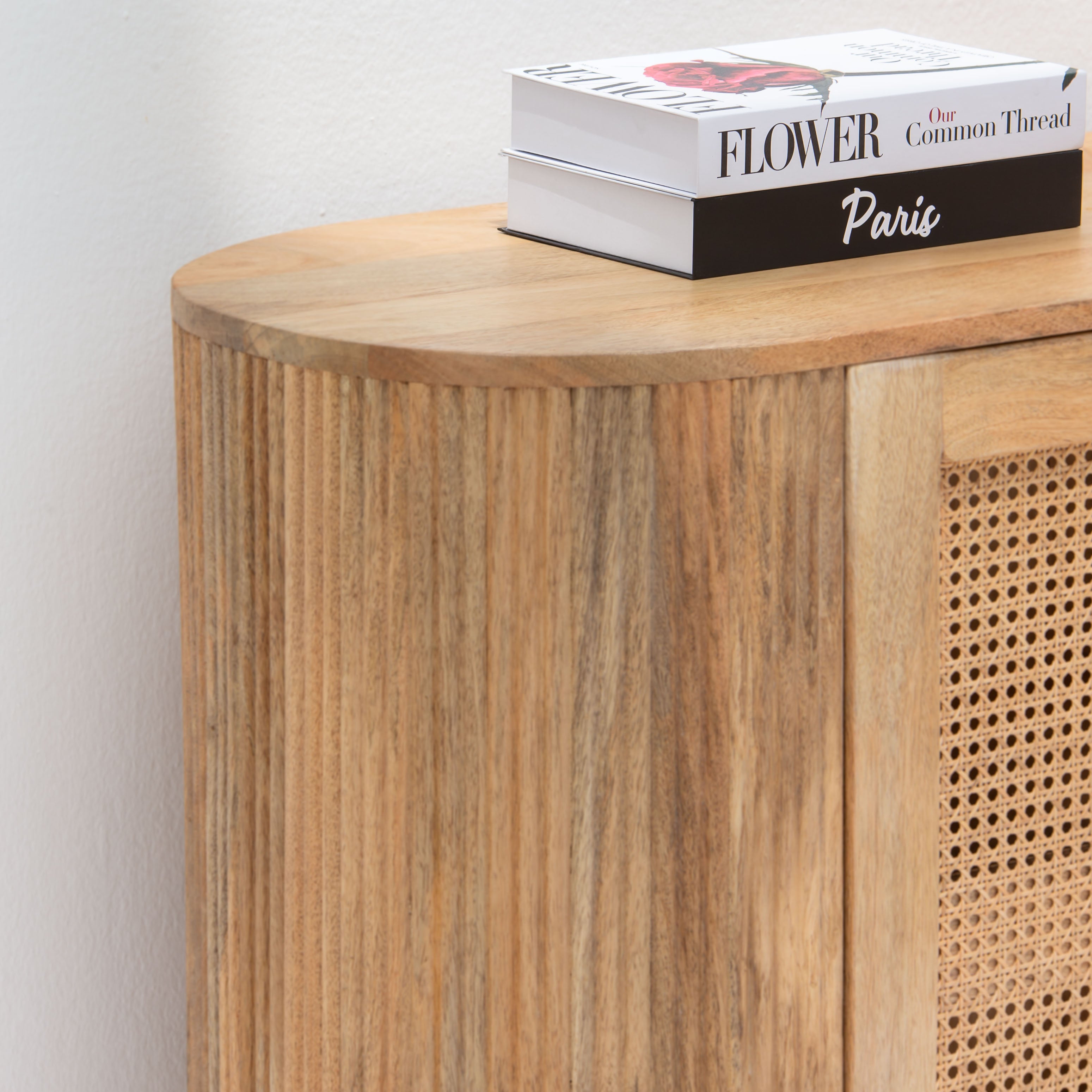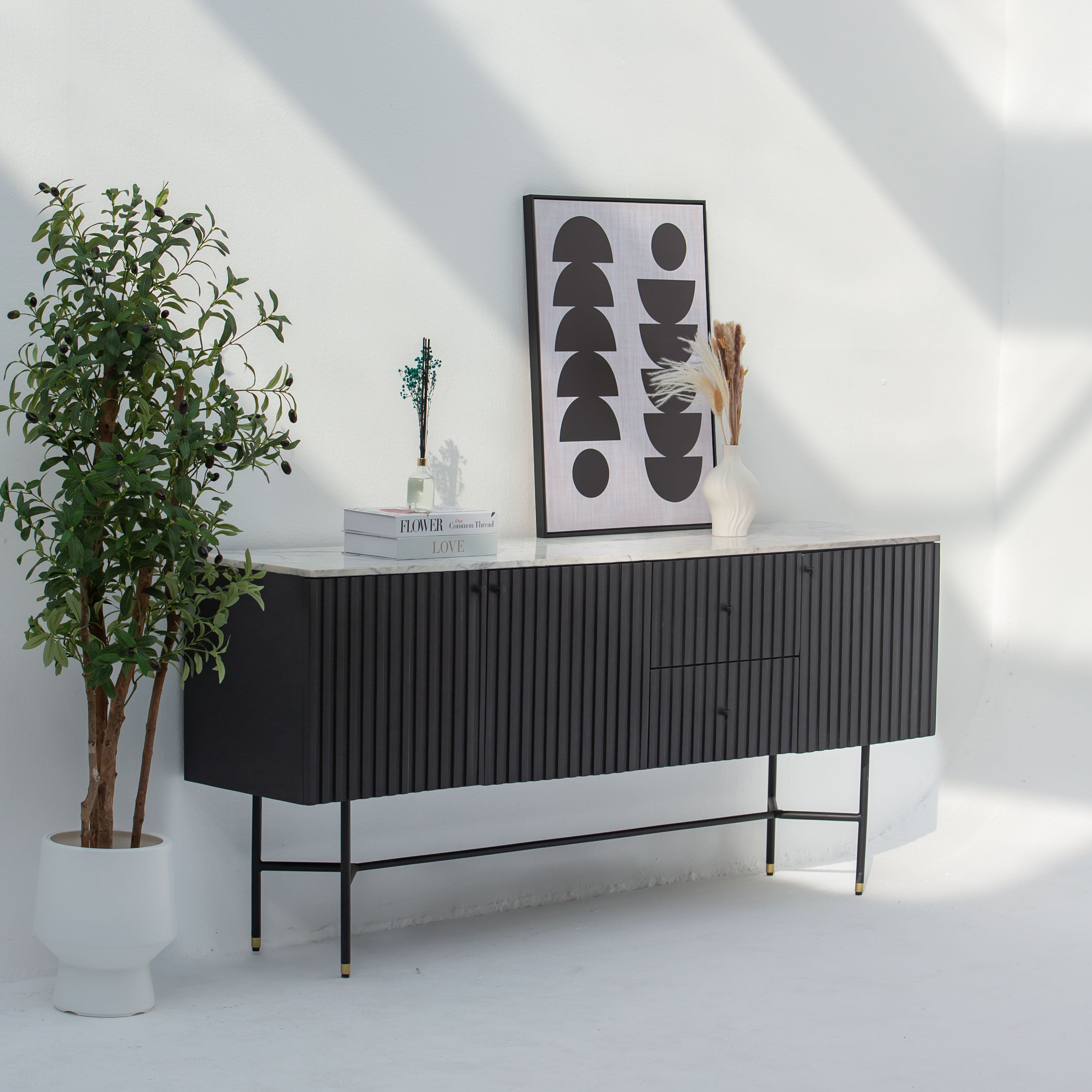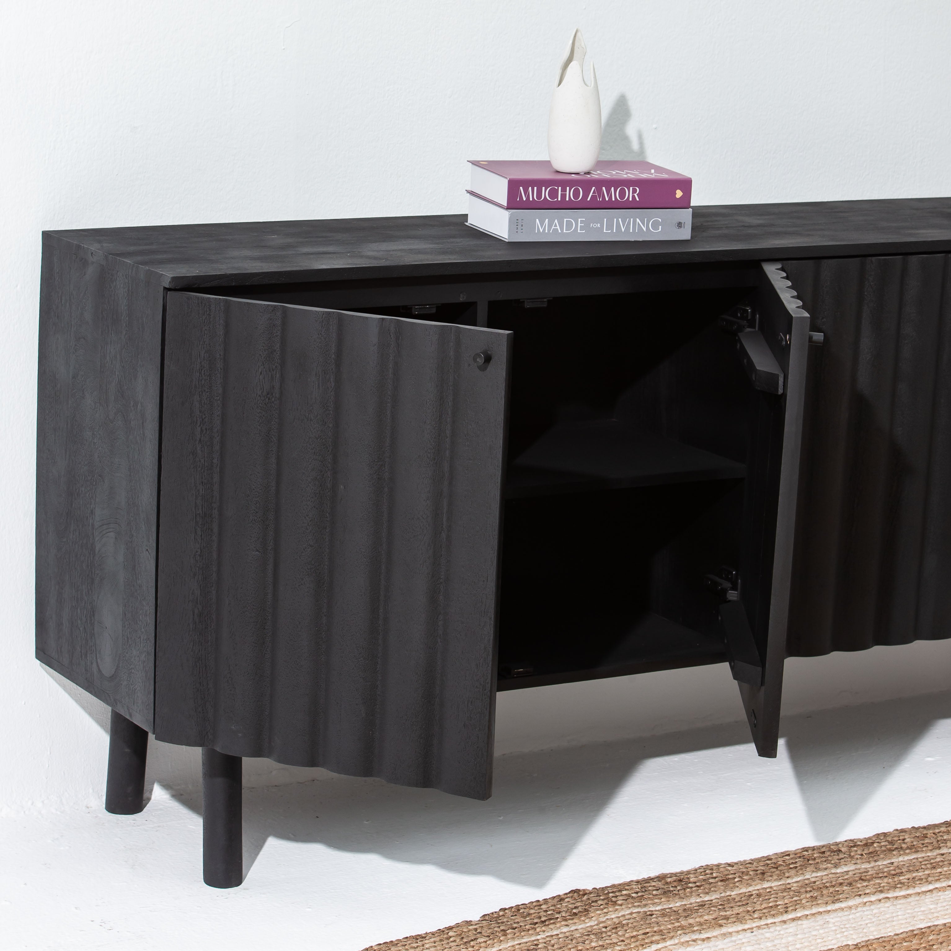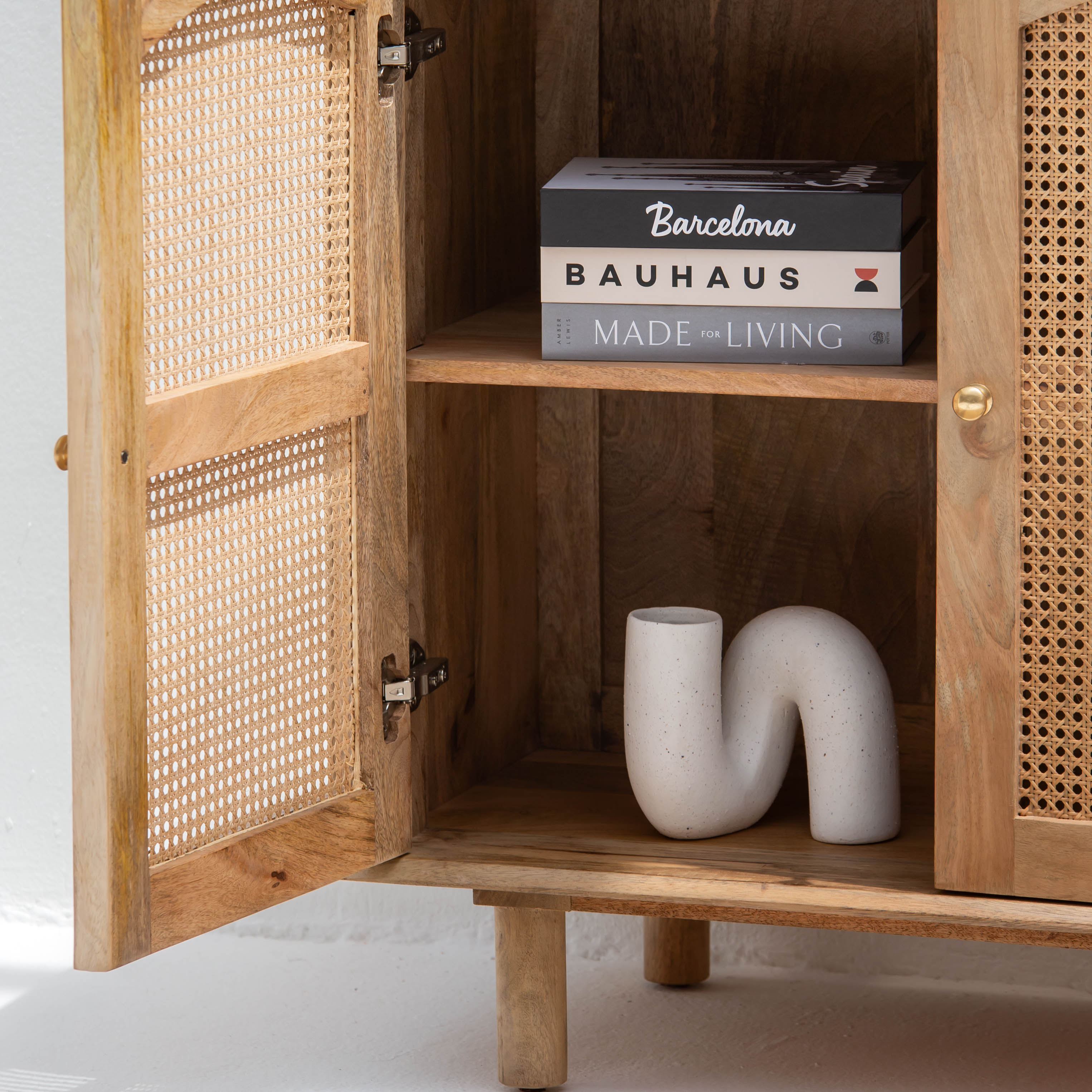 أضف لمسة من السحر الخالد والأناقة العصرية إلى مساحة معيشتك مع خزانة البوفيه المنحوتة يدويًا ، المصنوعة بحرفية عالية من خشب المانجو المستدام وخشب الأكاسيا المتين . تمزج هذه القطعة بسلاسة بين التصميم البسيط والحرفية العريقة ، لتجمع بين العملية والجمال في منزلك.