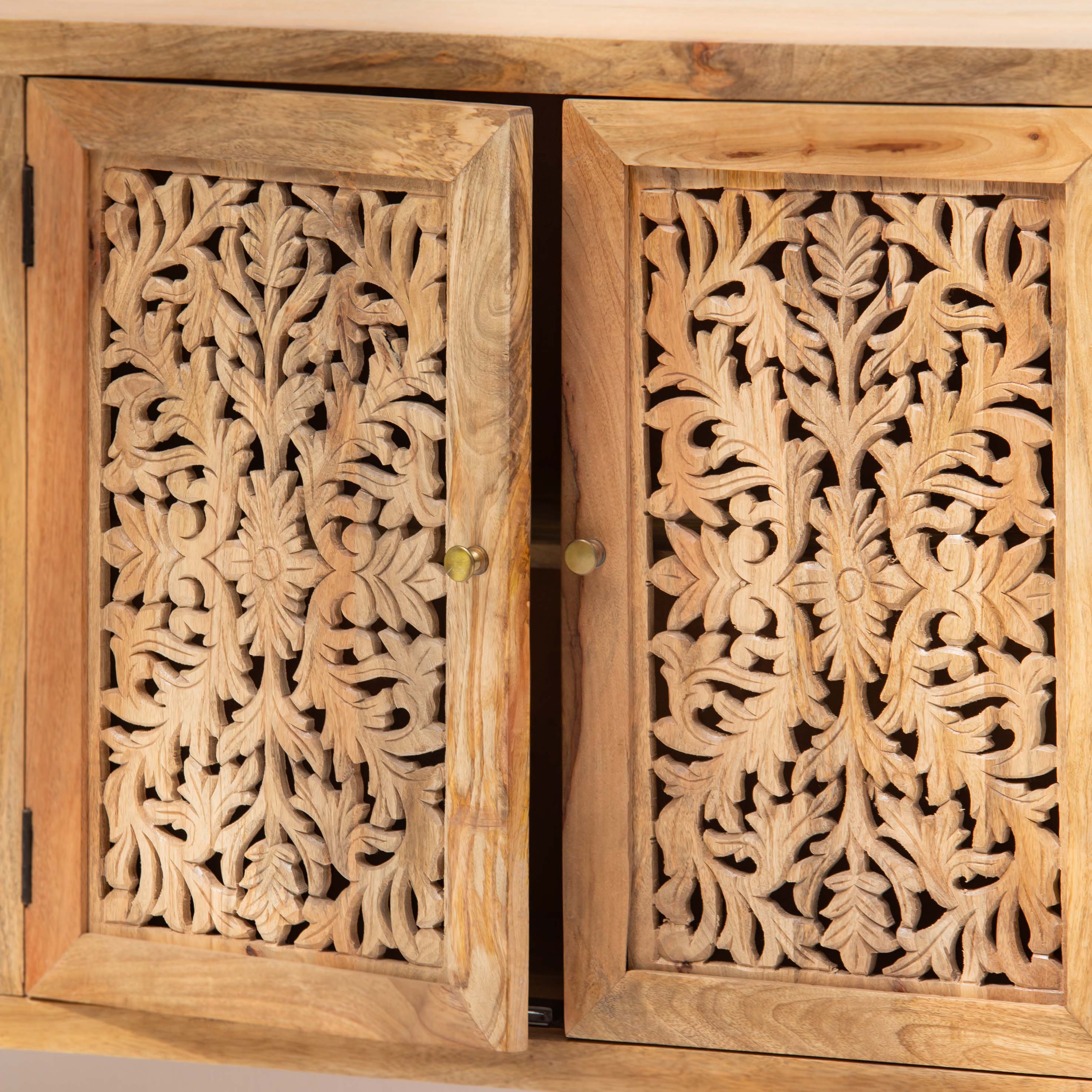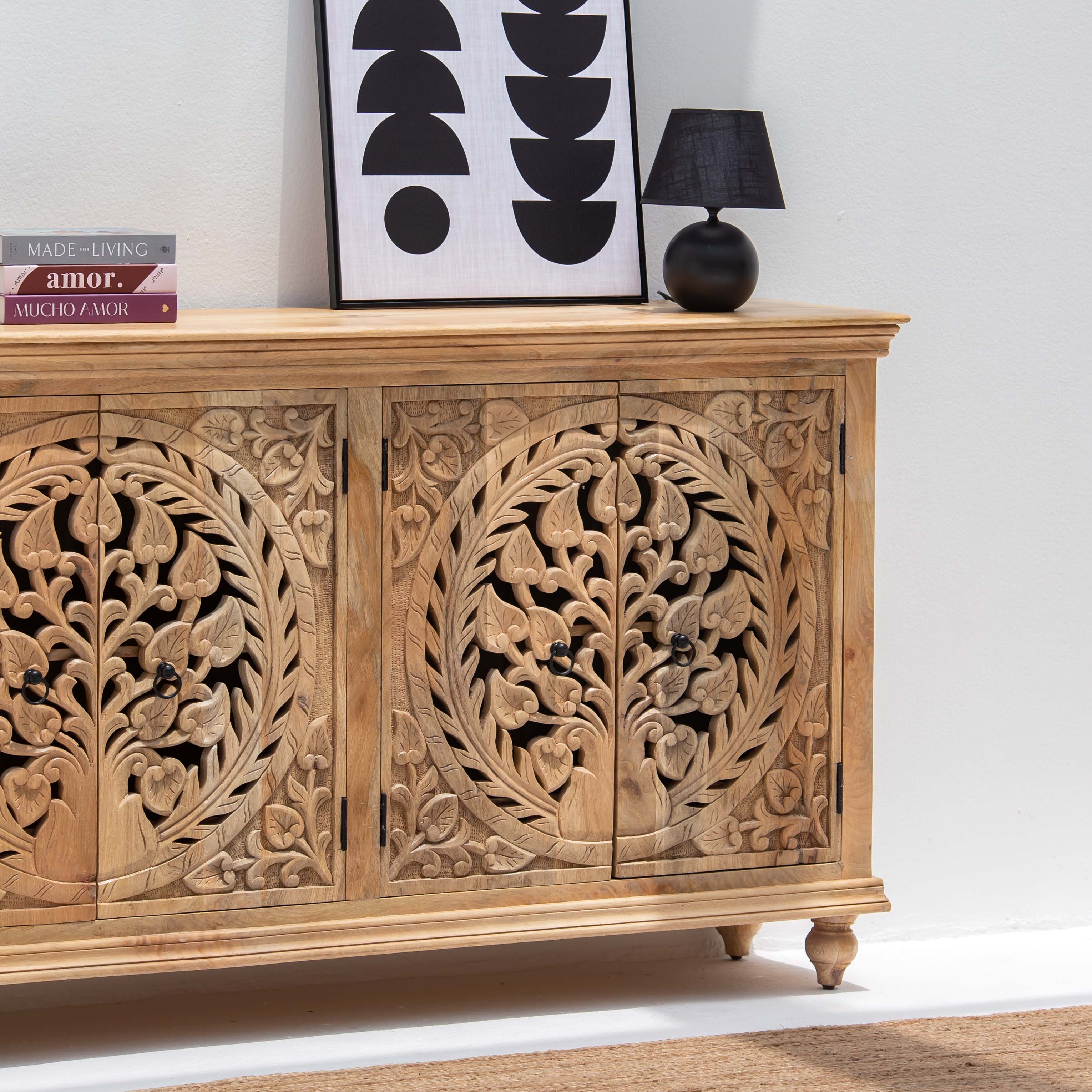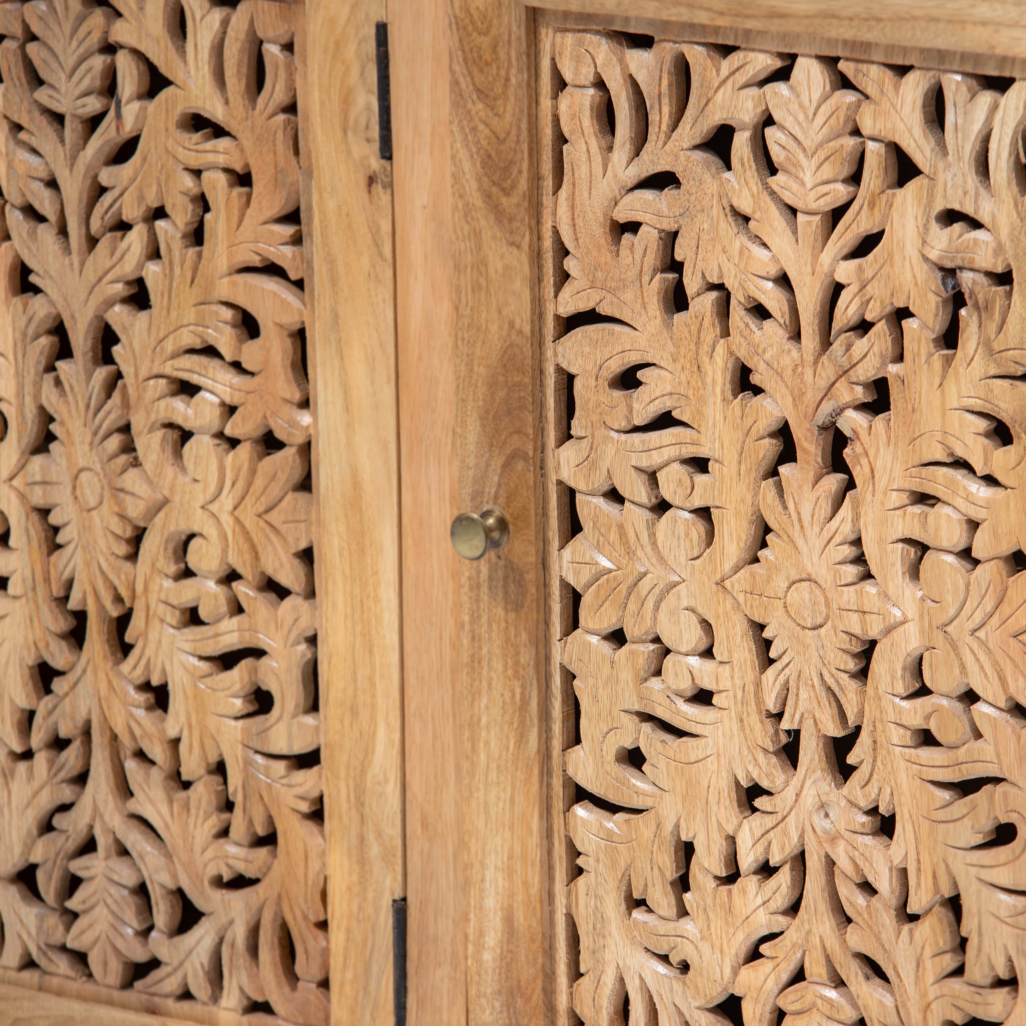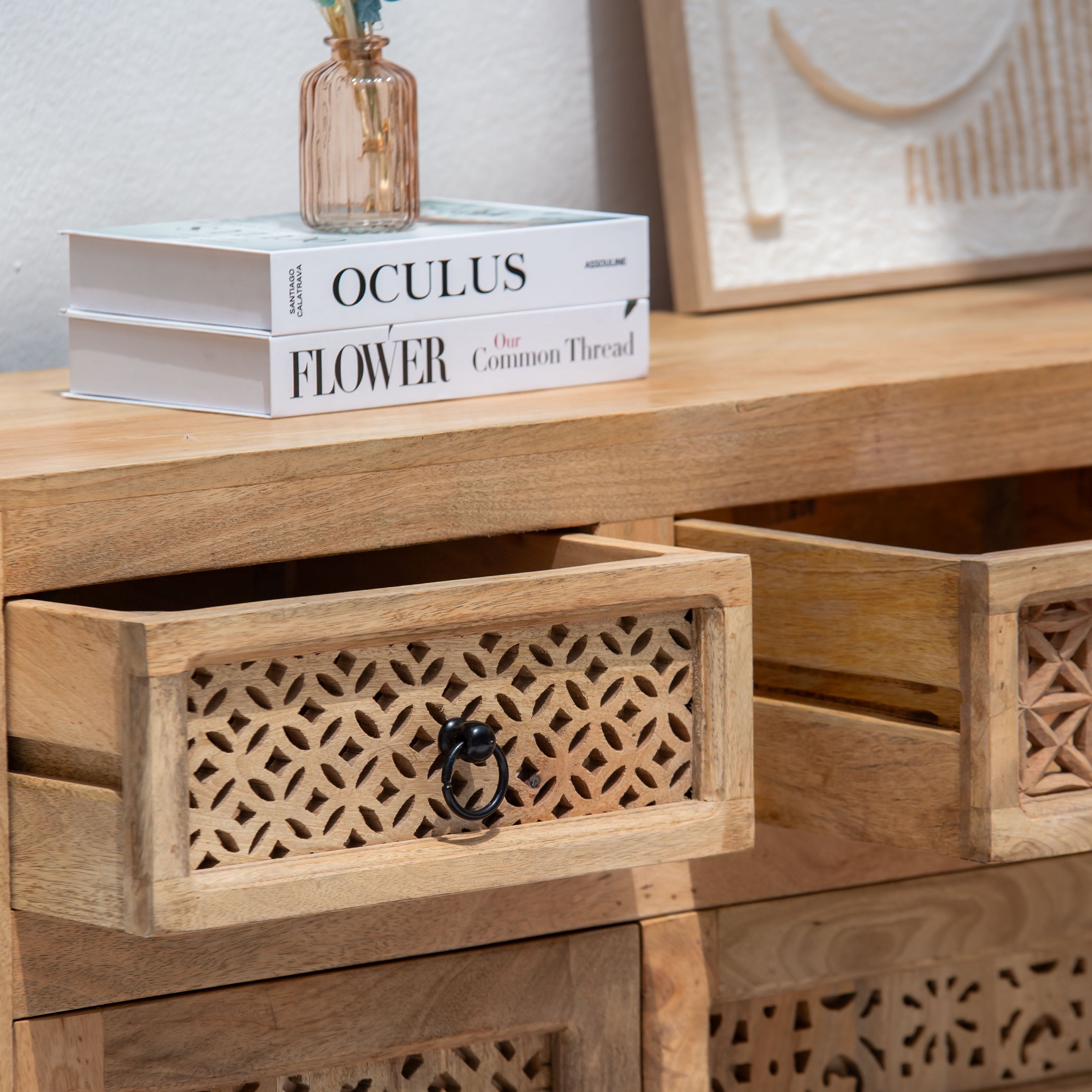 بوفيه وخزانة جانبية خشبية منحوتة يدويًا - خشب المانجو والأكاسيا