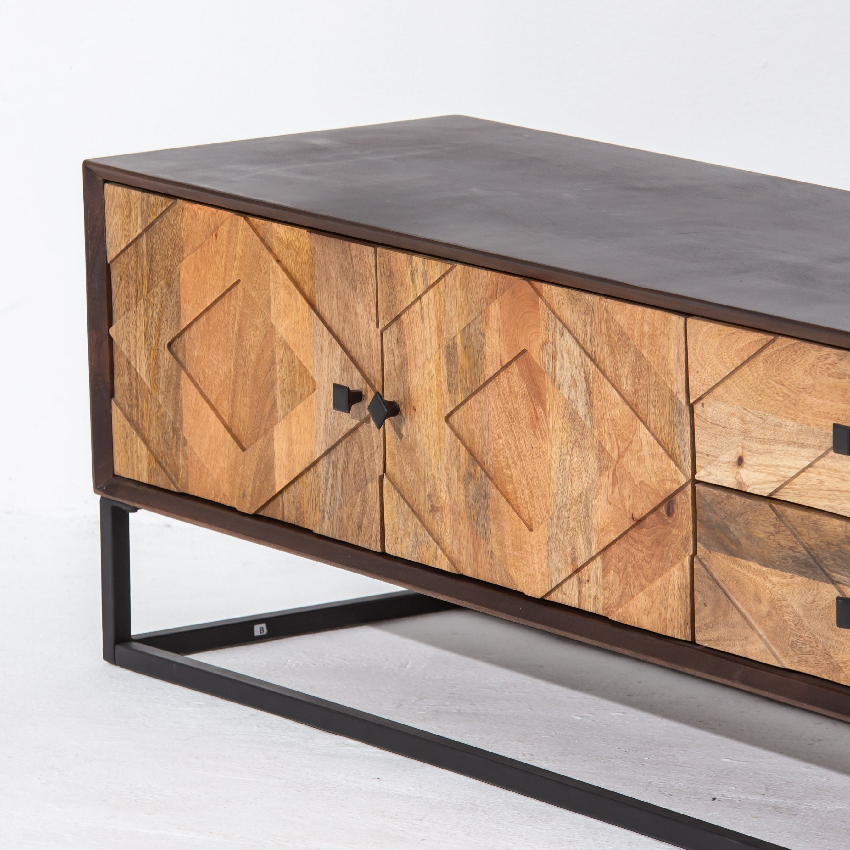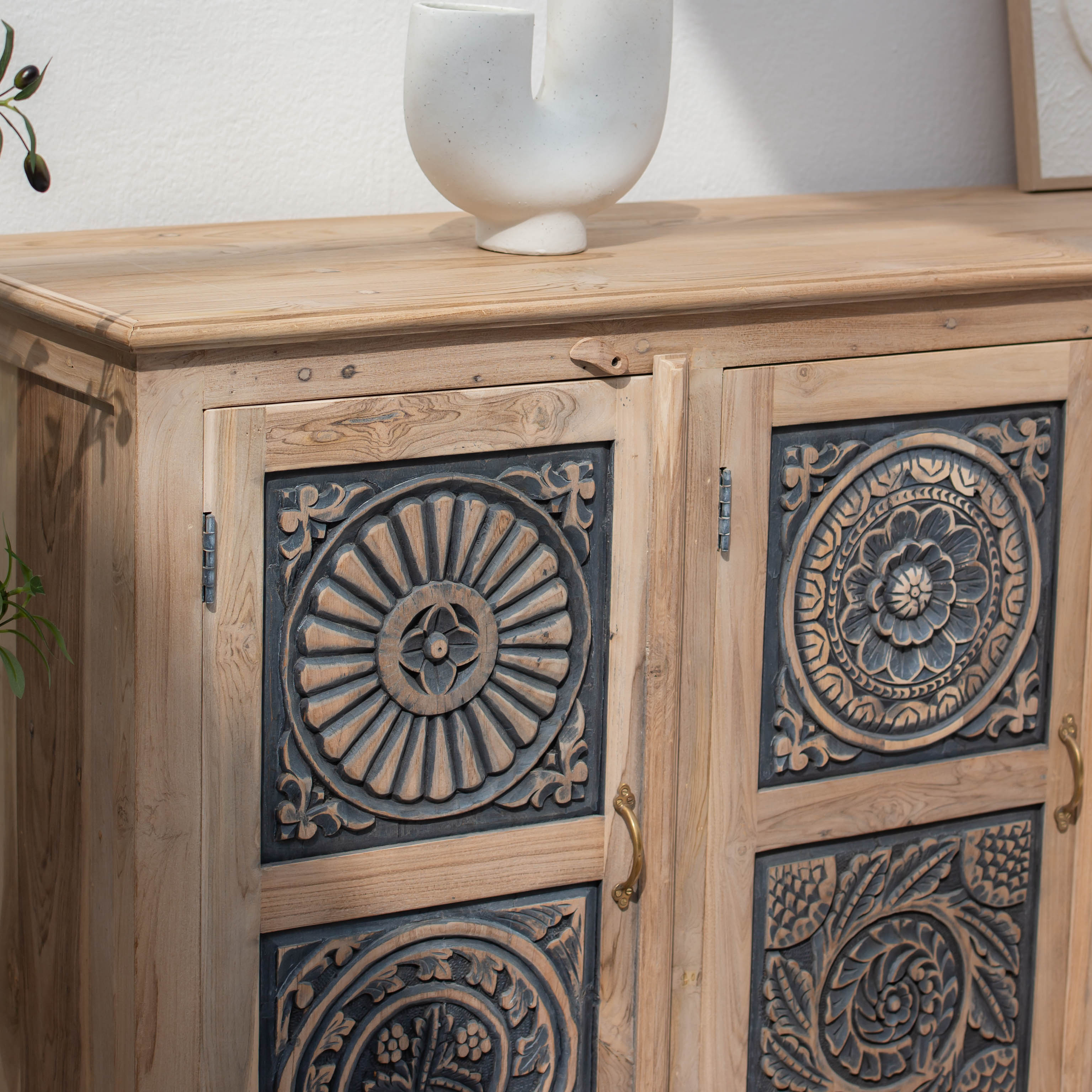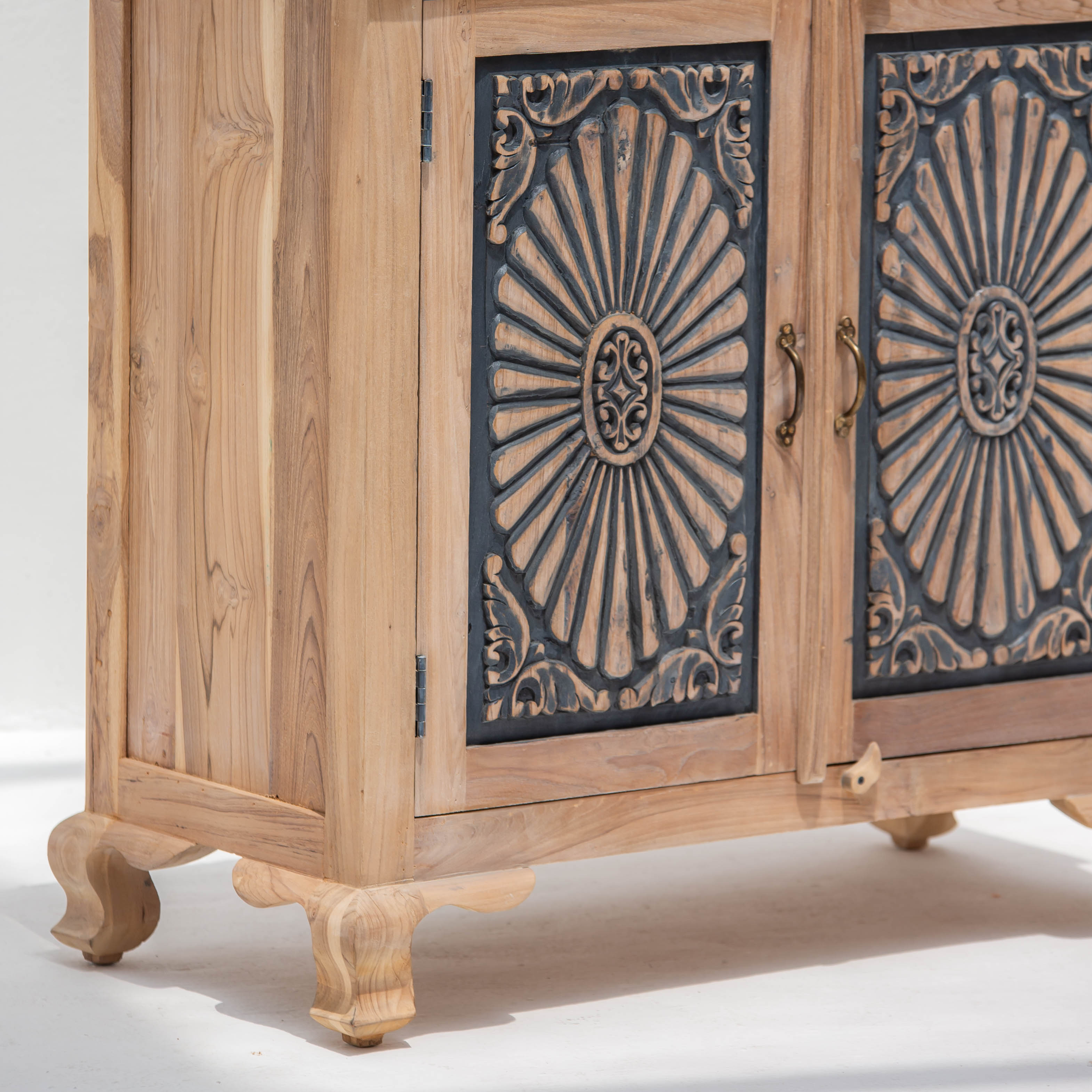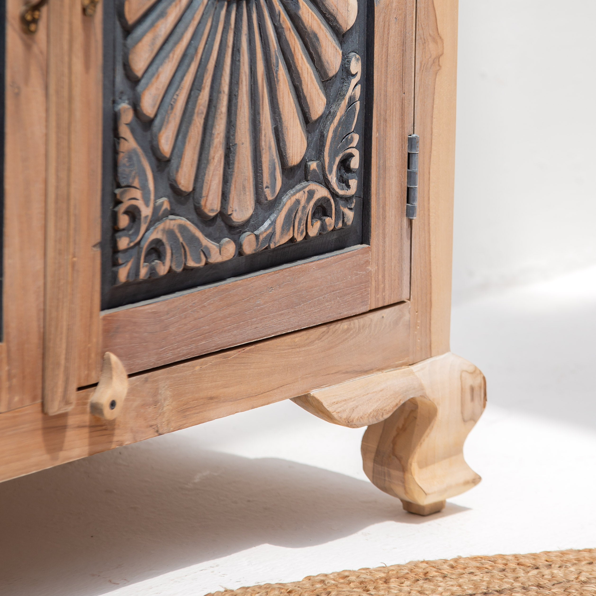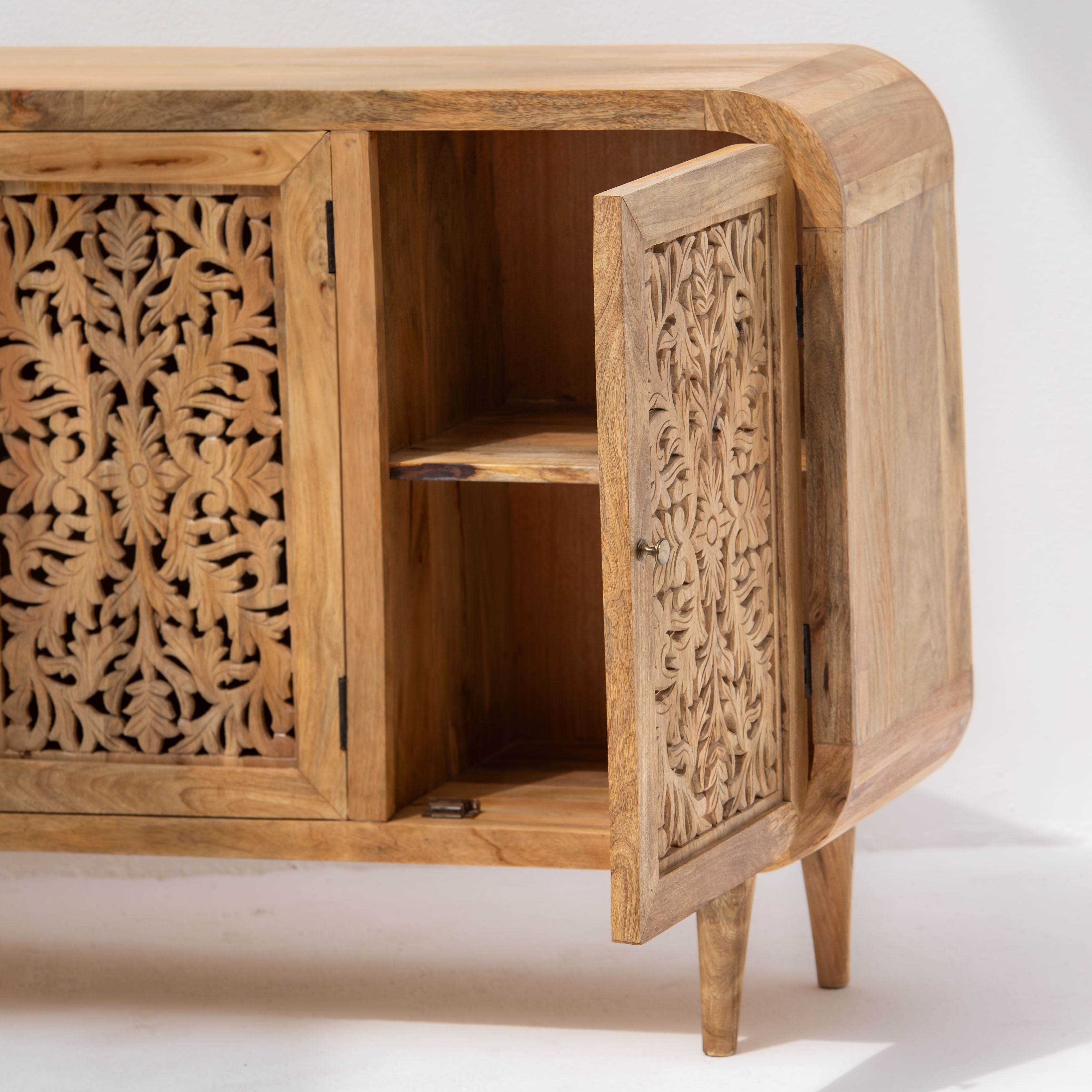 بوفيه وخزانة جانبية خشبية منحوتة يدويًا - خشب المانجو والأكاسيا