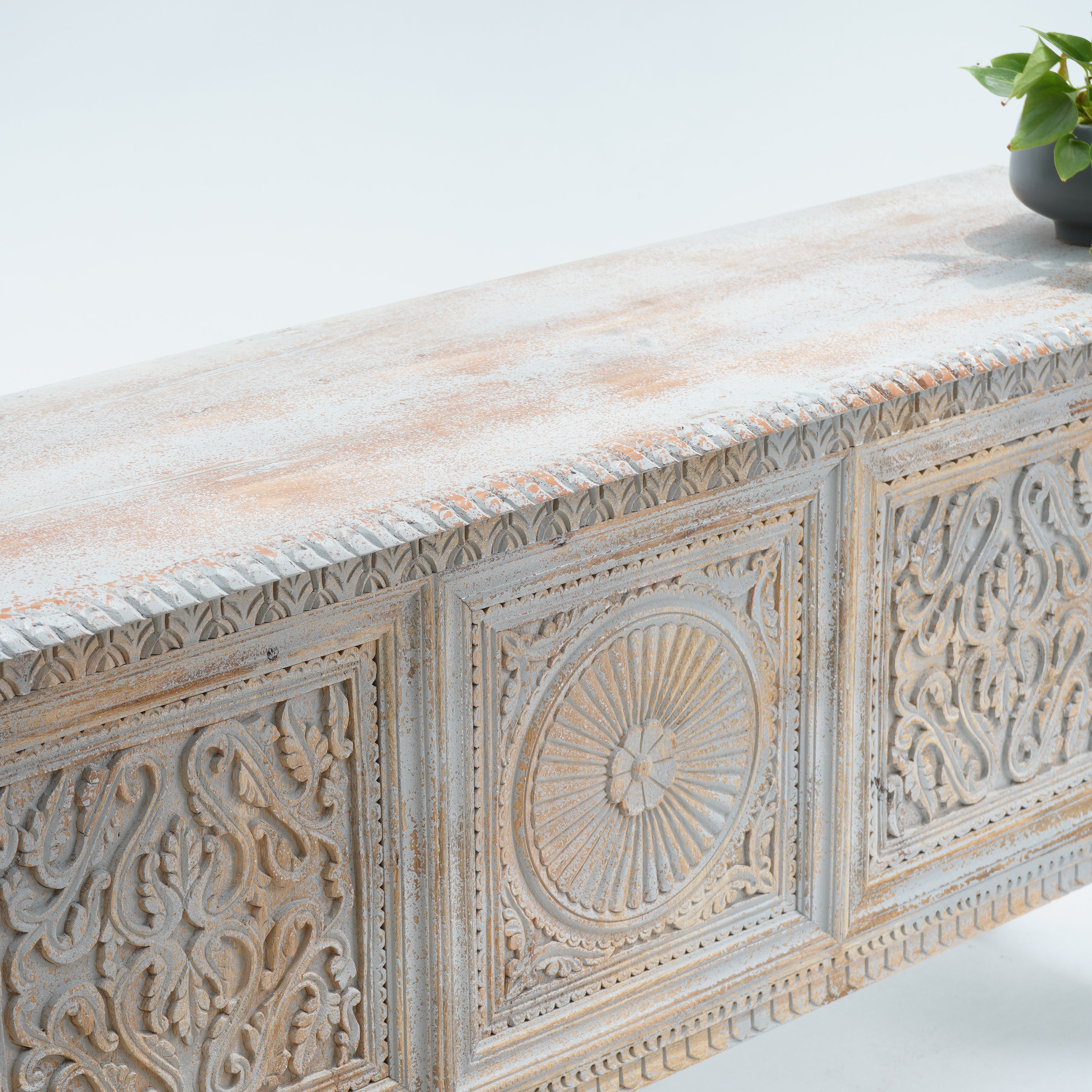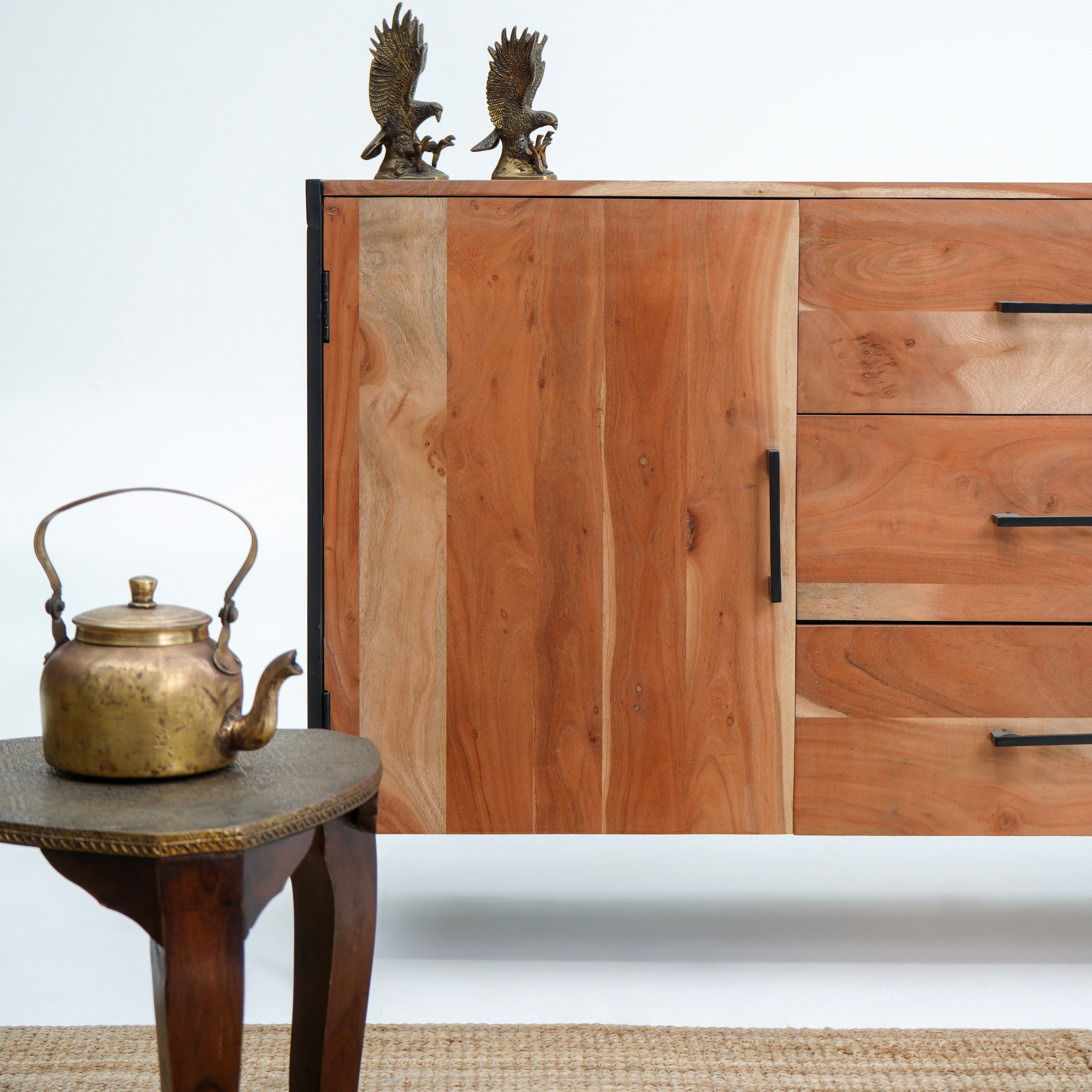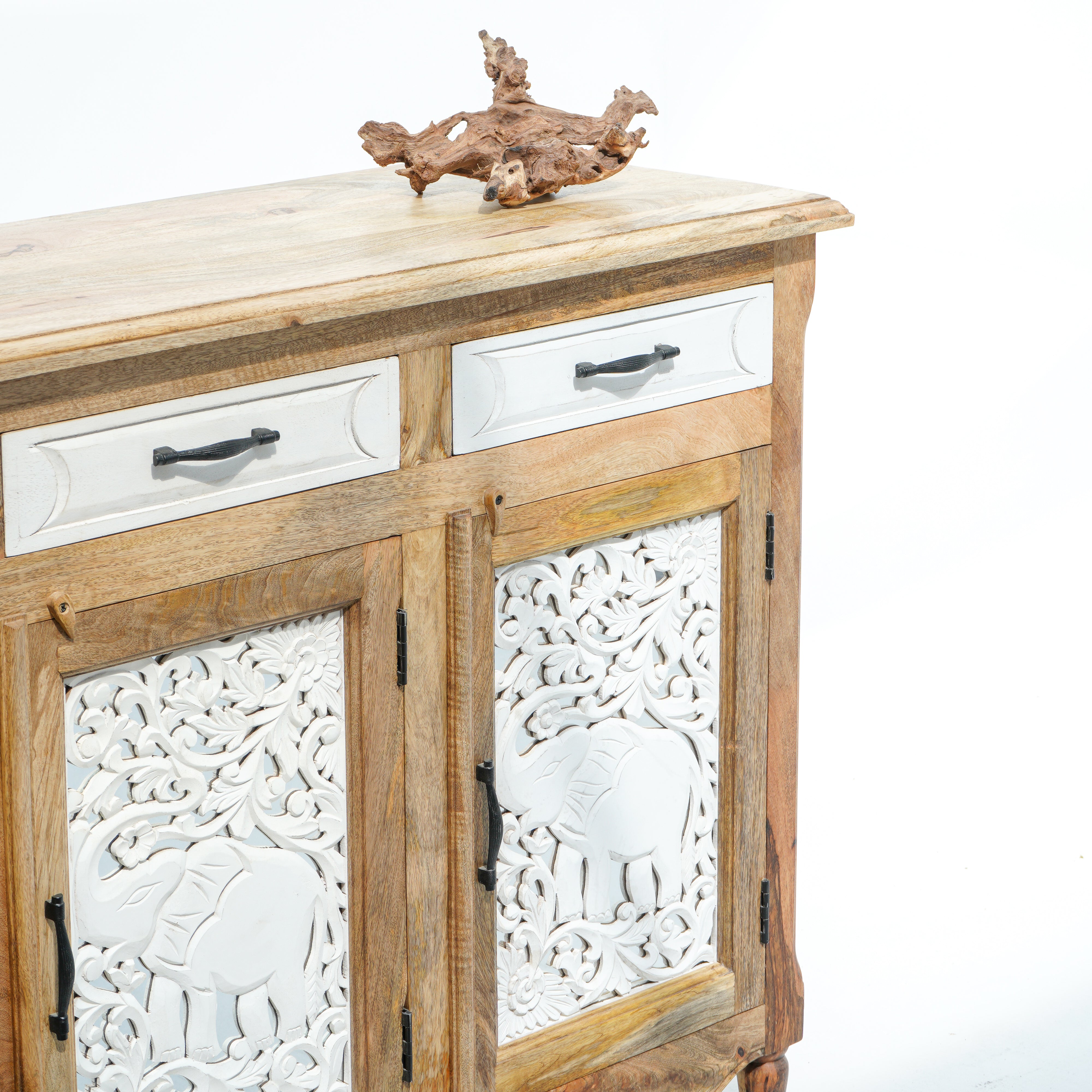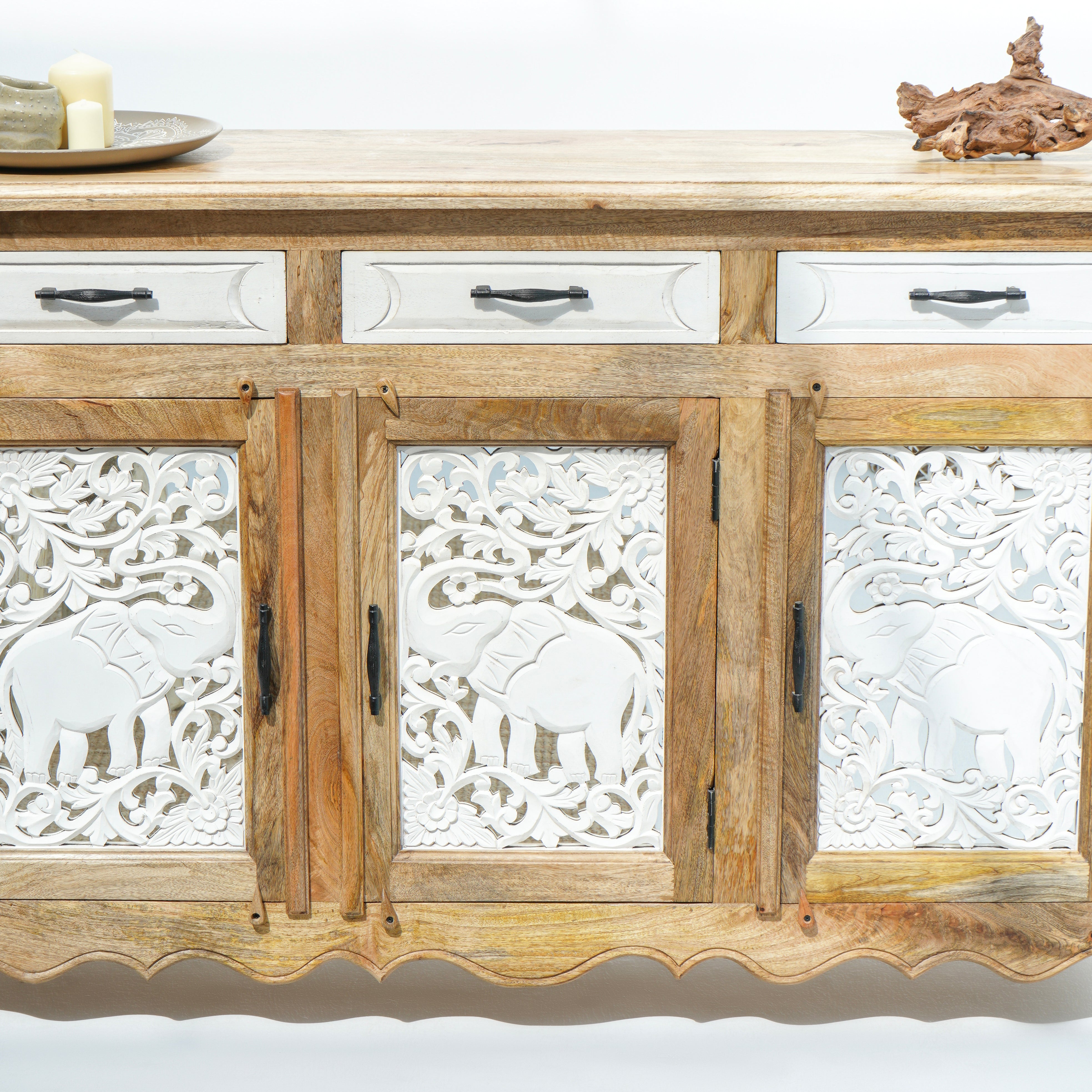 بوفيه وخزانة جانبية خشبية منحوتة يدويًا - خشب المانجو والأكاسيا