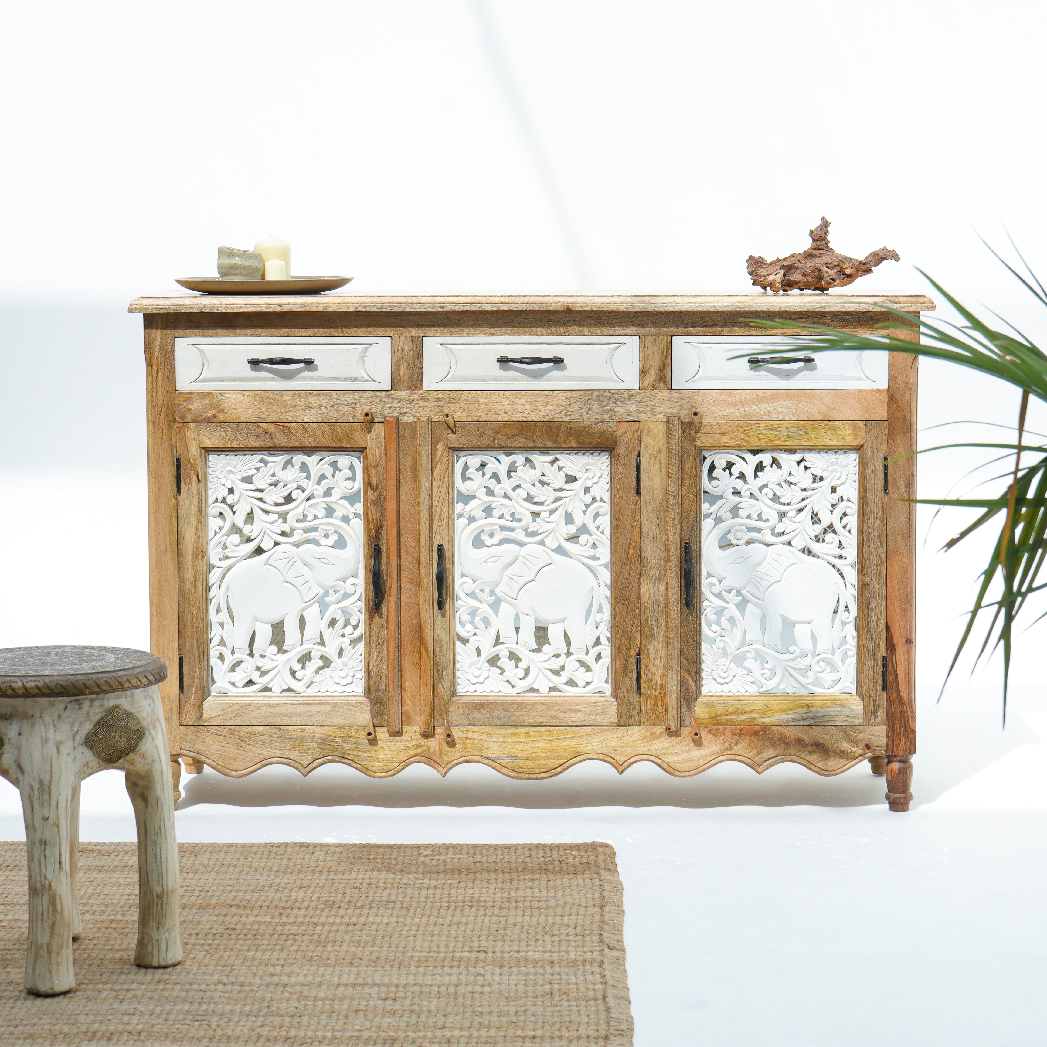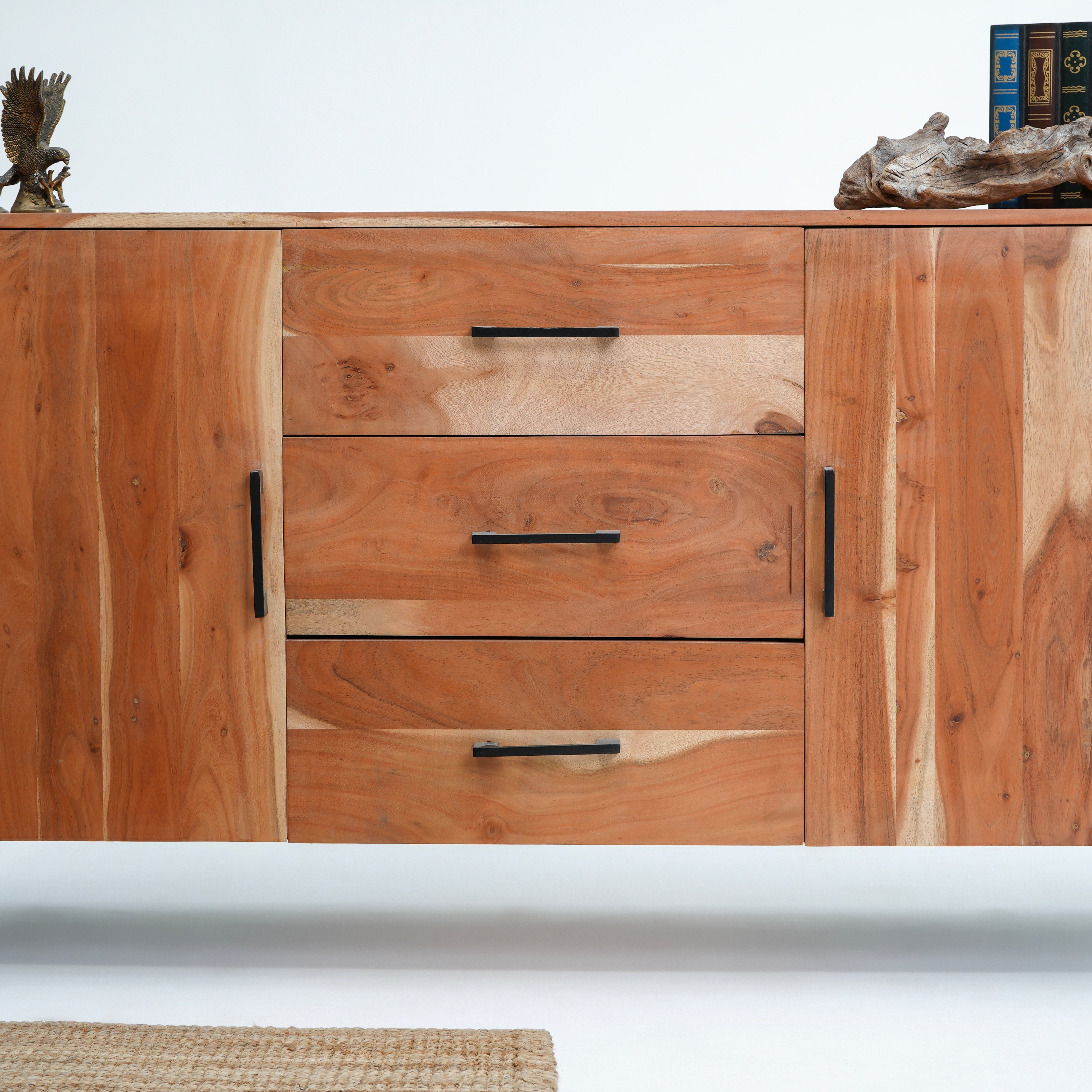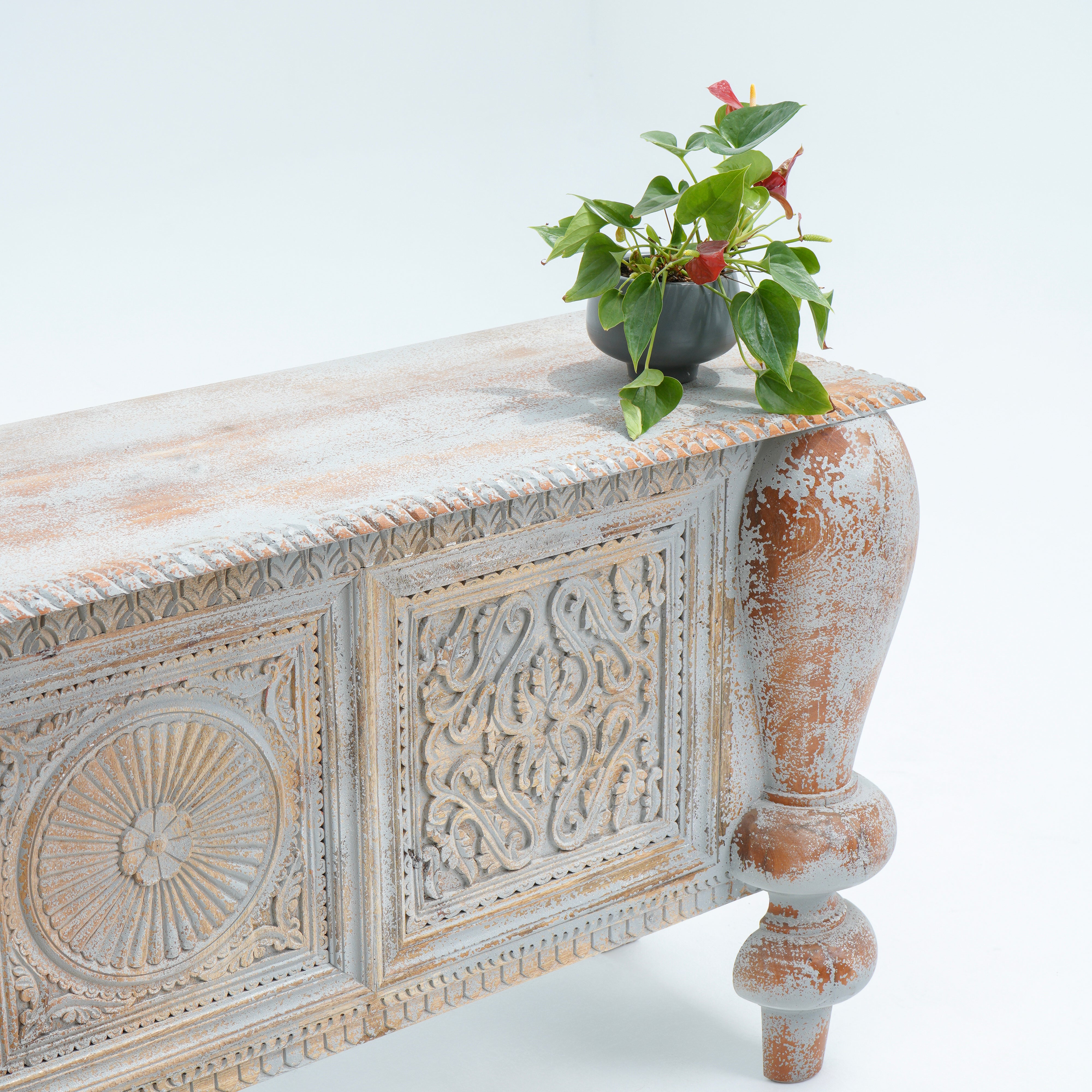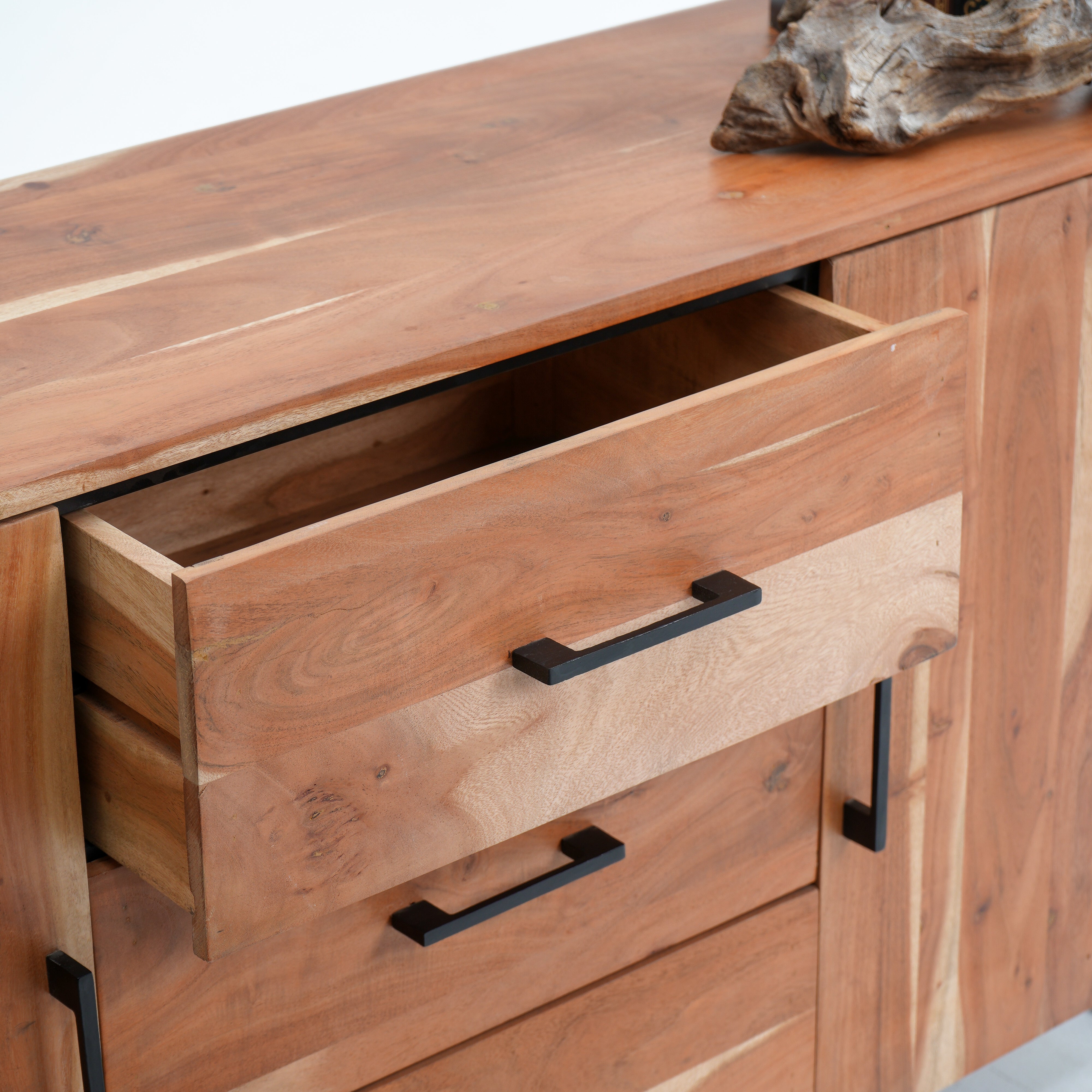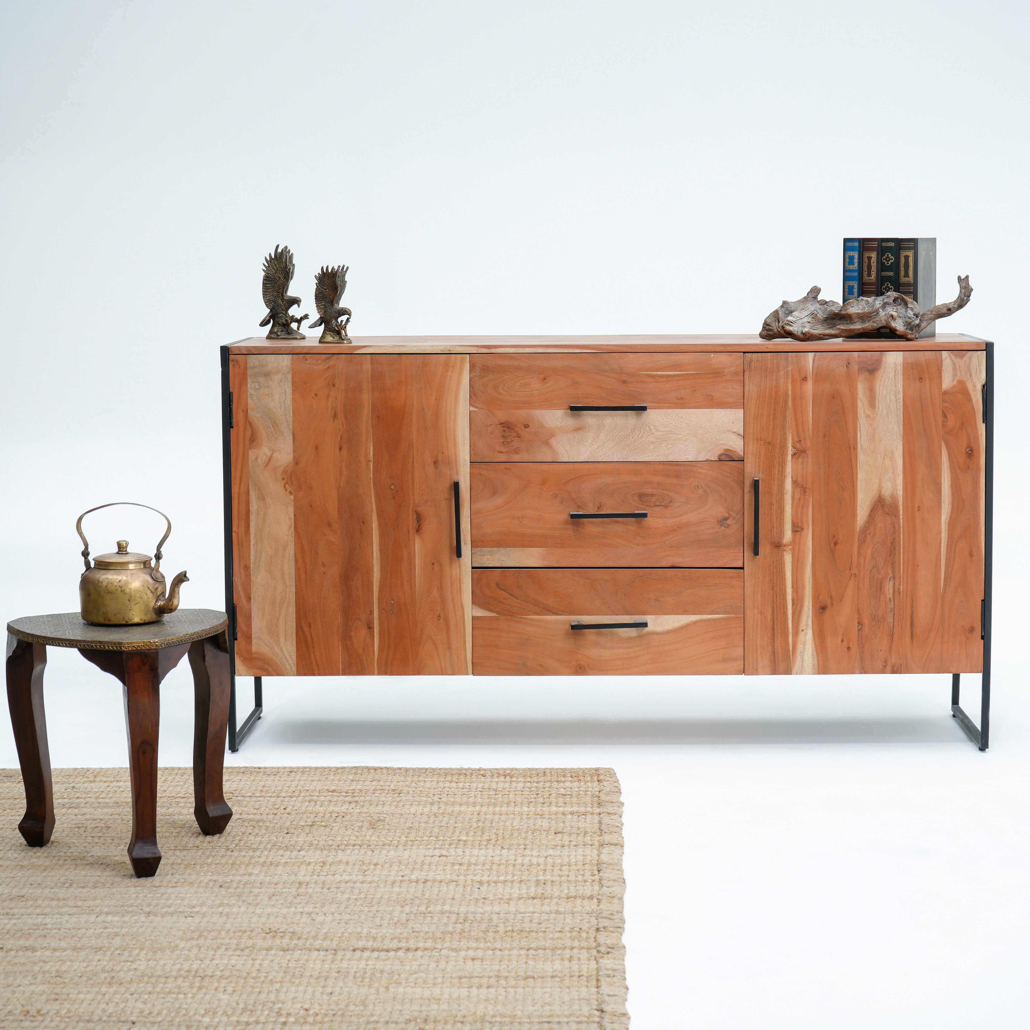 بوفيه وخزانة جانبية خشبية منحوتة يدويًا - خشب المانجو والأكاسيا