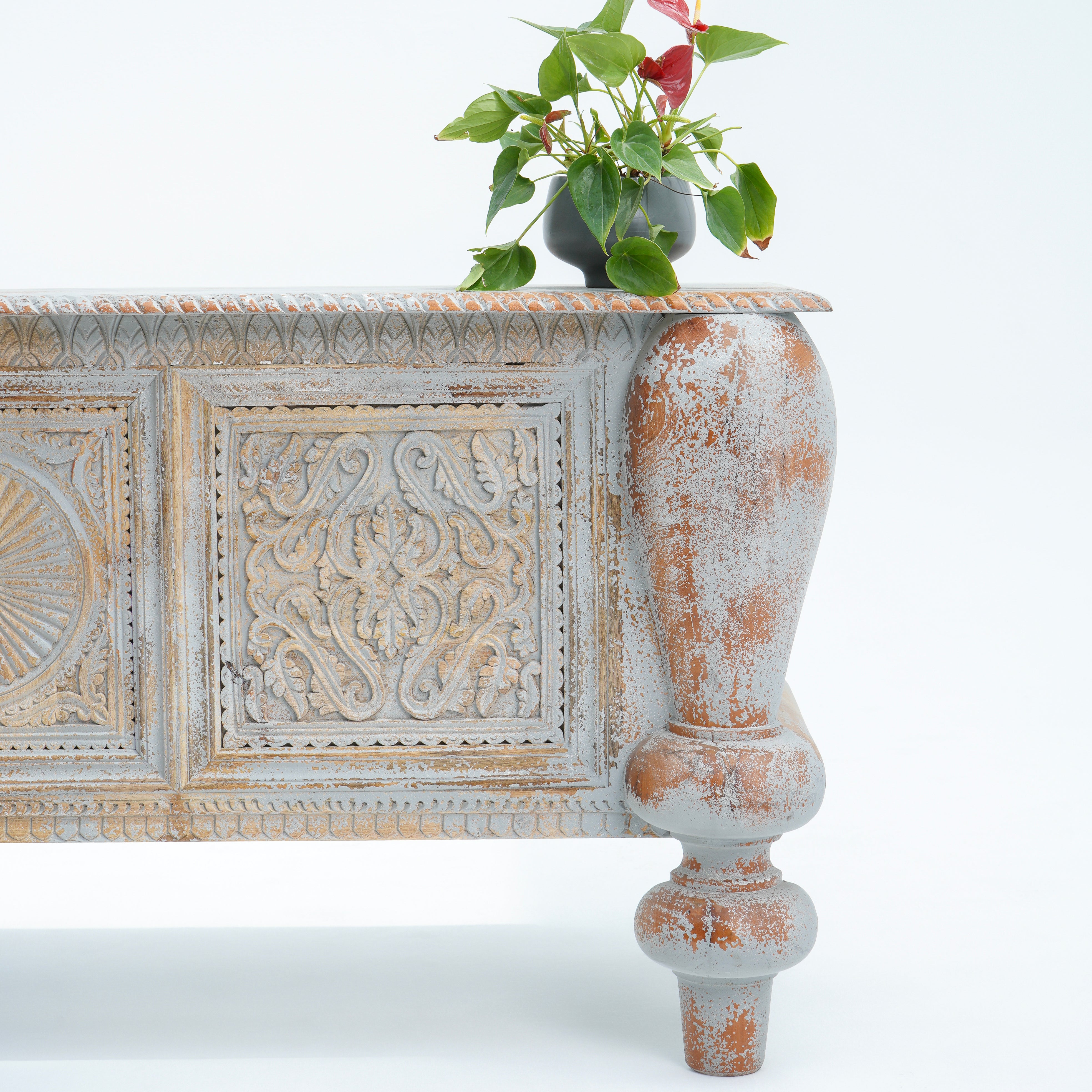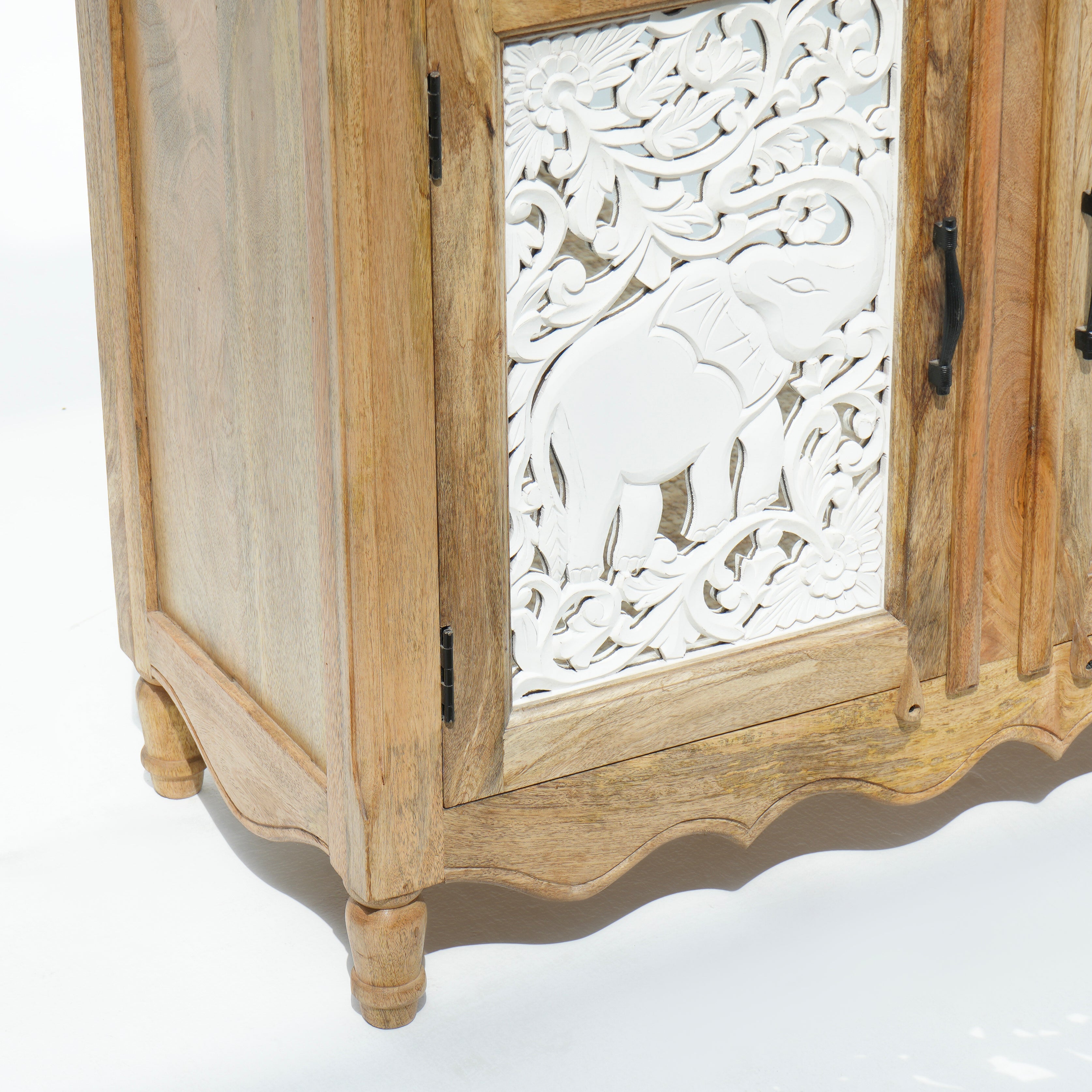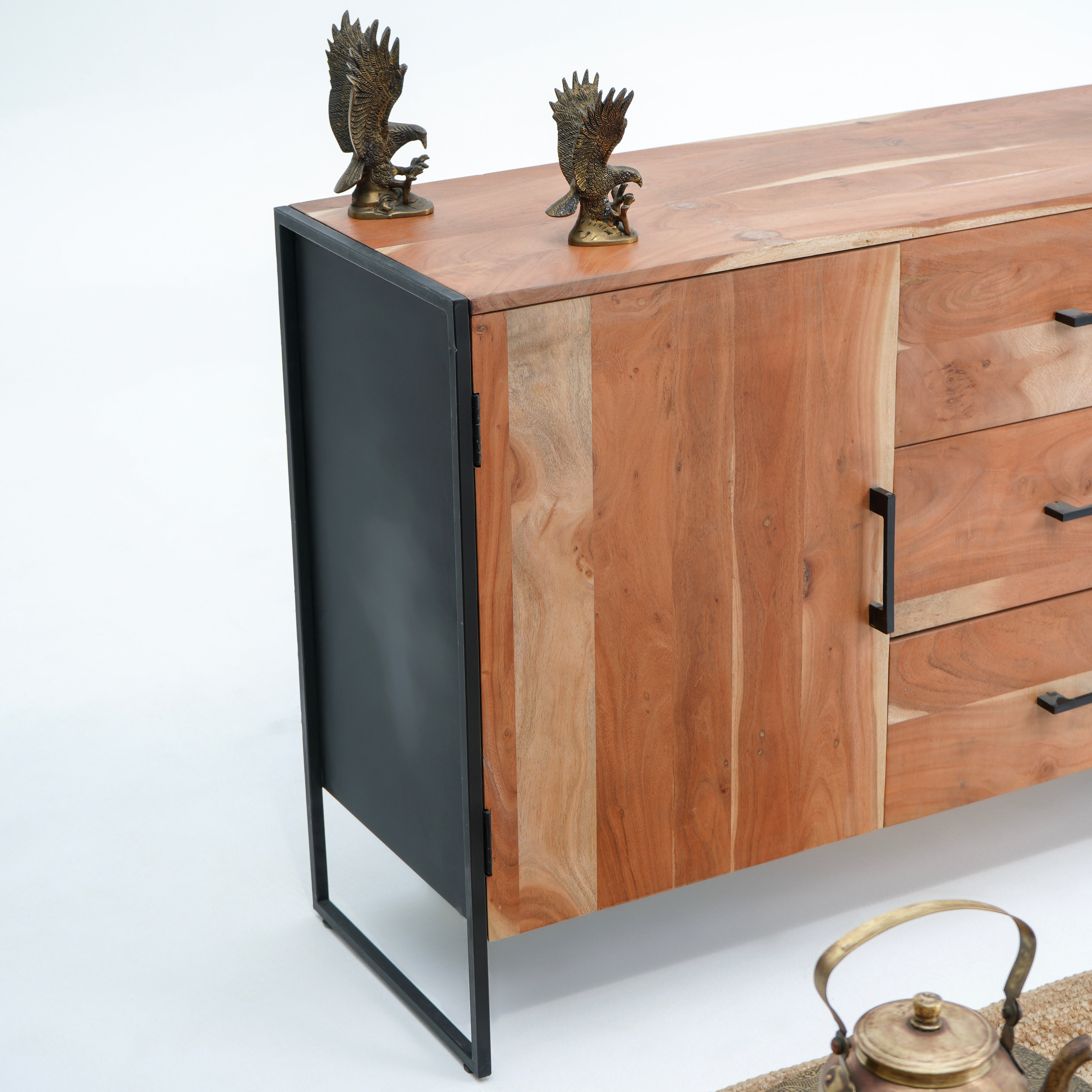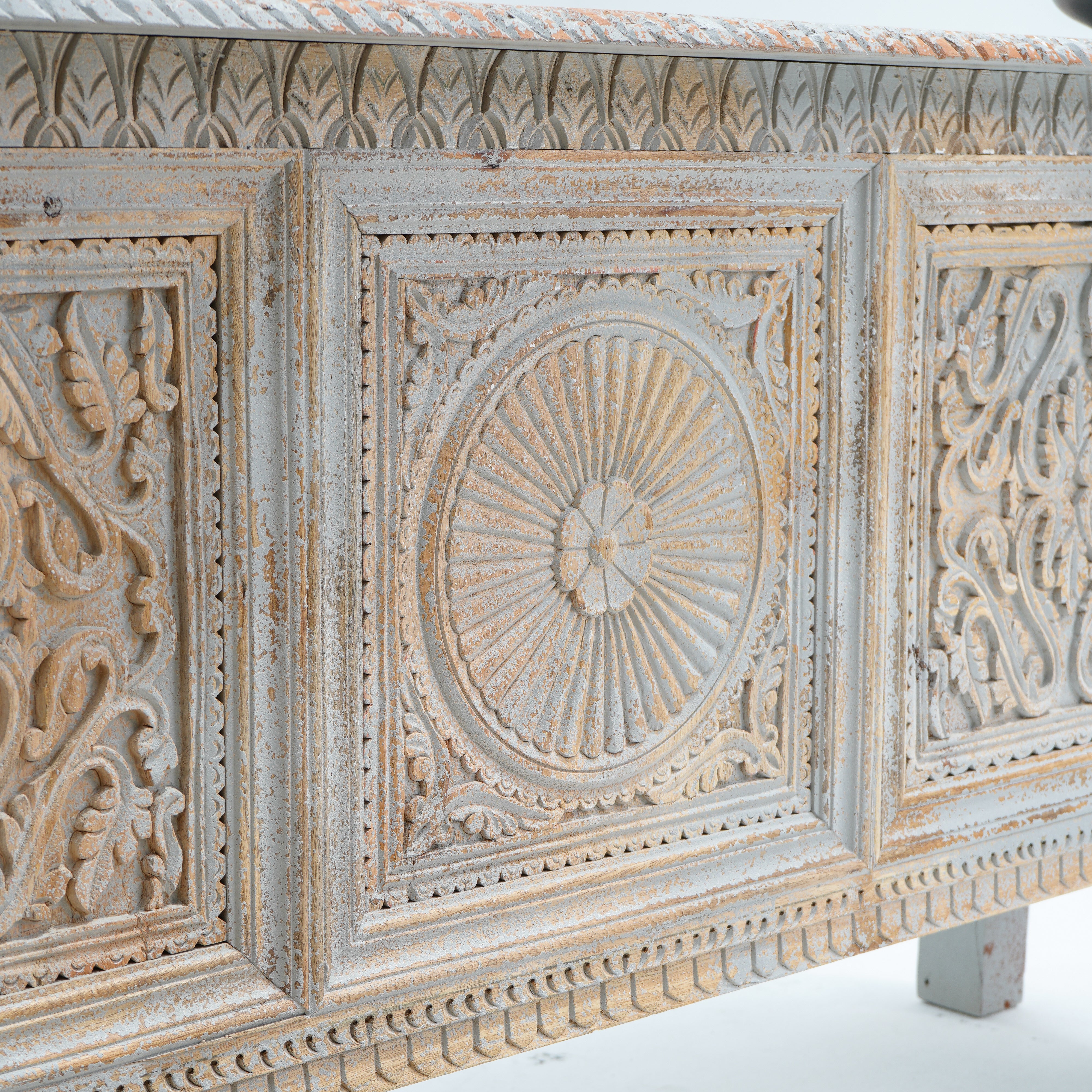 بوفيه وخزانة جانبية خشبية منحوتة يدويًا - خشب المانجو والأكاسيا