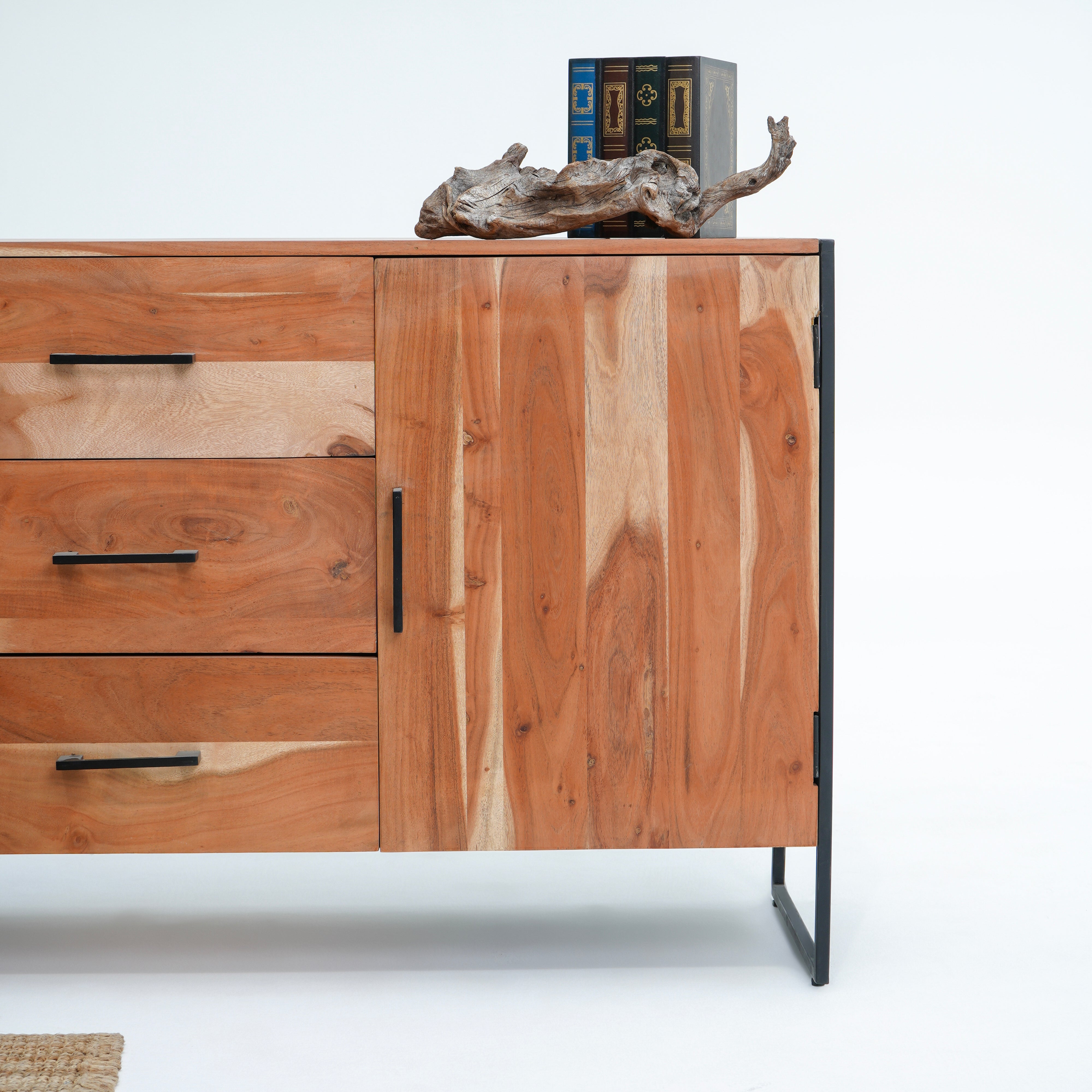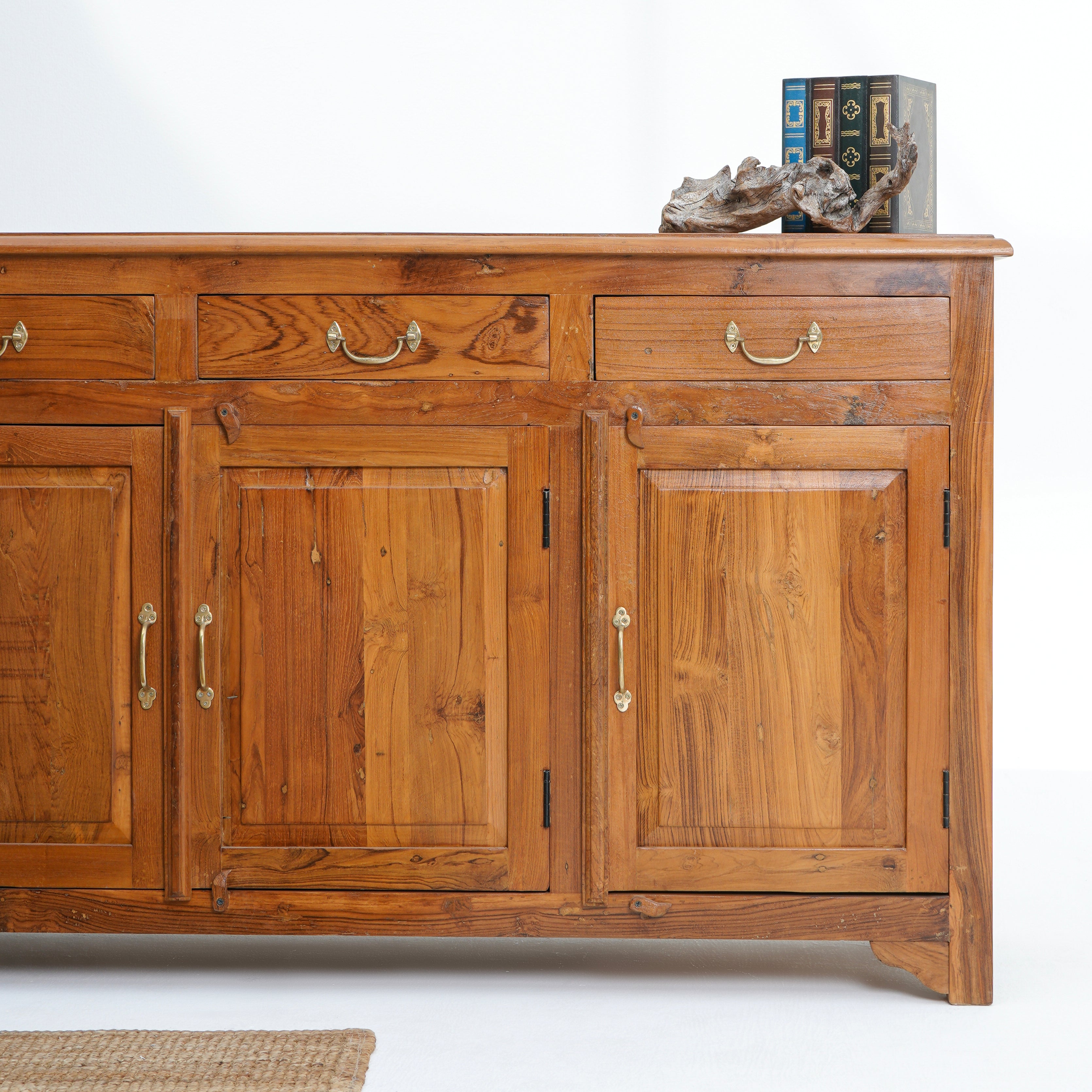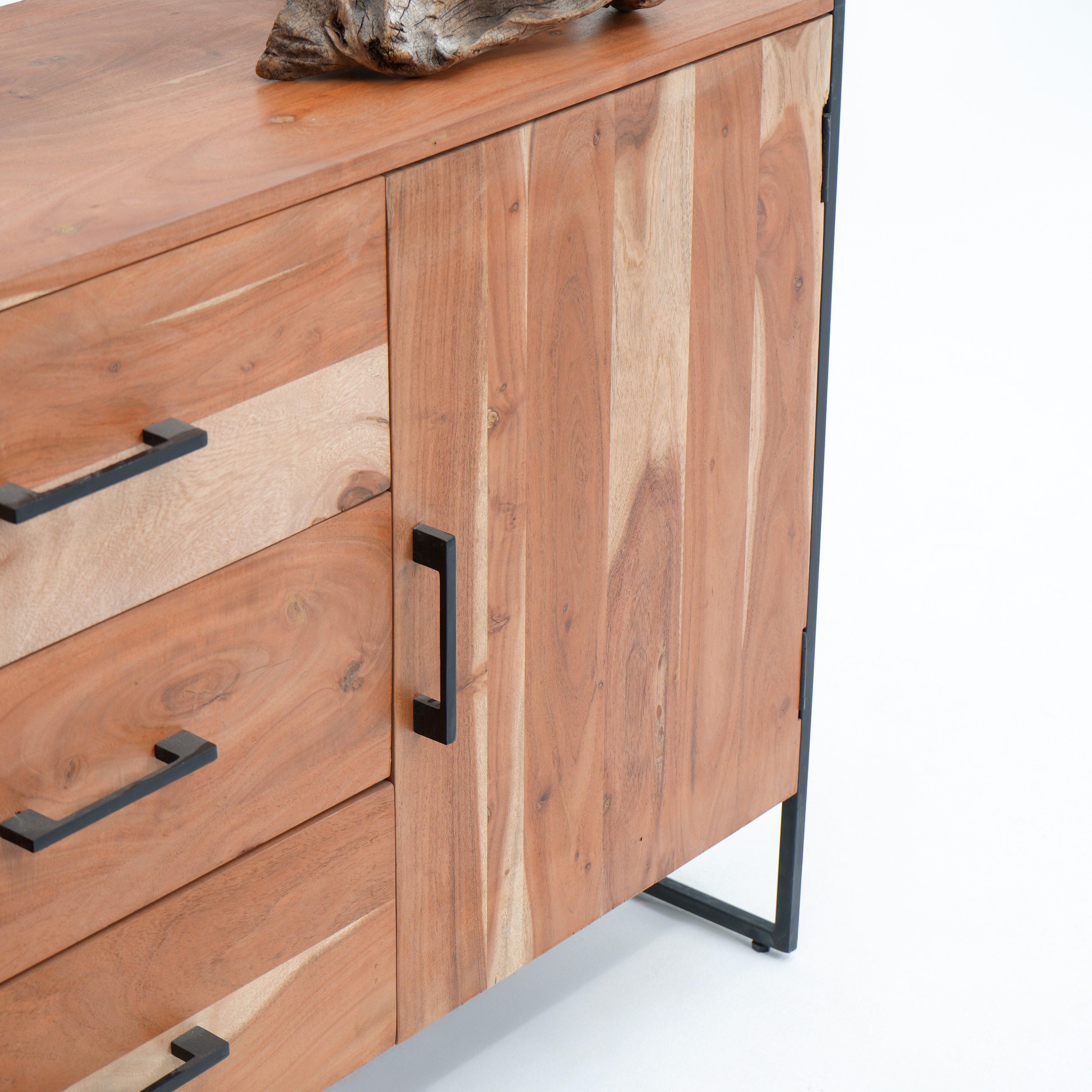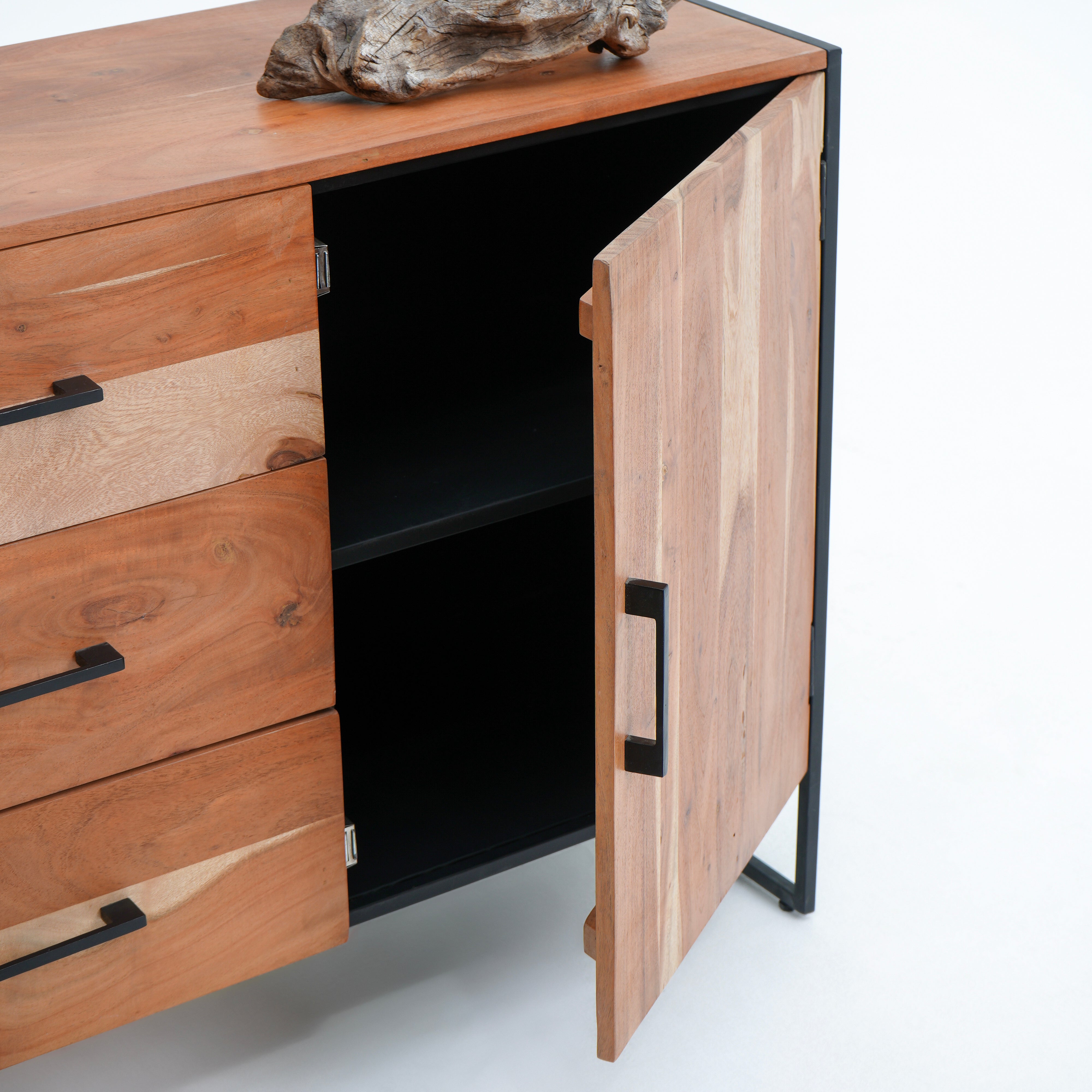 بوفيه وخزانة جانبية خشبية منحوتة يدويًا - خشب المانجو والأكاسيا