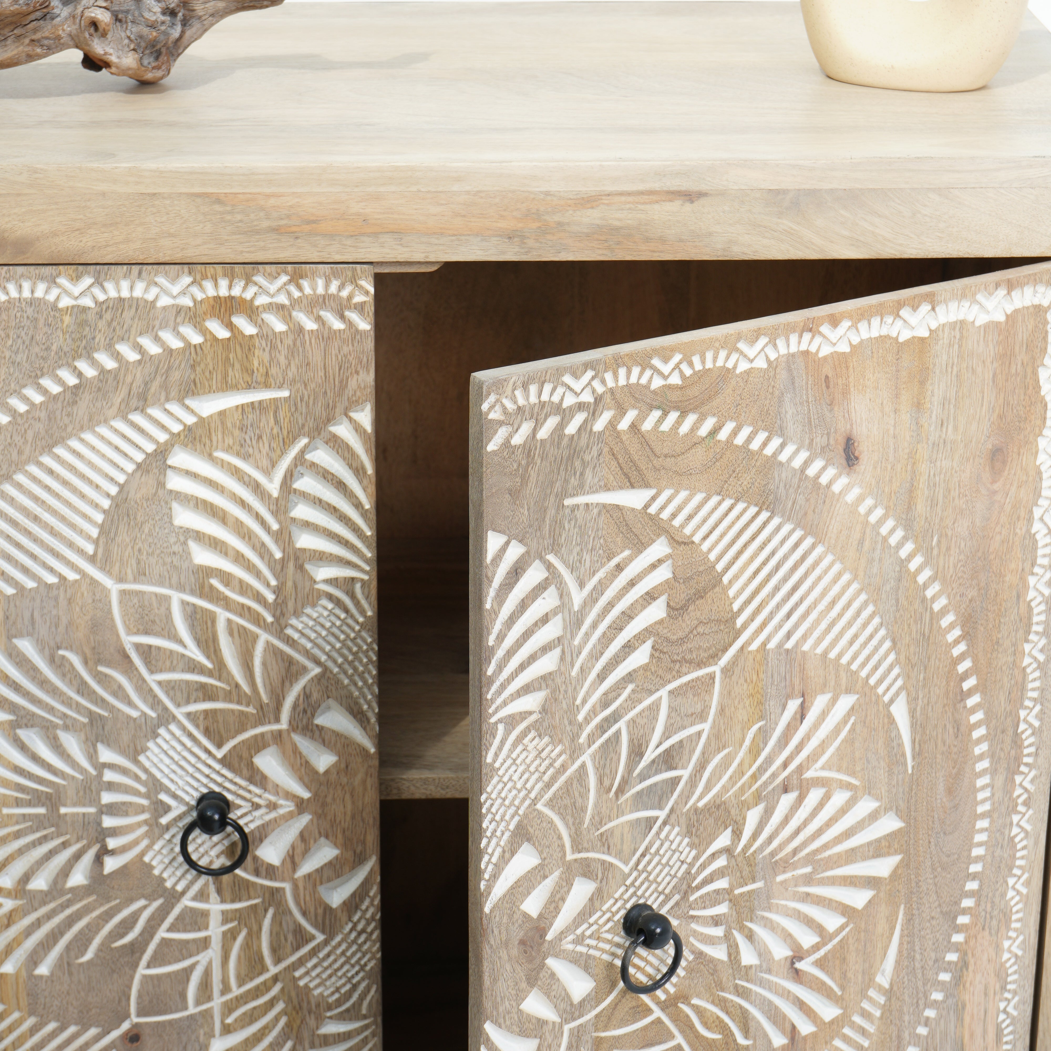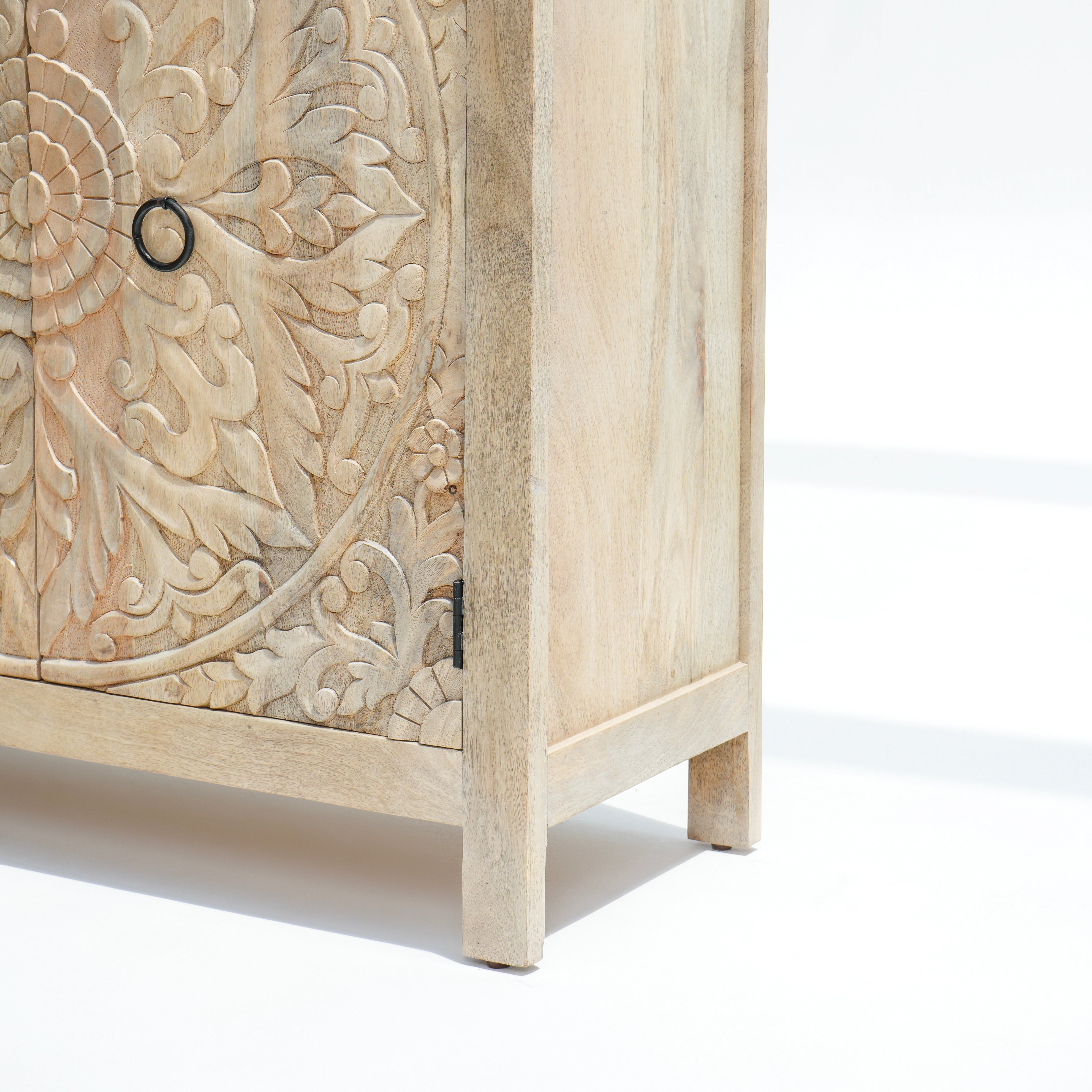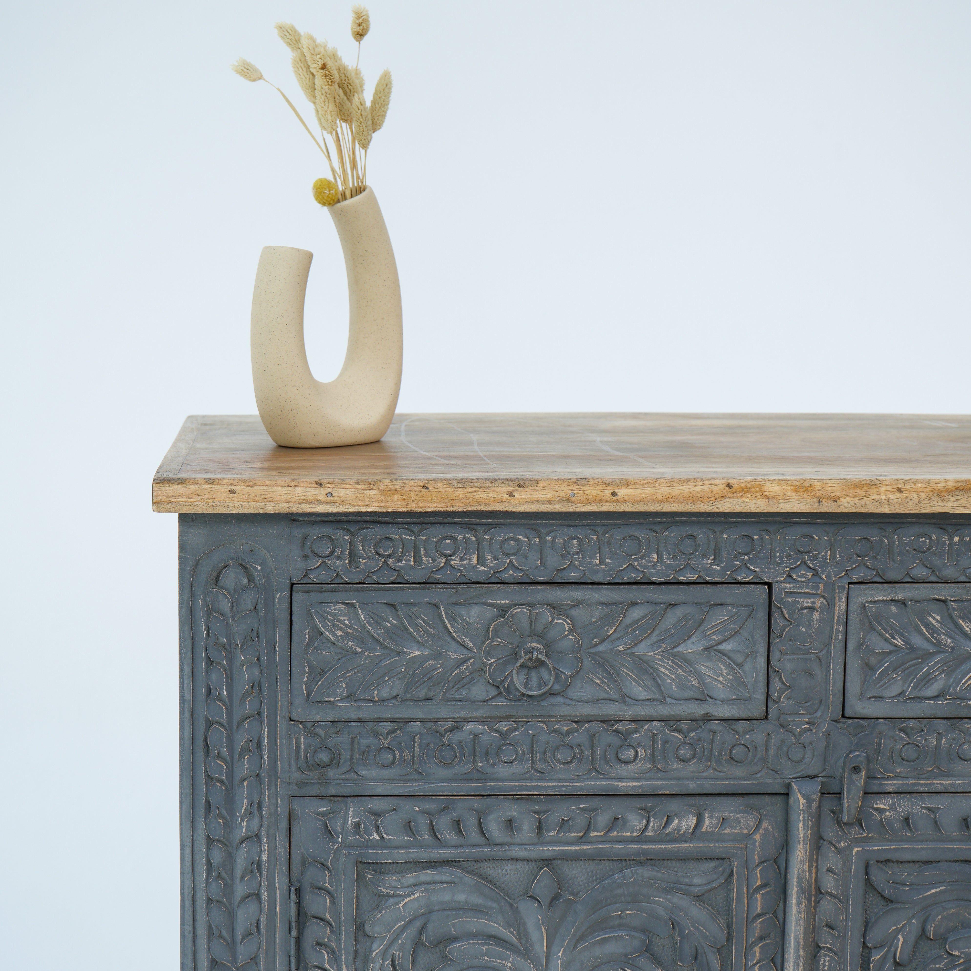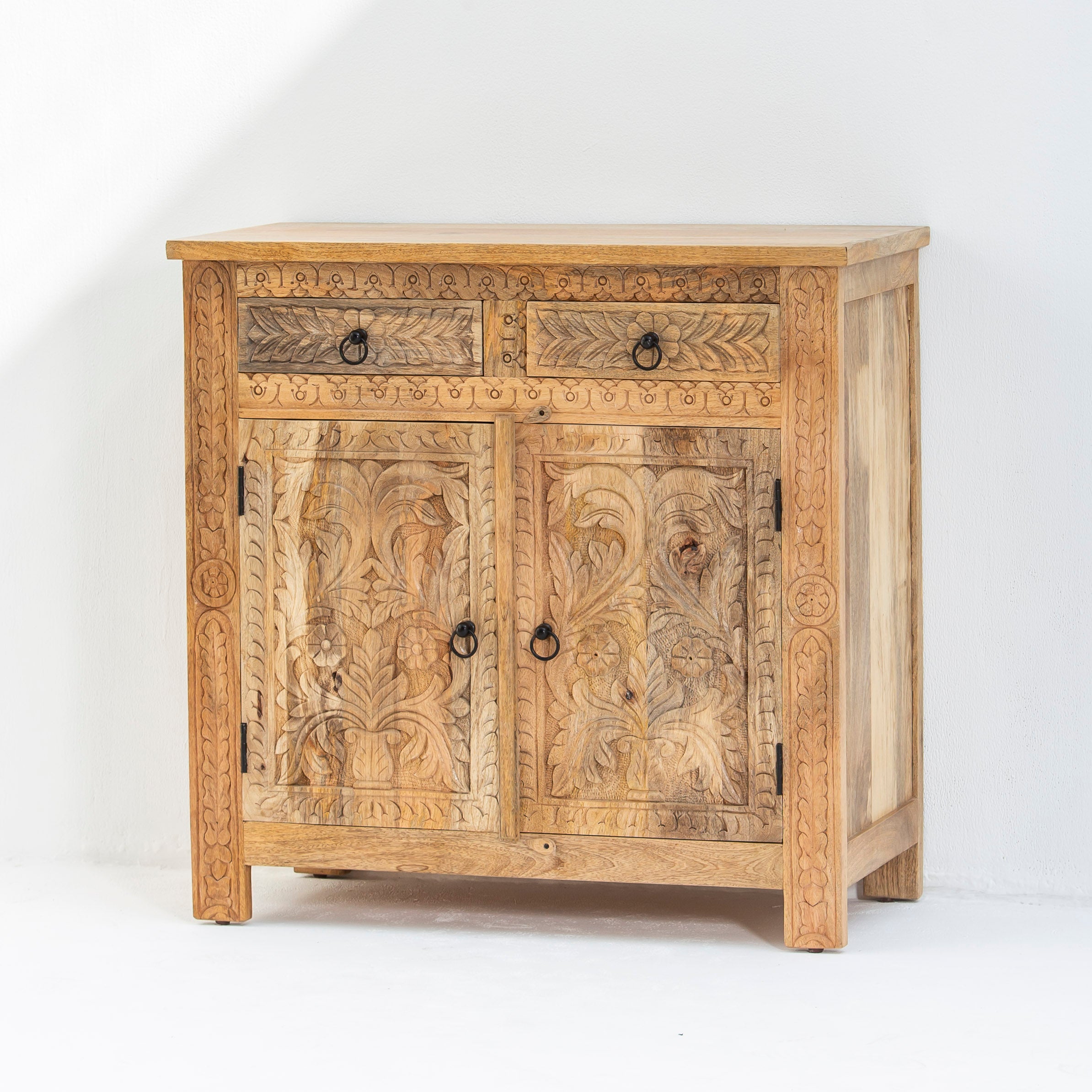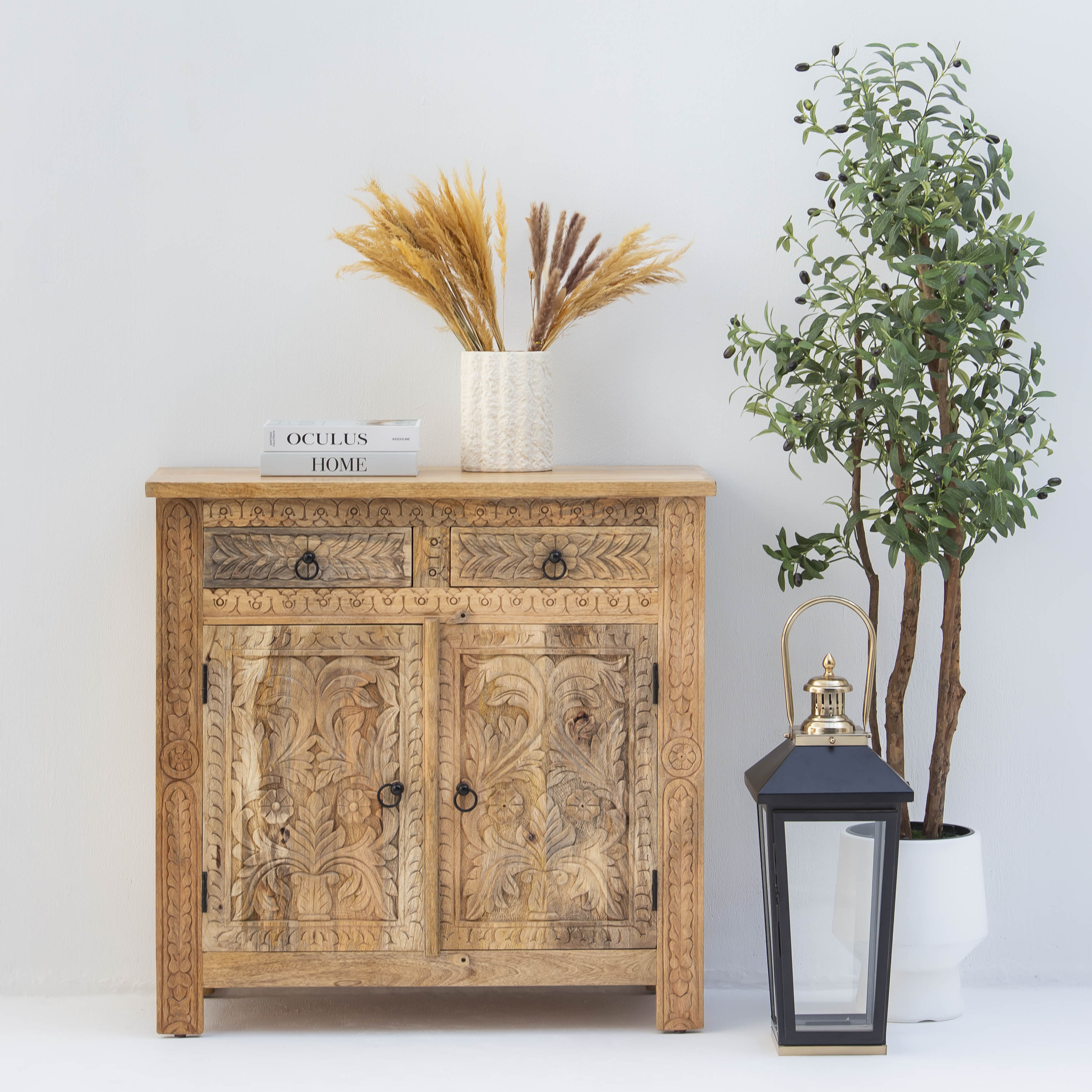 أضف لمسة من السحر الخالد والأناقة العصرية إلى مساحة معيشتك مع خزانة البوفيه المنحوتة يدويًا ، المصنوعة بحرفية عالية من خشب المانجو المستدام وخشب الأكاسيا المتين . تمزج هذه القطعة بسلاسة بين التصميم البسيط والحرفية العريقة ، لتجمع بين العملية والجمال في منزلك.