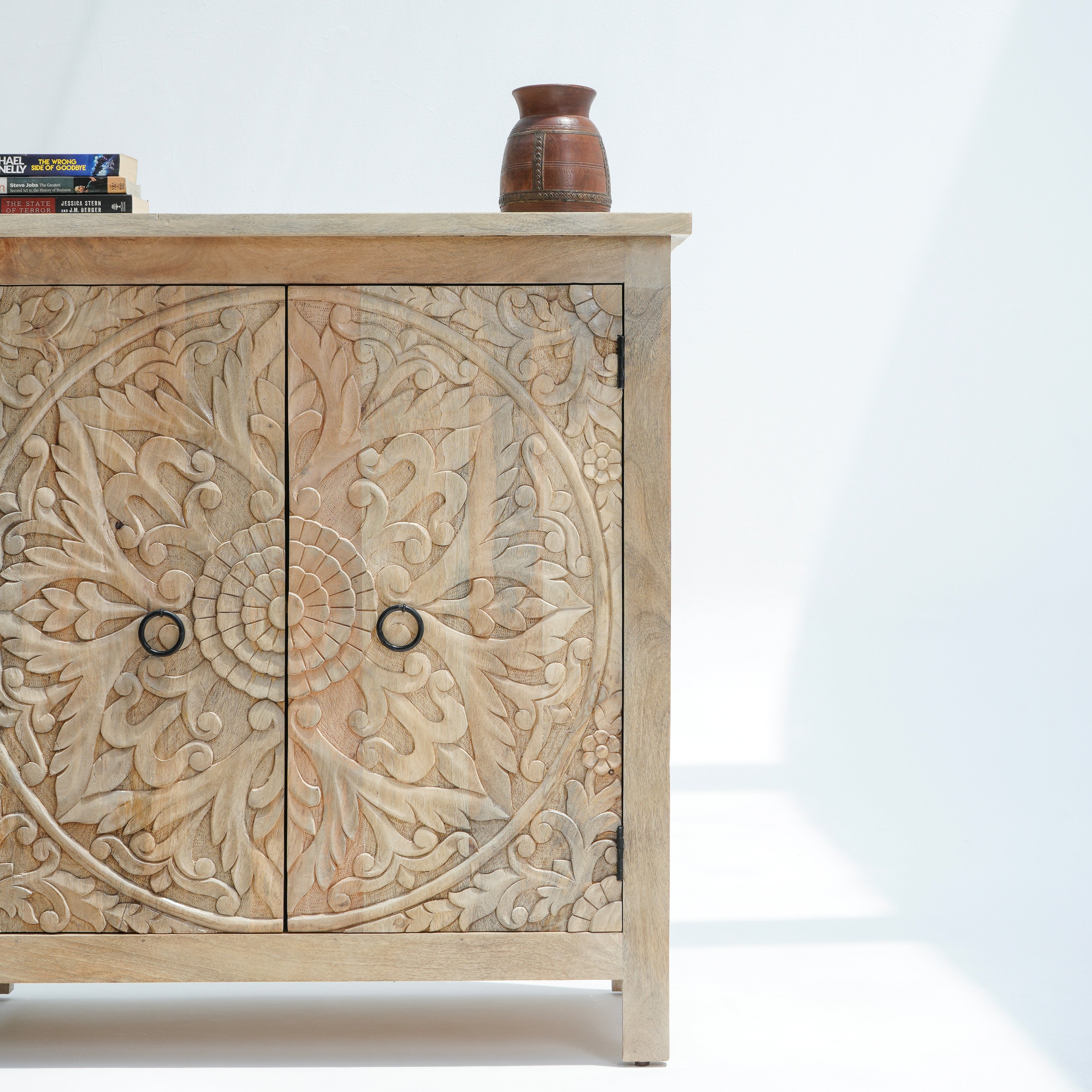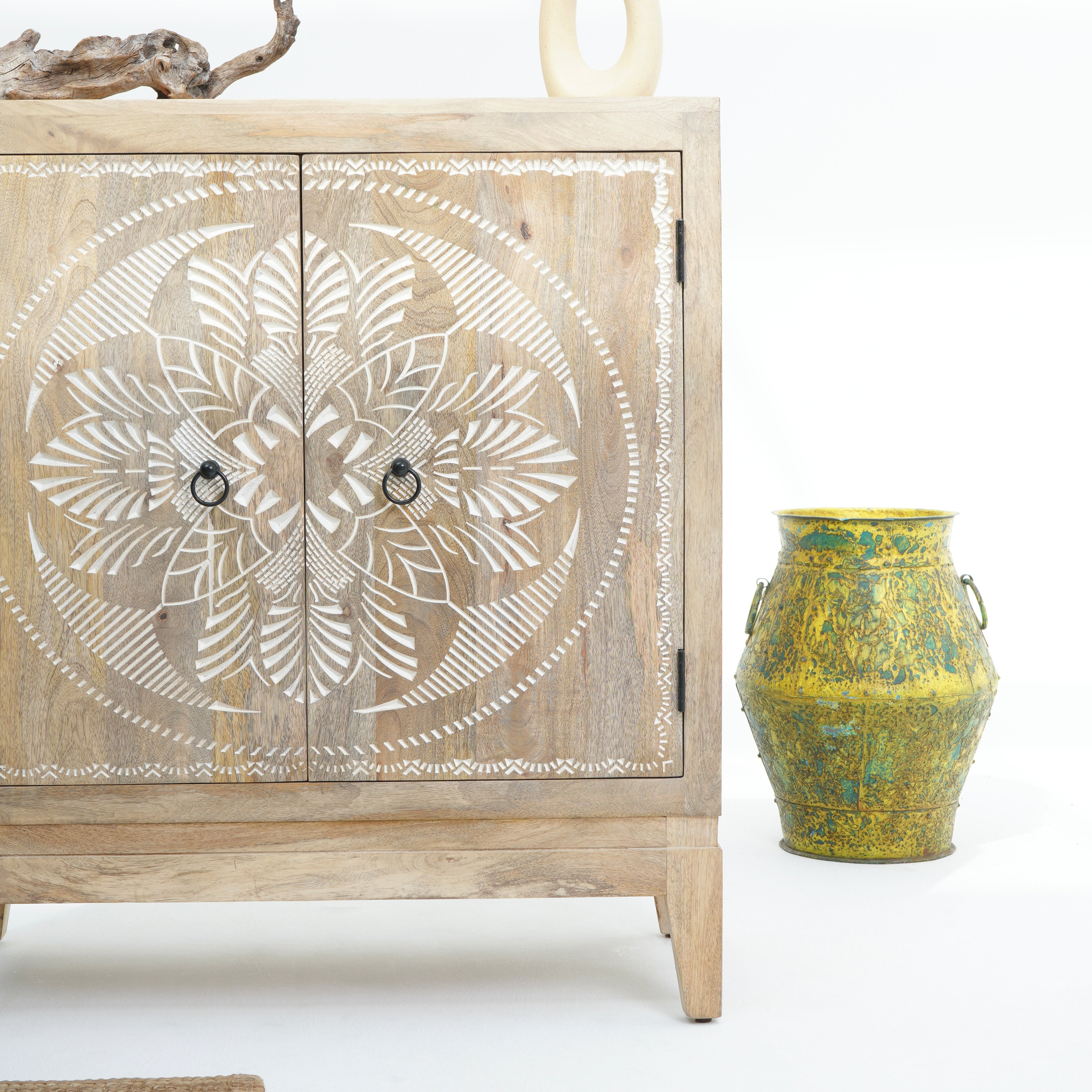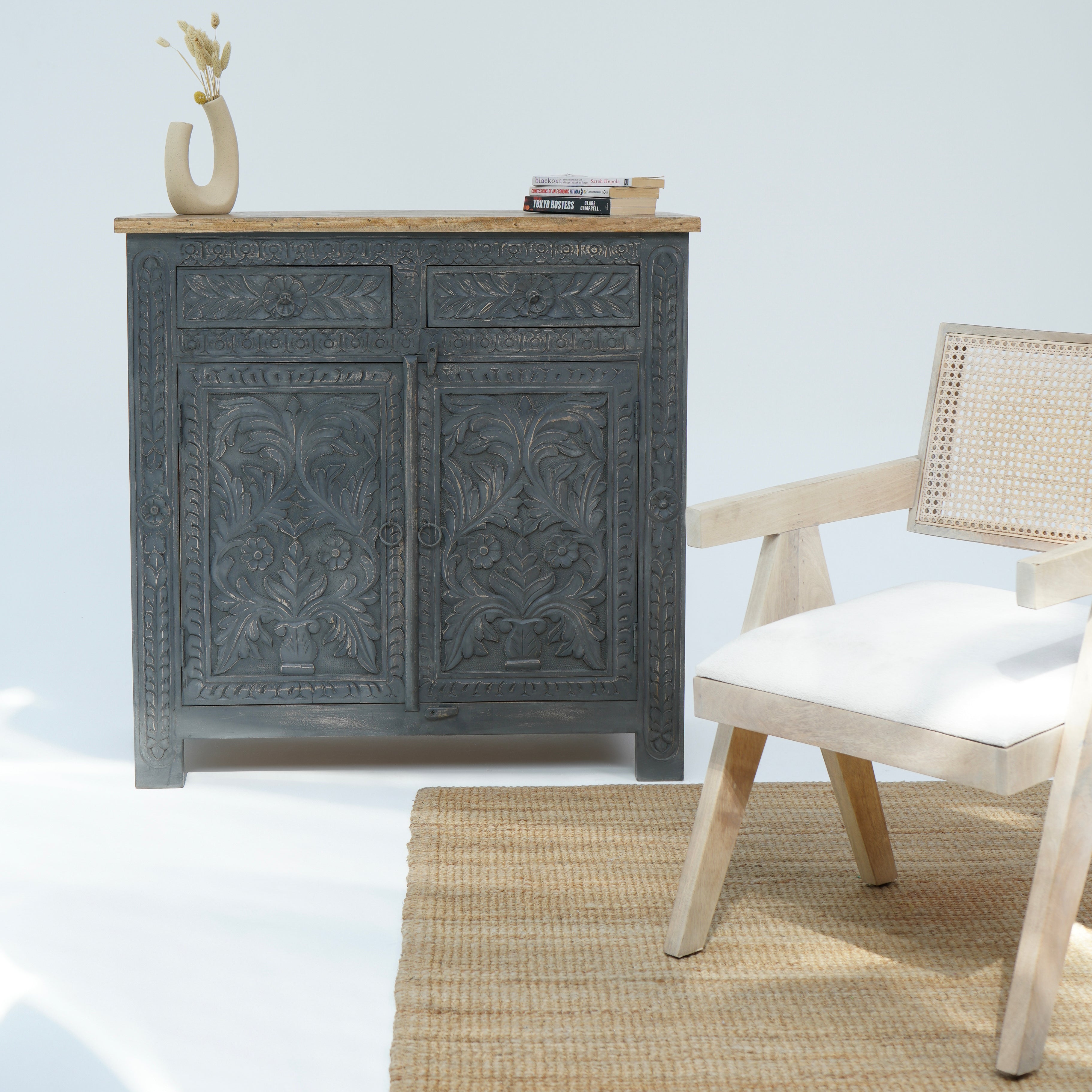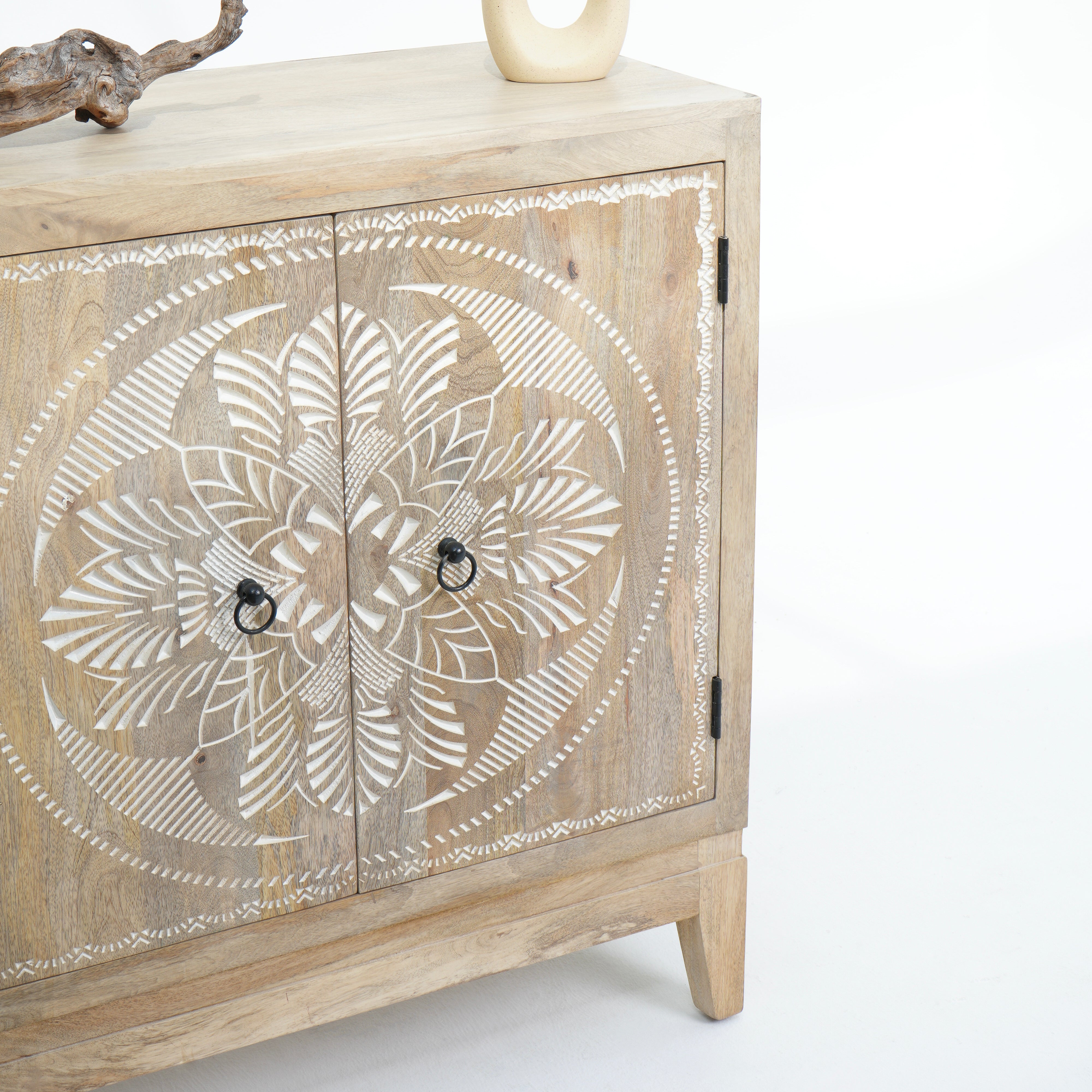 أضف لمسة من السحر الخالد والأناقة العصرية إلى مساحة معيشتك مع خزانة البوفيه المنحوتة يدويًا ، المصنوعة بحرفية عالية من خشب المانجو المستدام وخشب الأكاسيا المتين . تمزج هذه القطعة بسلاسة بين التصميم البسيط والحرفية العريقة ، لتجمع بين العملية والجمال في منزلك.