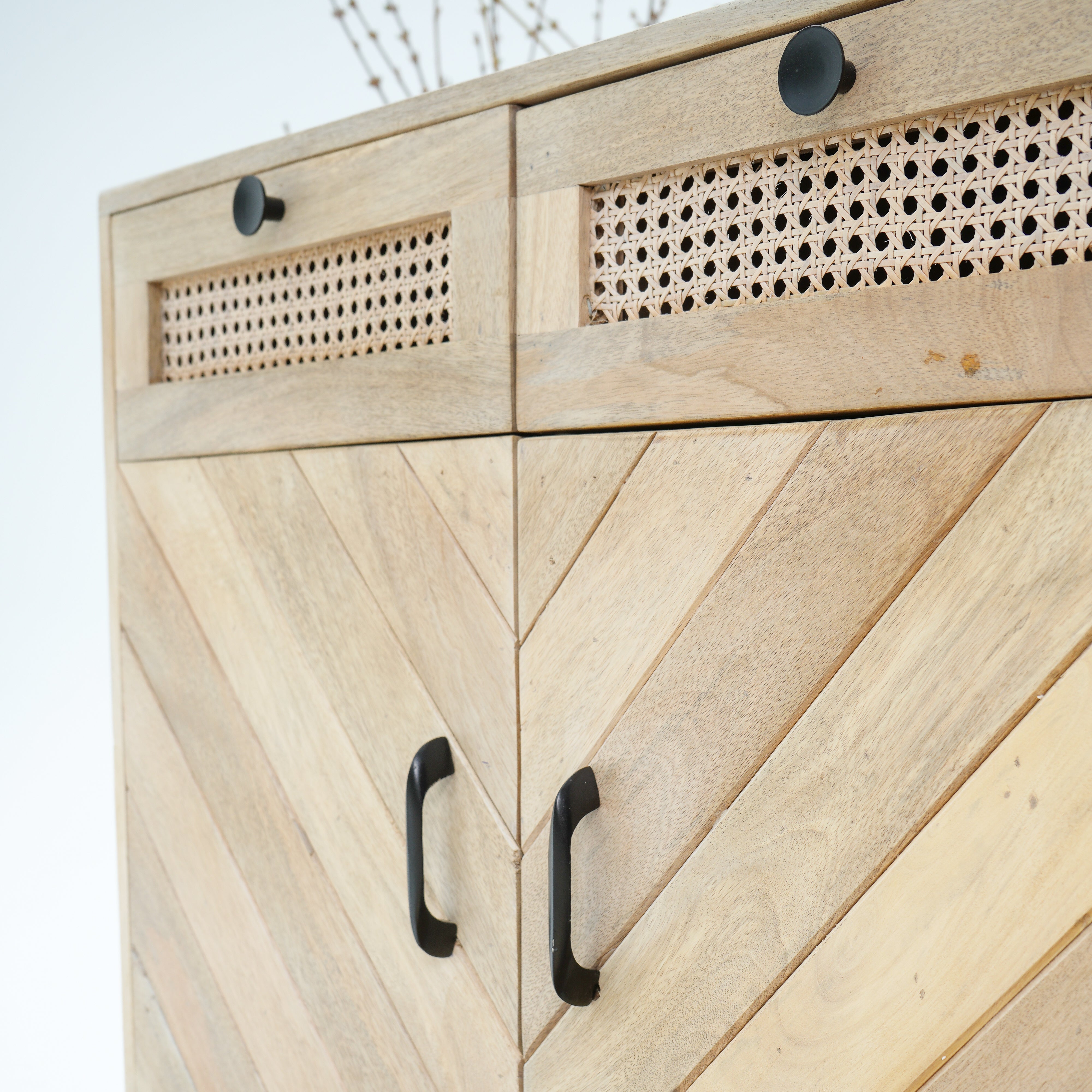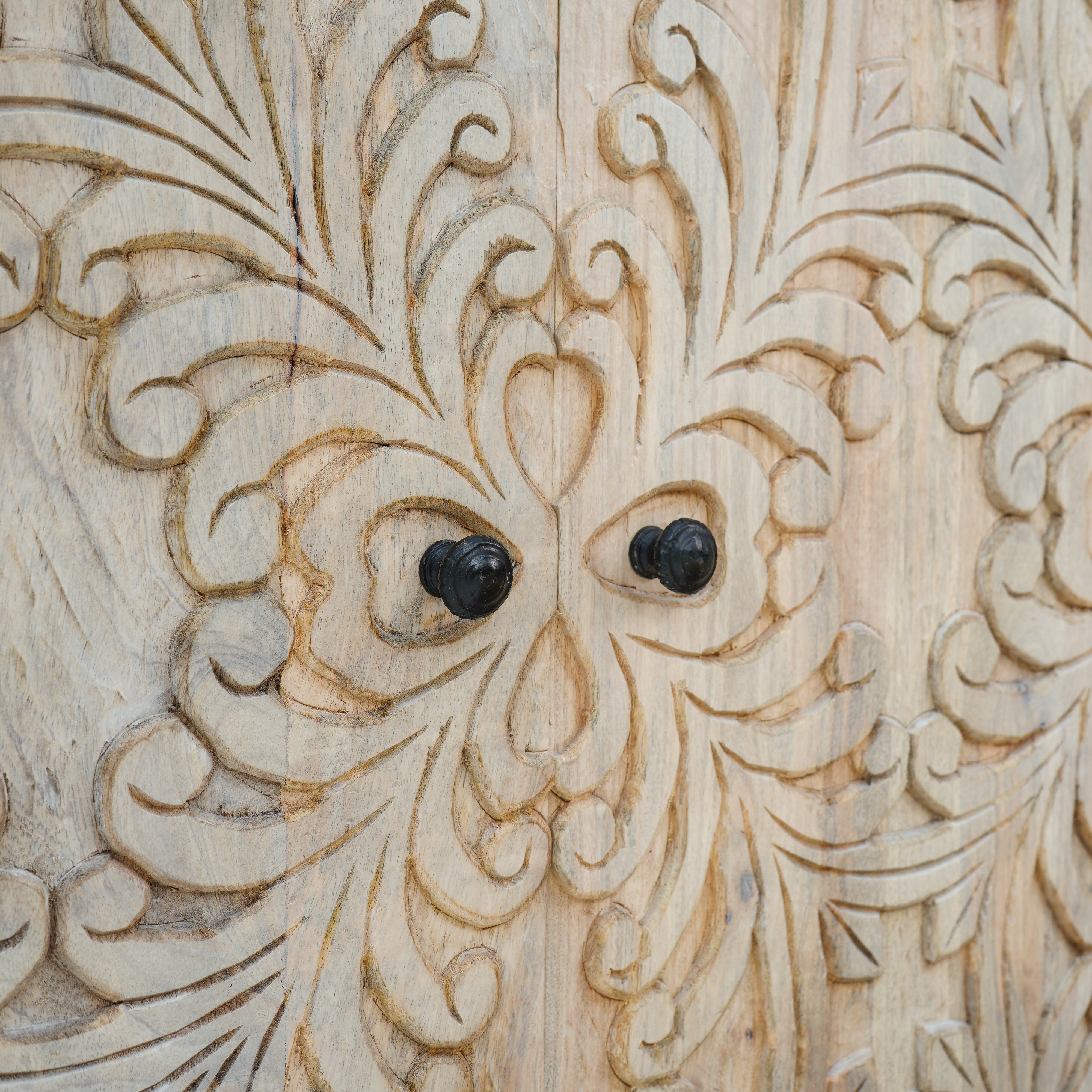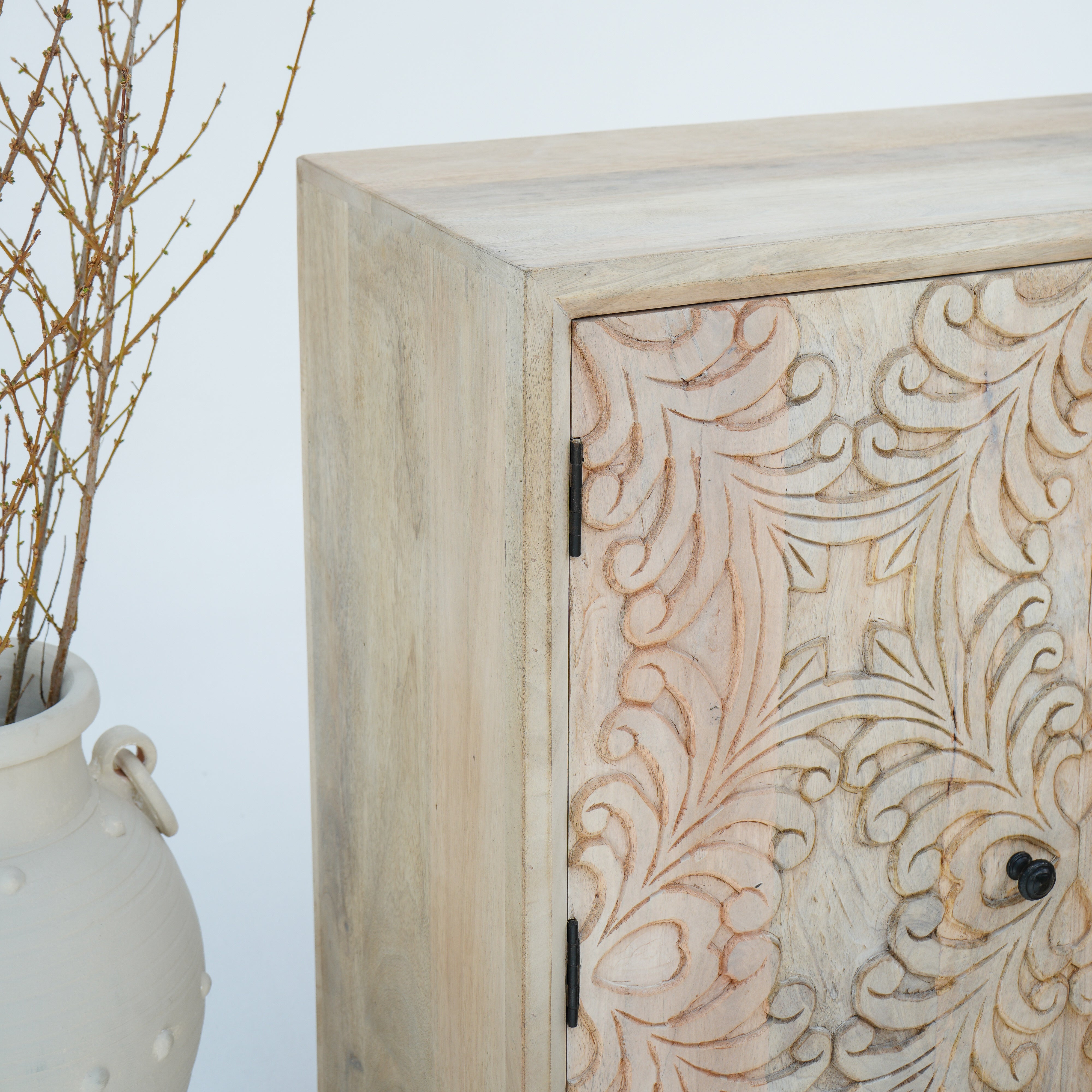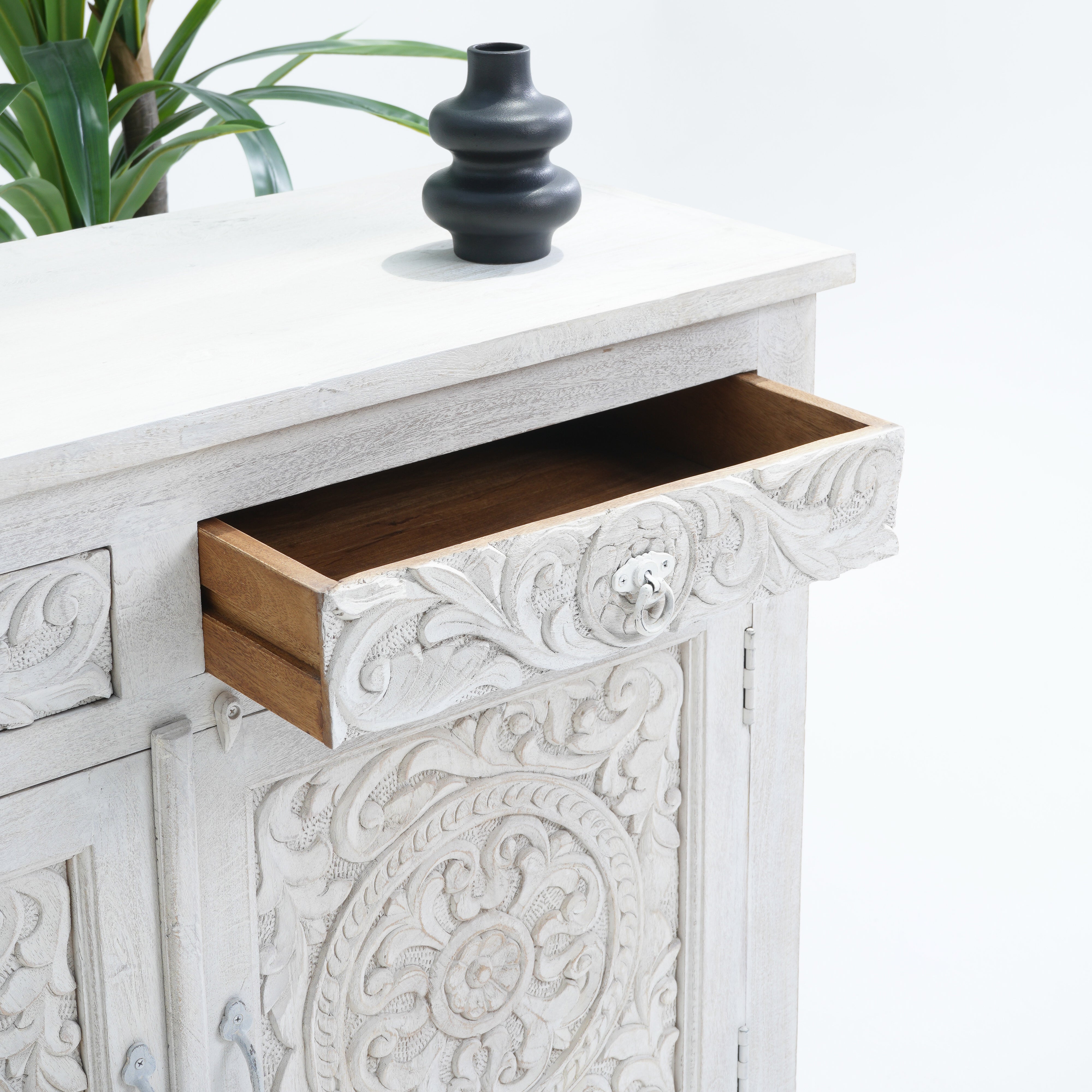 أضف لمسة من السحر الخالد والأناقة العصرية إلى مساحة معيشتك مع خزانة البوفيه المنحوتة يدويًا ، المصنوعة بحرفية عالية من خشب المانجو المستدام وخشب الأكاسيا المتين . تمزج هذه القطعة بسلاسة بين التصميم البسيط والحرفية العريقة ، لتجمع بين العملية والجمال في منزلك.