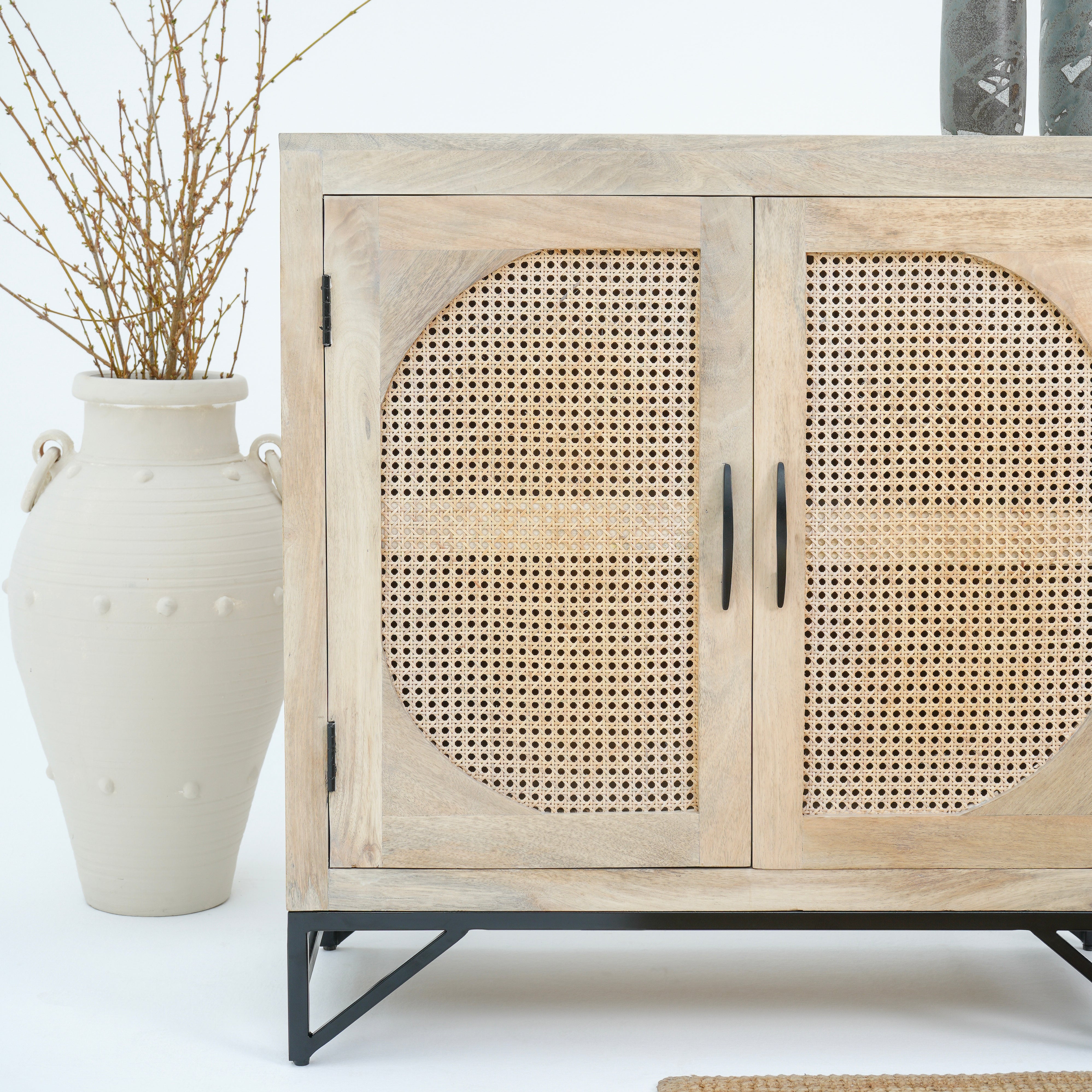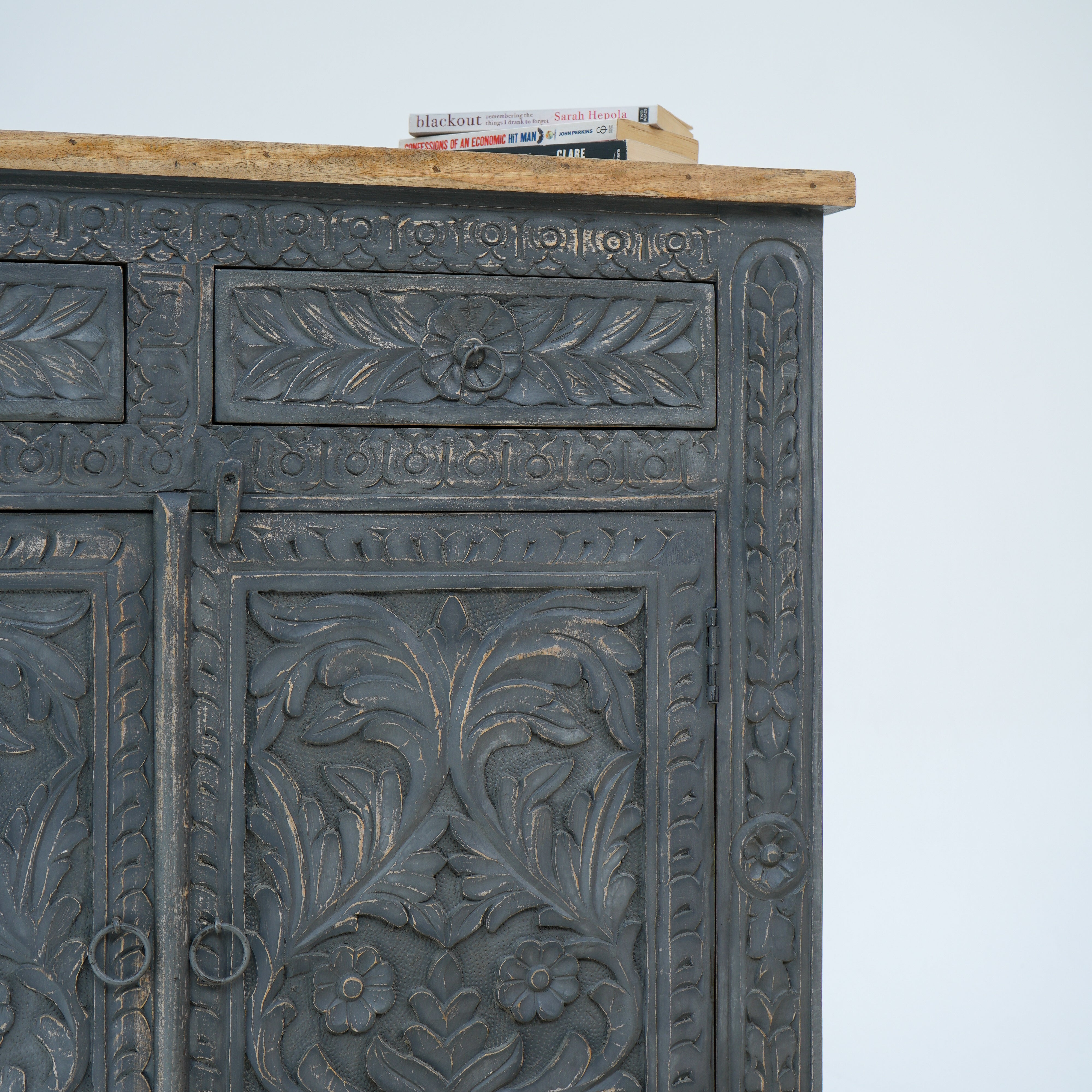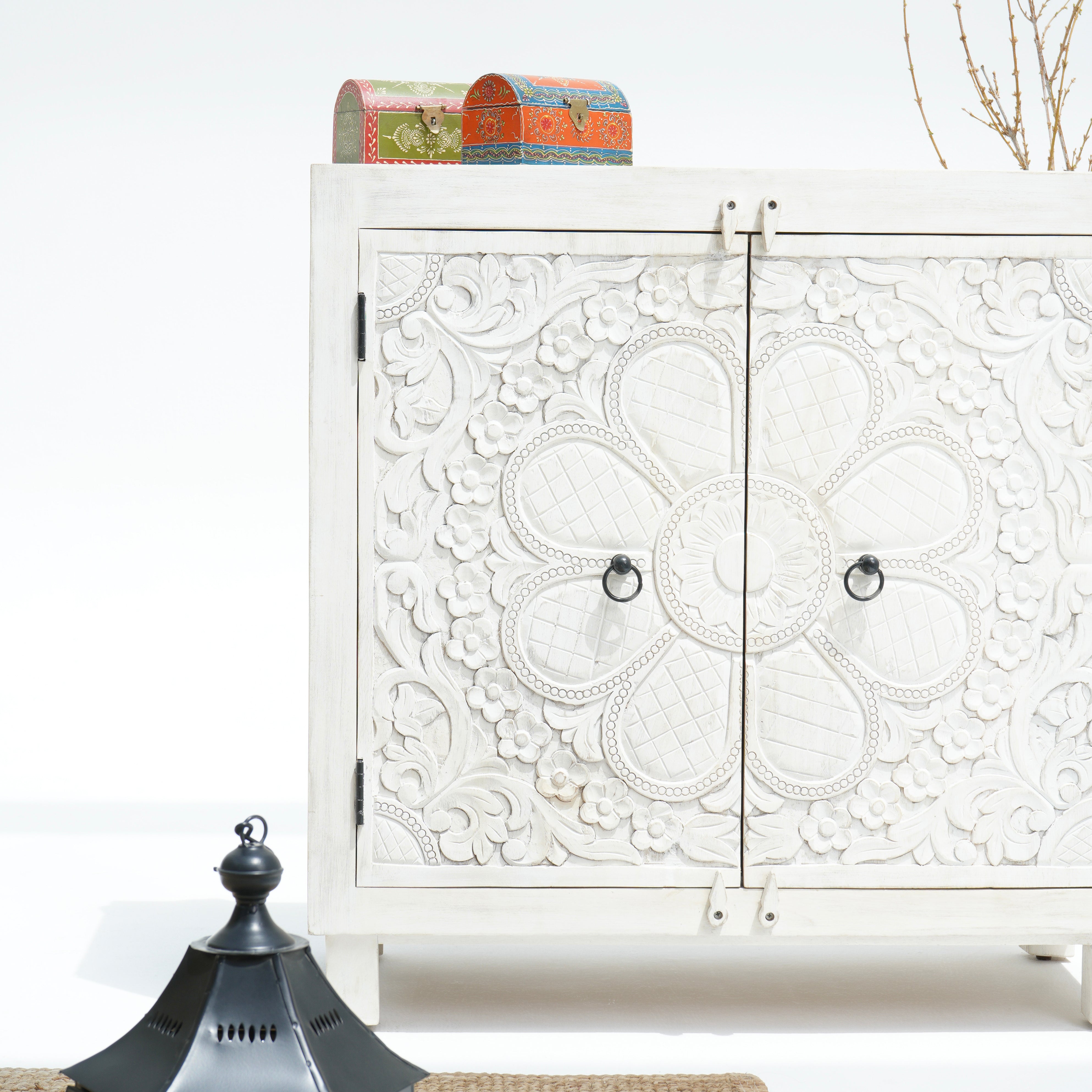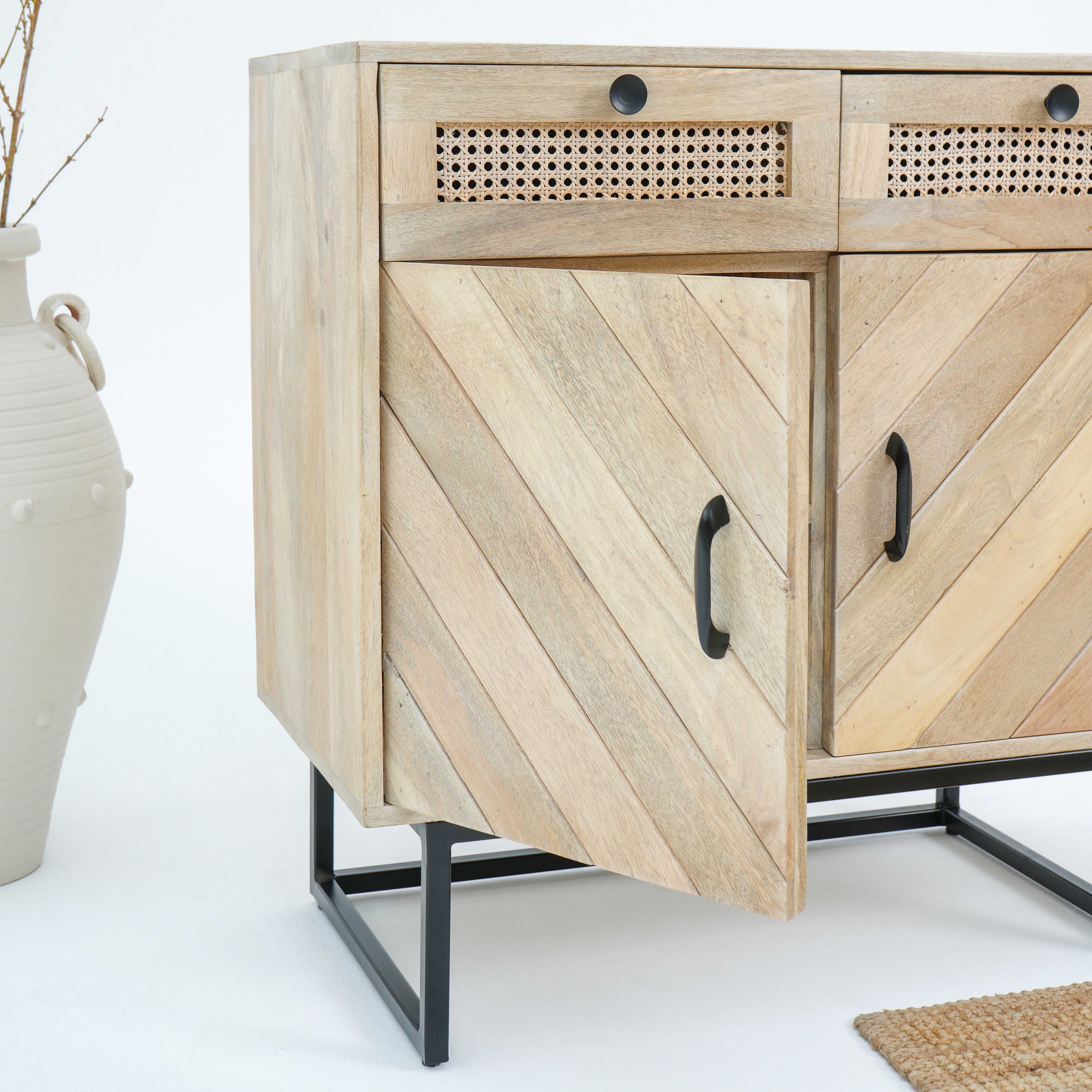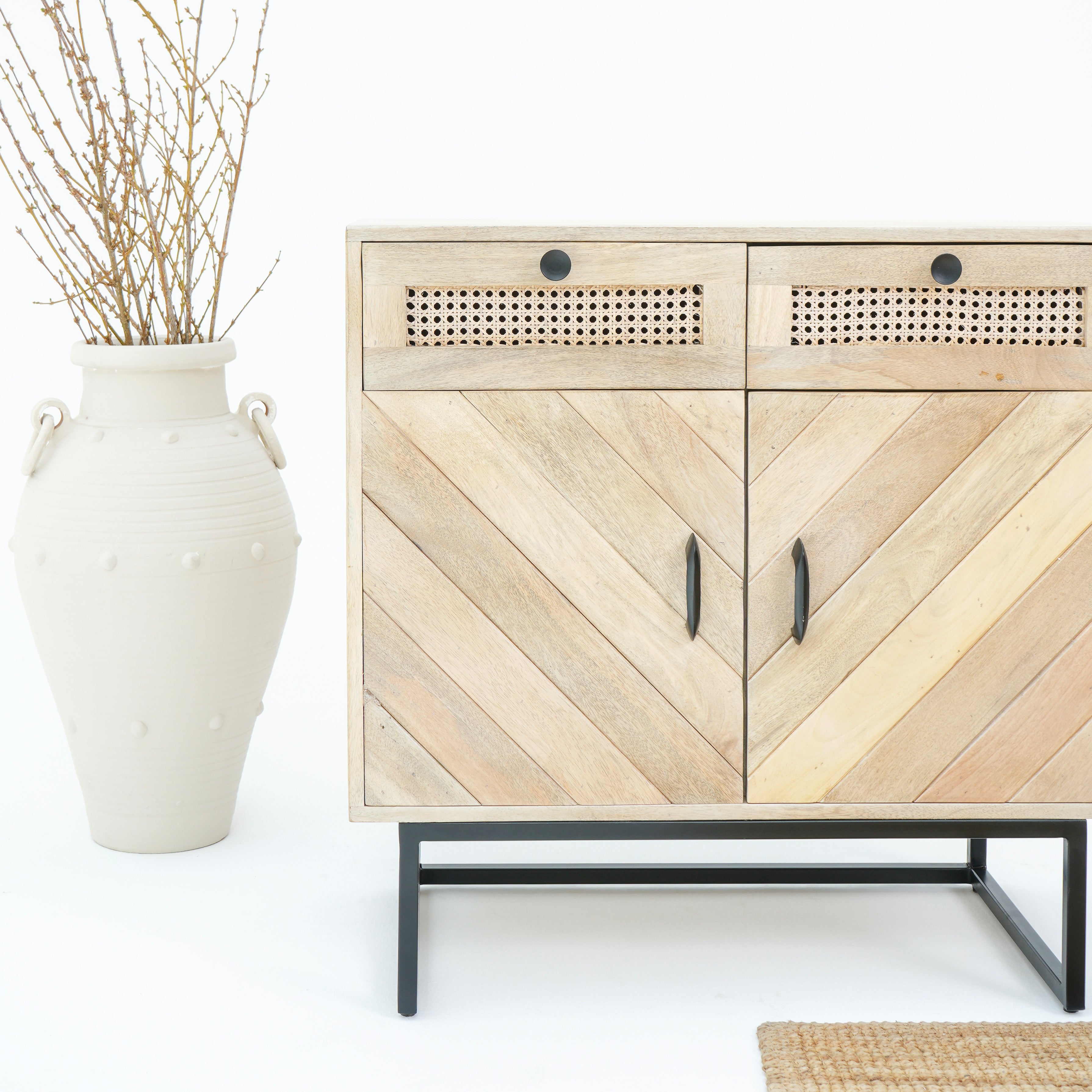 أضف لمسة من السحر الخالد والأناقة العصرية إلى مساحة معيشتك مع خزانة البوفيه المنحوتة يدويًا ، المصنوعة بحرفية عالية من خشب المانجو المستدام وخشب الأكاسيا المتين . تمزج هذه القطعة بسلاسة بين التصميم البسيط والحرفية العريقة ، لتجمع بين العملية والجمال في منزلك.
