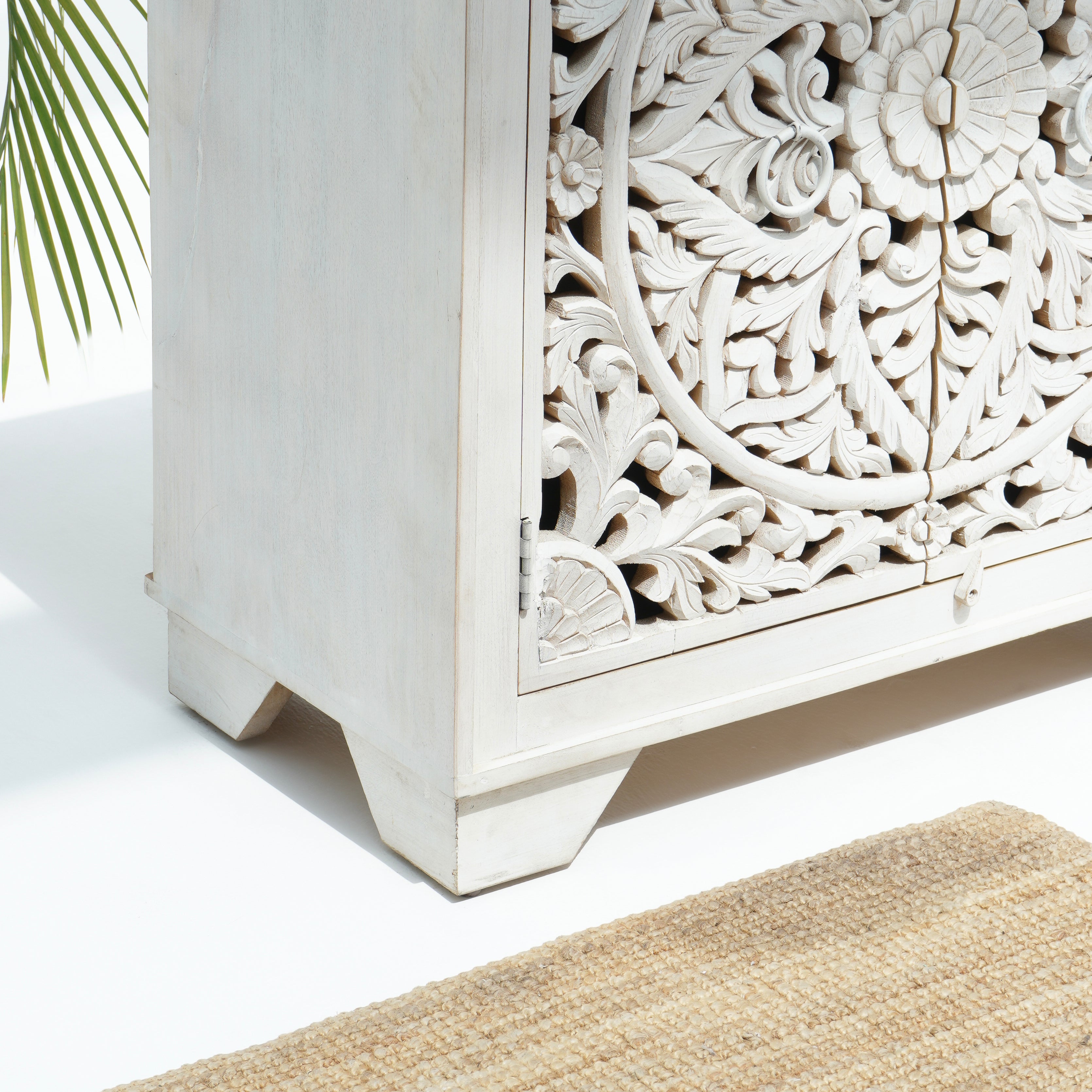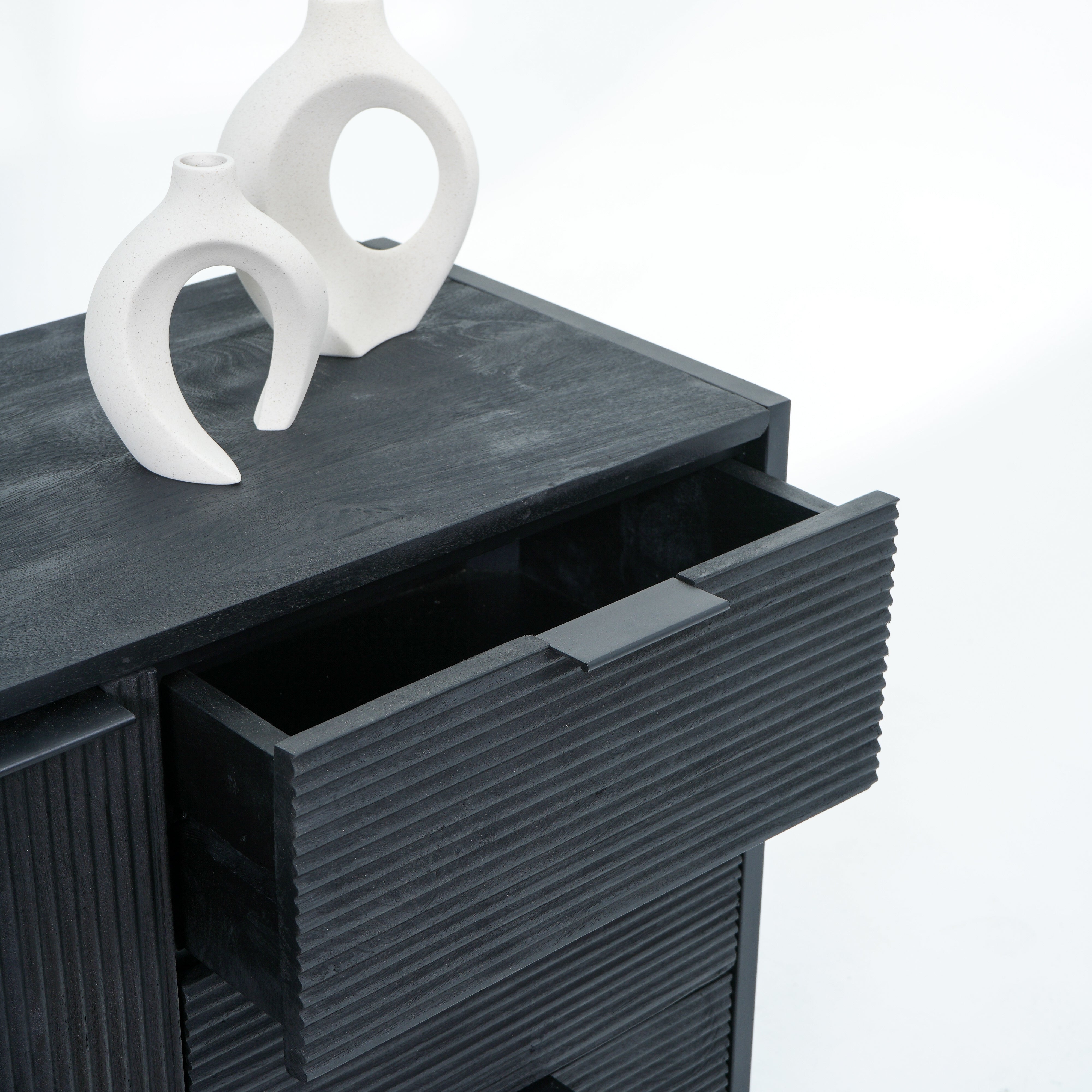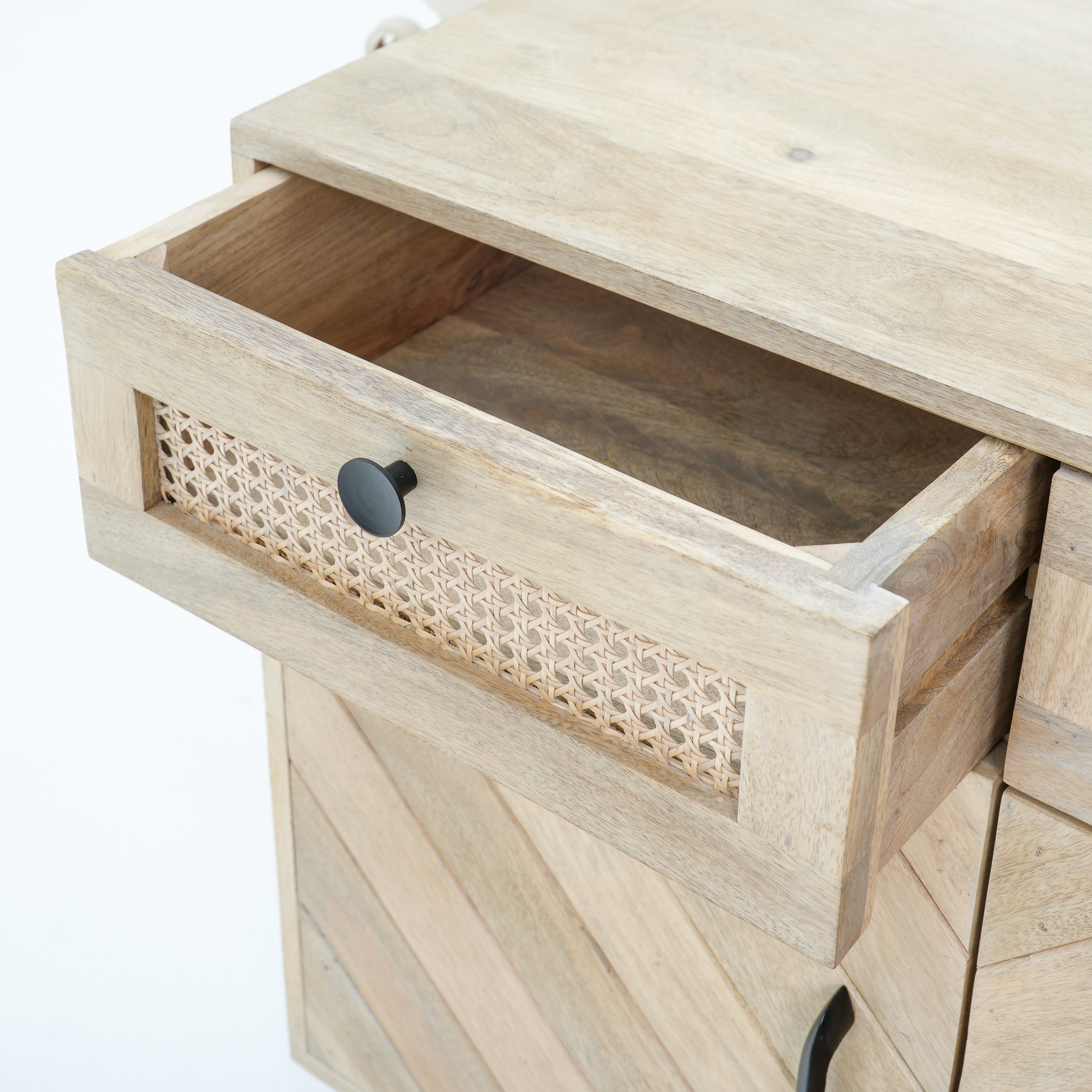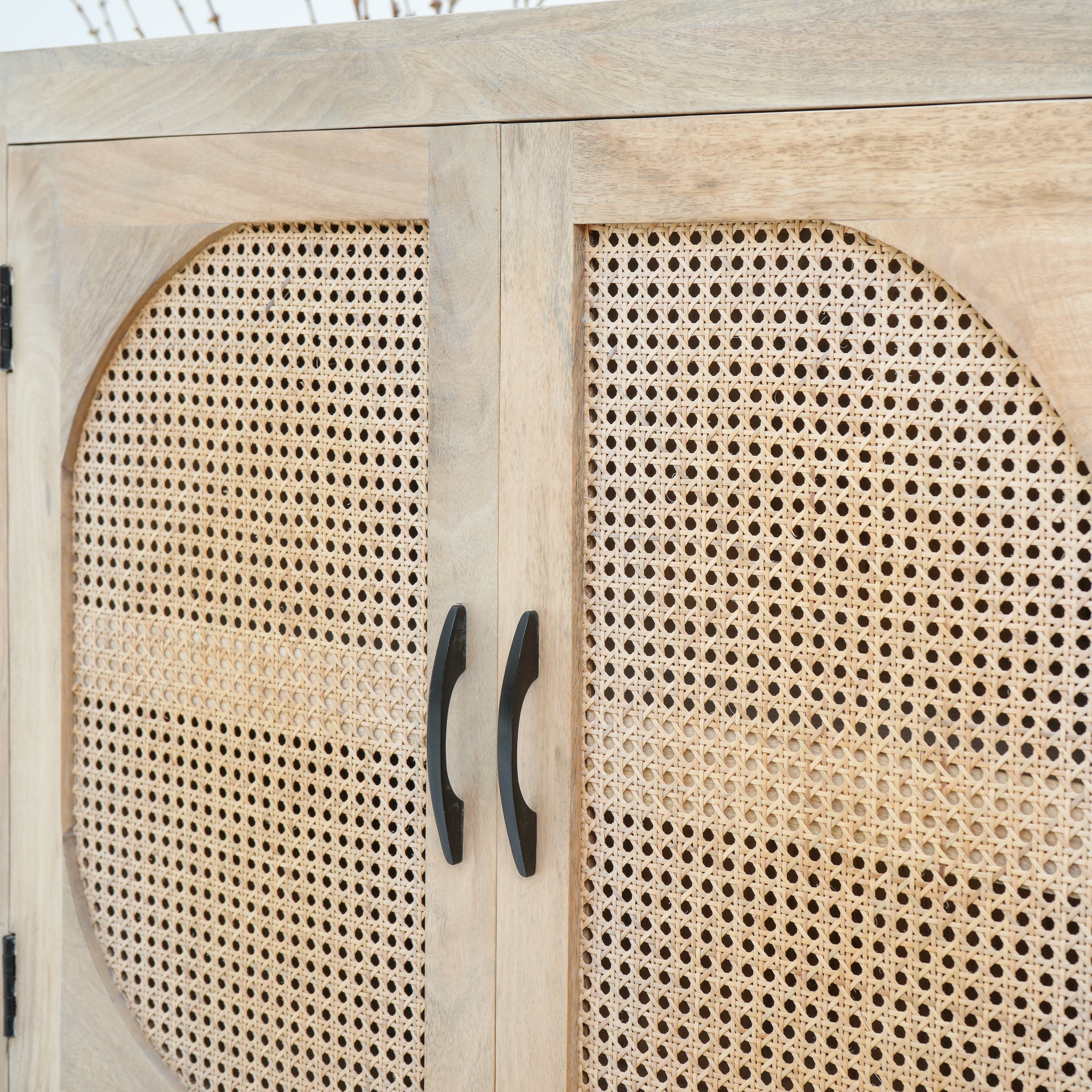 أضف لمسة من السحر الخالد والأناقة العصرية إلى مساحة معيشتك مع خزانة البوفيه المنحوتة يدويًا ، المصنوعة بحرفية عالية من خشب المانجو المستدام وخشب الأكاسيا المتين . تمزج هذه القطعة بسلاسة بين التصميم البسيط والحرفية العريقة ، لتجمع بين العملية والجمال في منزلك.
