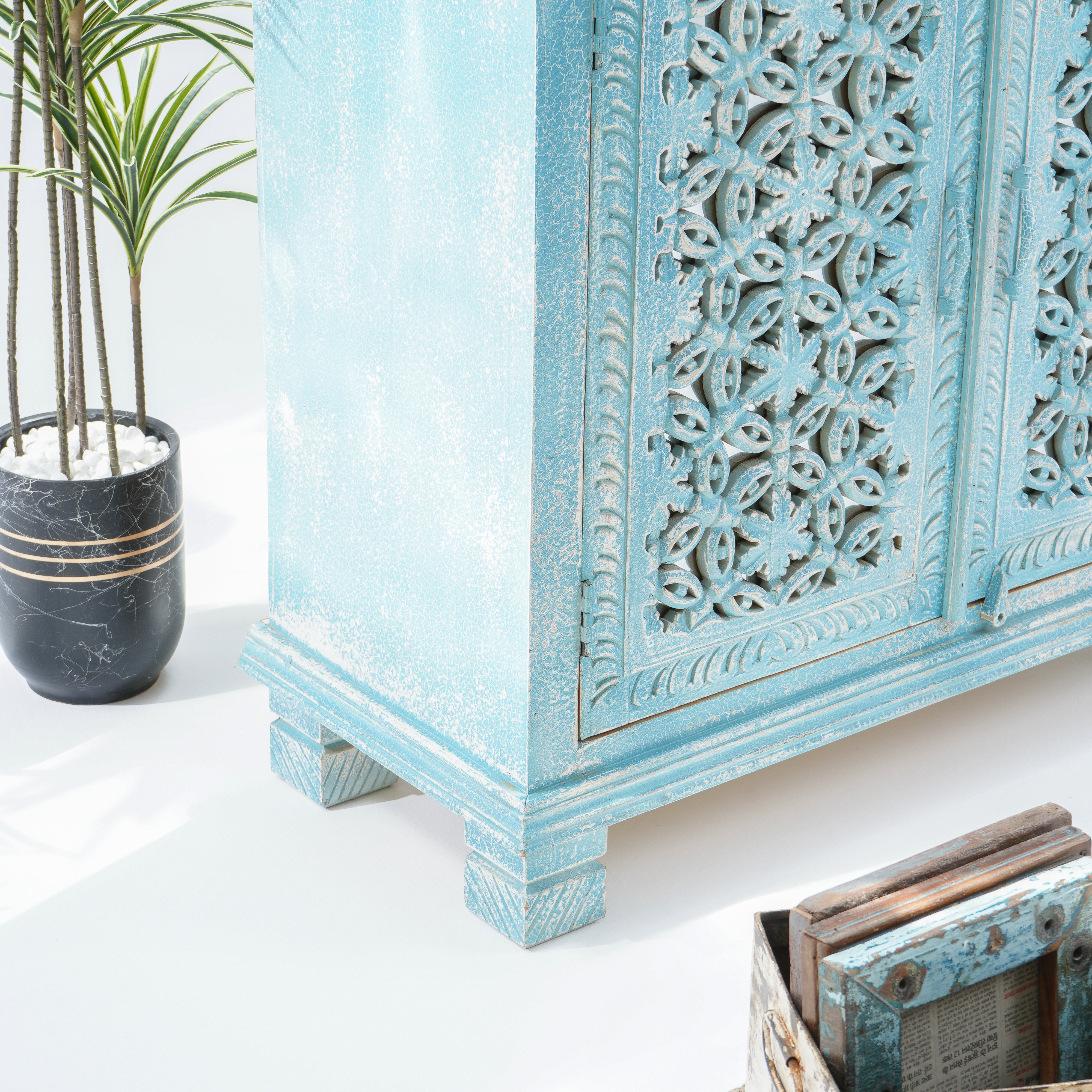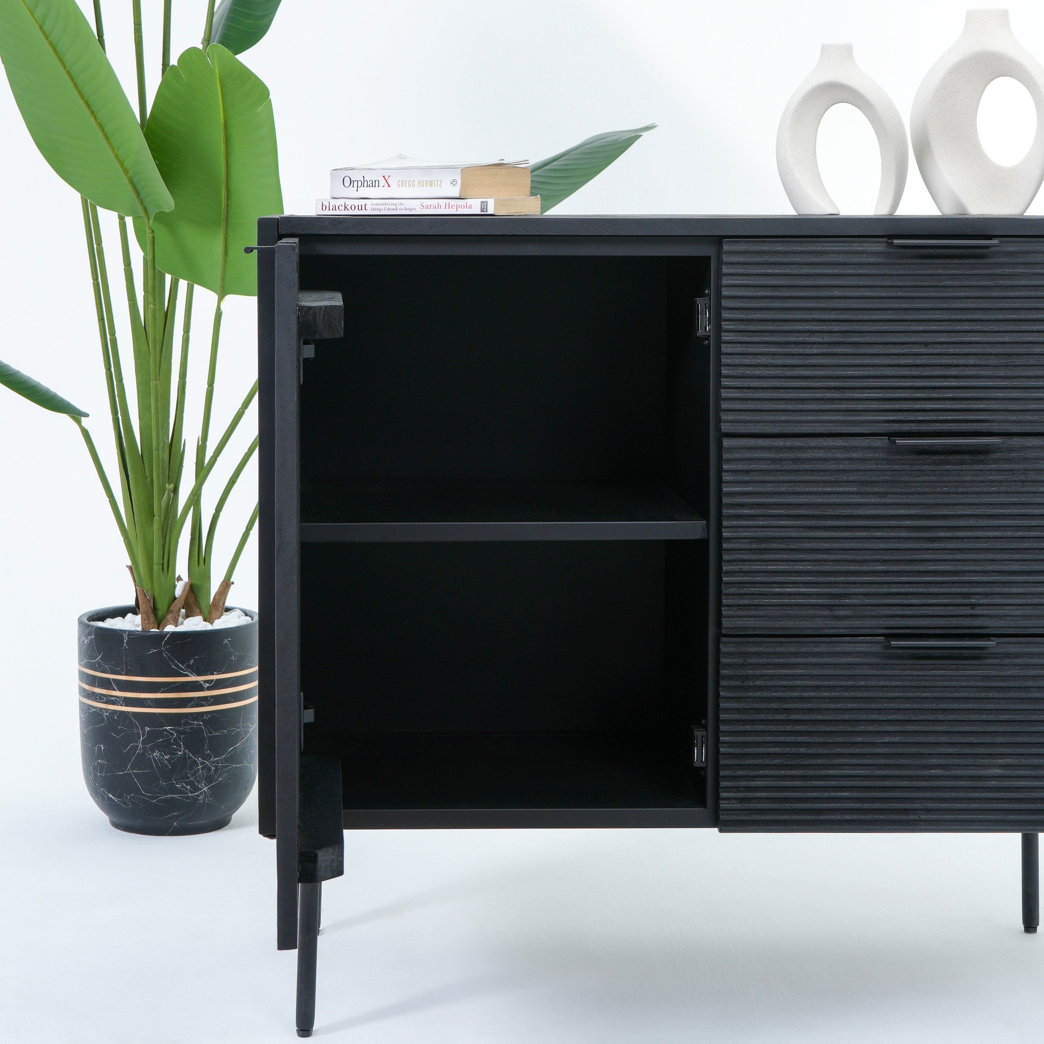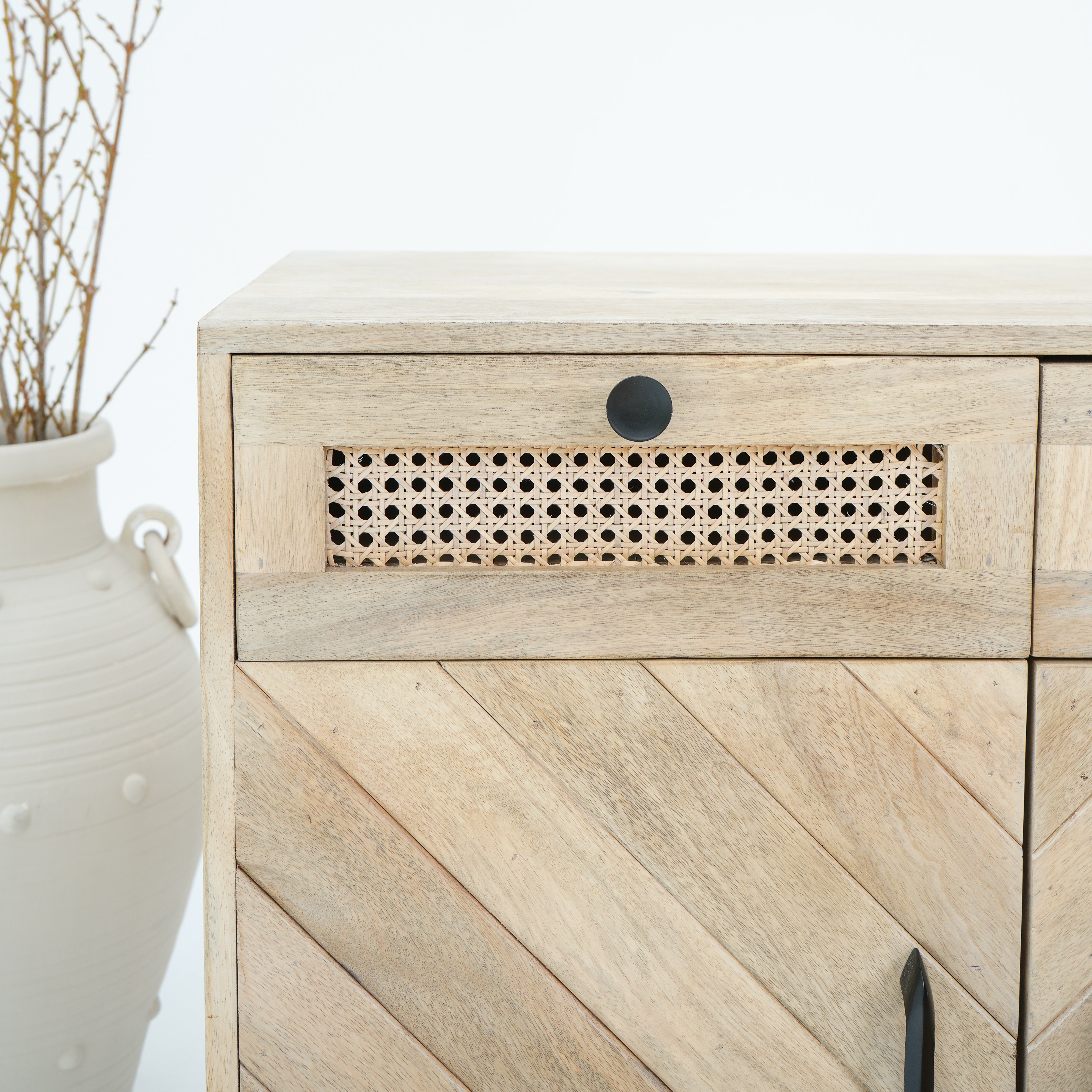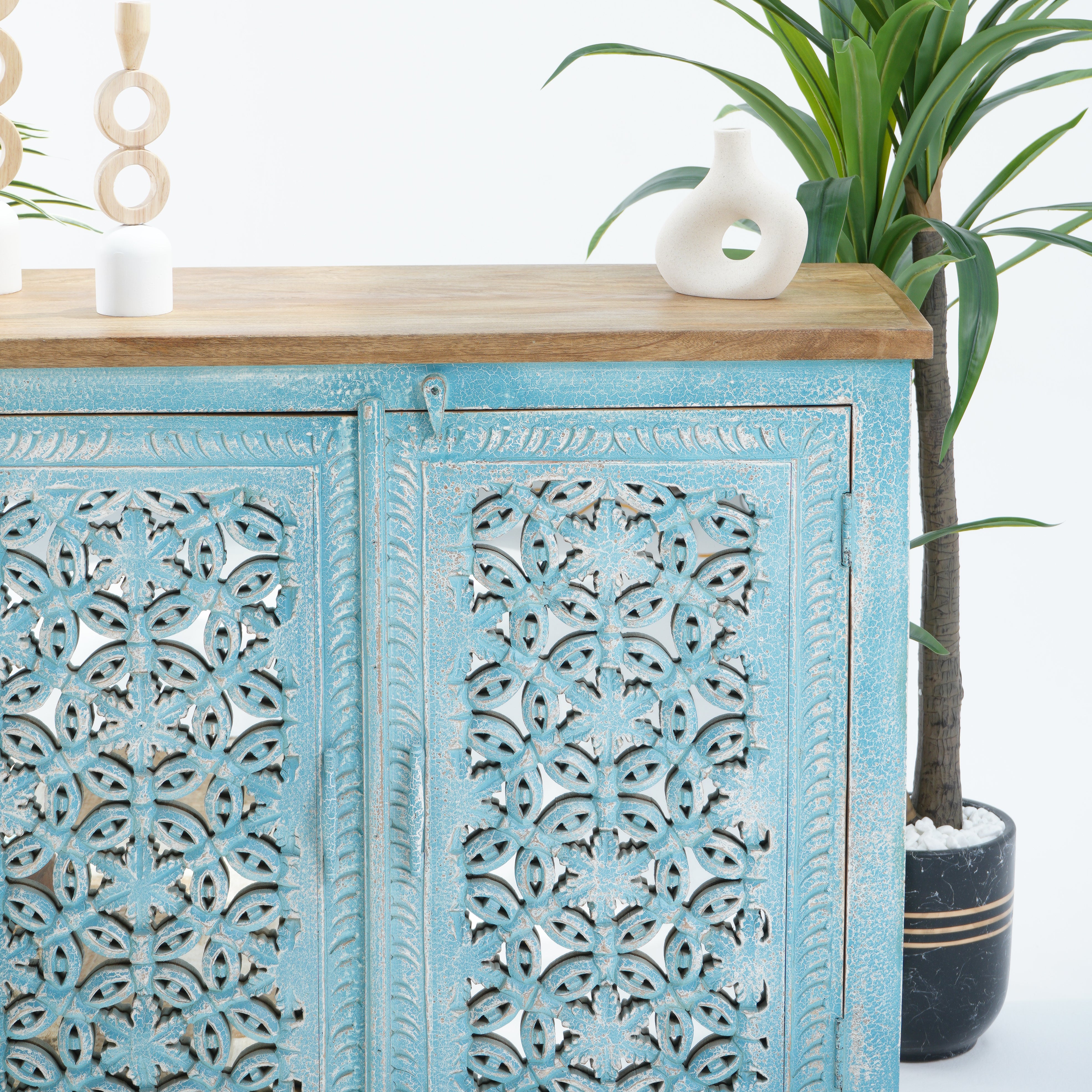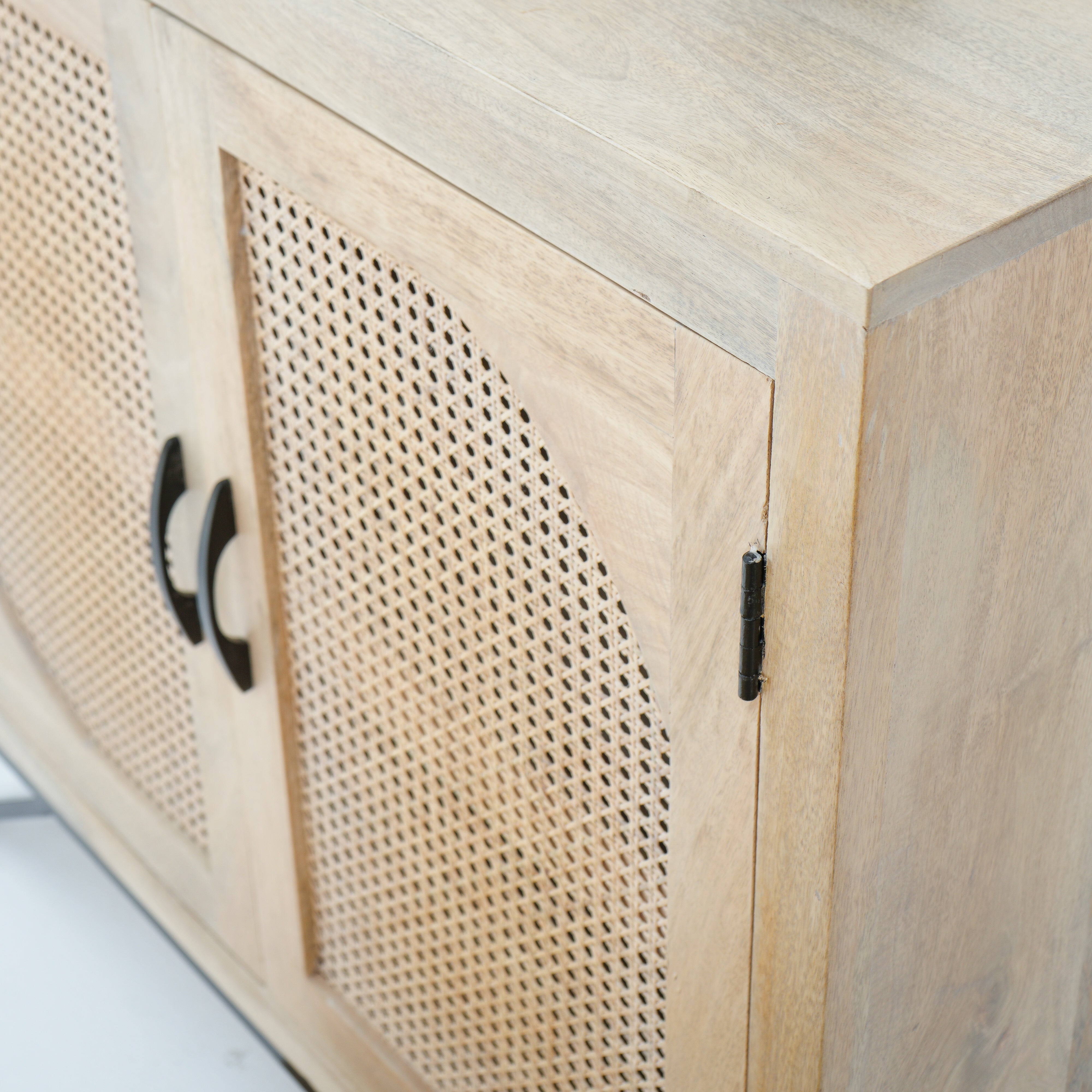أضف لمسة من السحر الخالد والأناقة العصرية إلى مساحة معيشتك مع خزانة البوفيه المنحوتة يدويًا ، المصنوعة بحرفية عالية من خشب المانجو المستدام وخشب الأكاسيا المتين . تمزج هذه القطعة بسلاسة بين التصميم البسيط والحرفية العريقة ، لتجمع بين العملية والجمال في منزلك.
