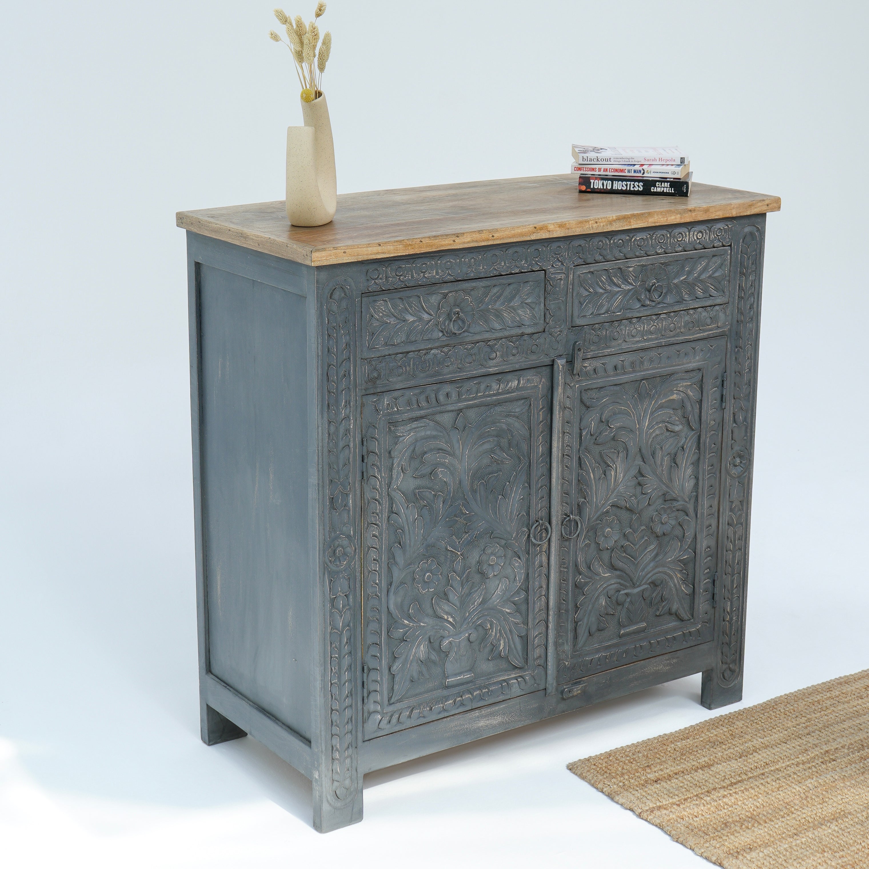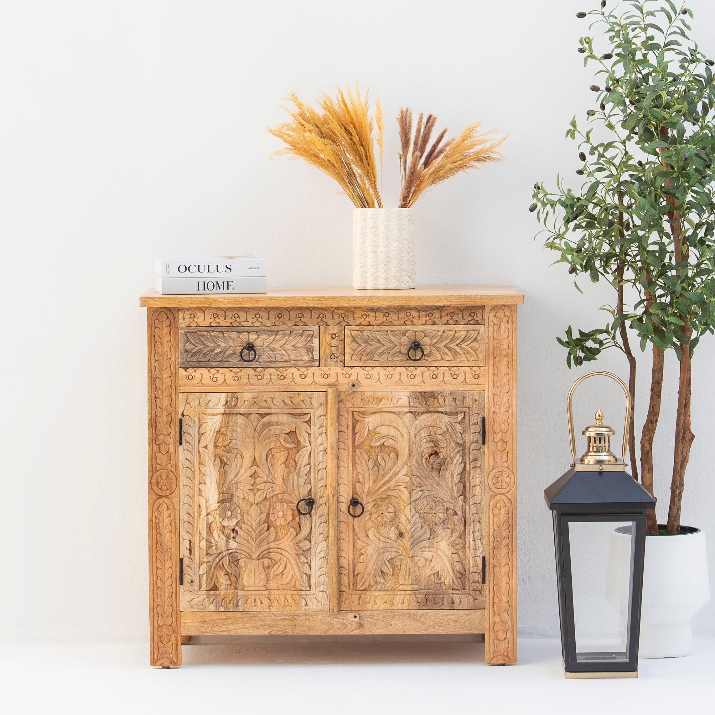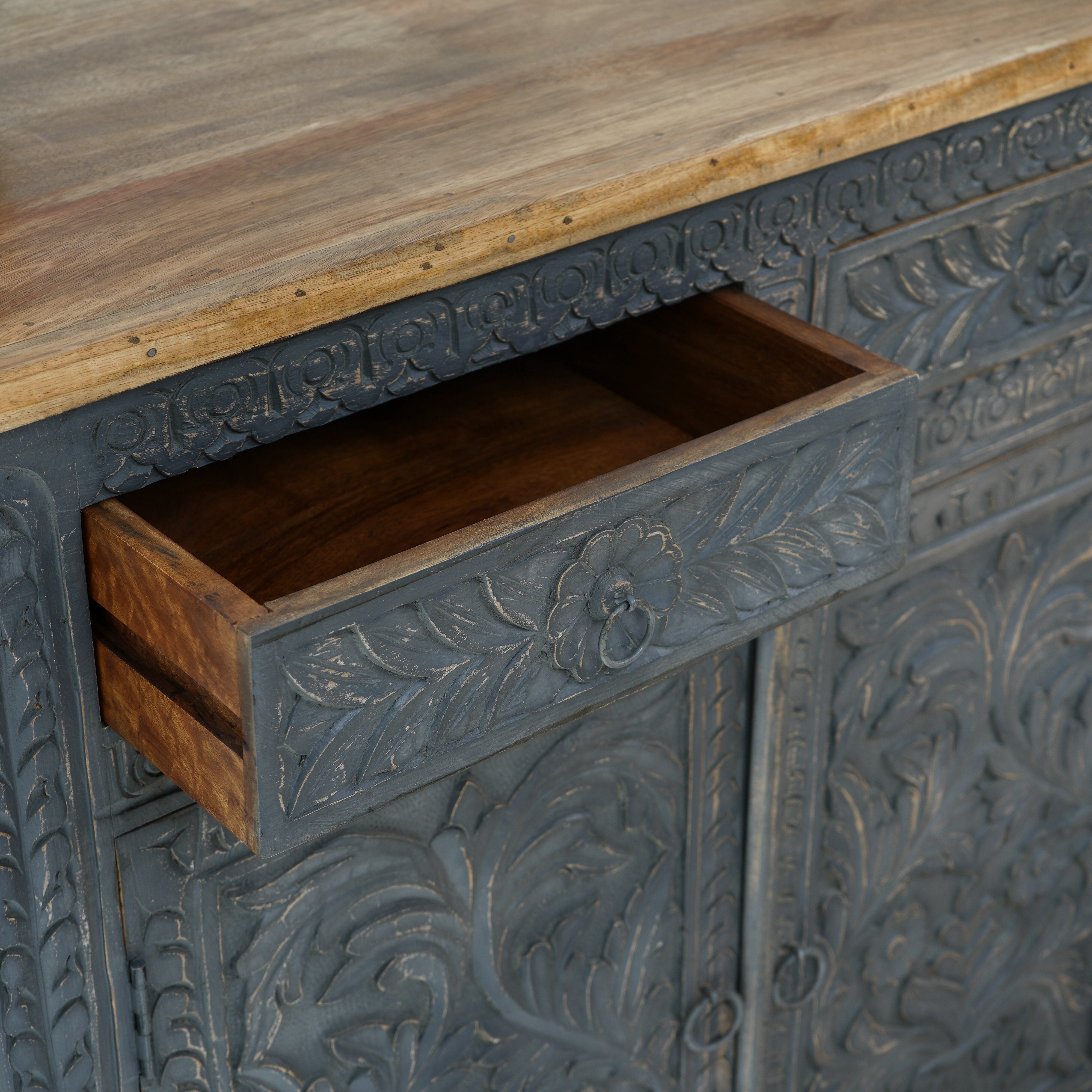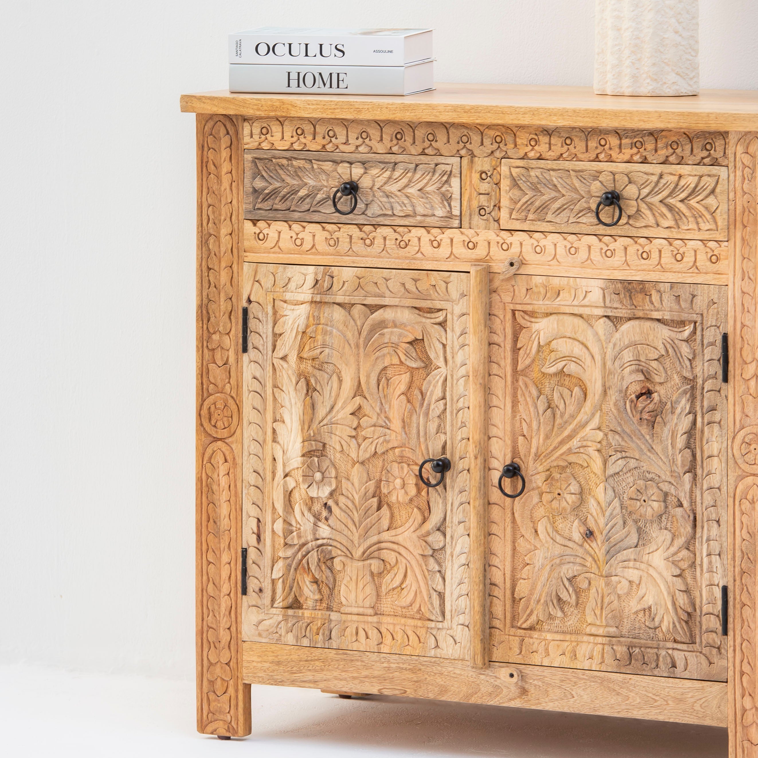 بوفيه وخزانة جانبية خشبية منحوتة يدويًا - خشب المانجو والأكاسيا