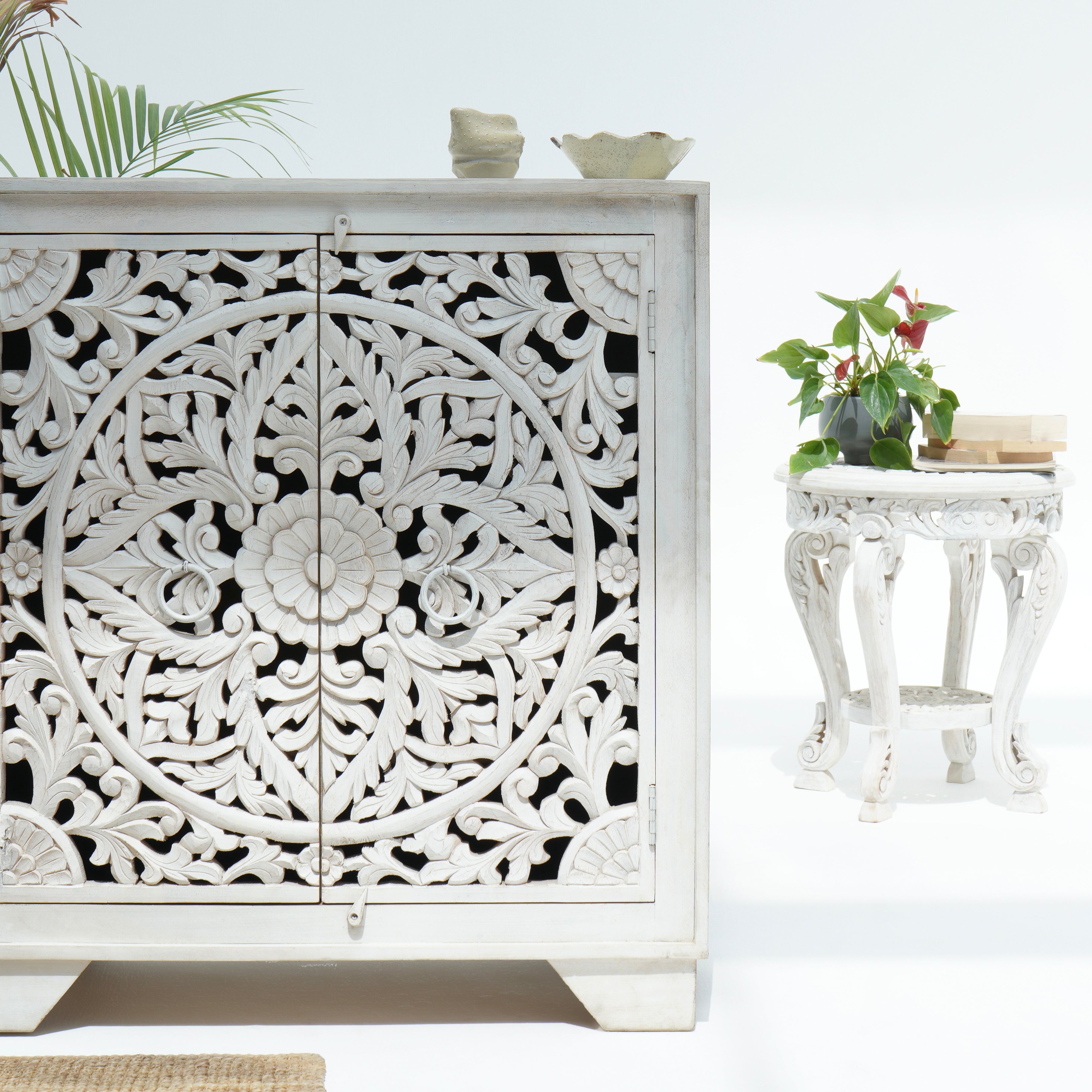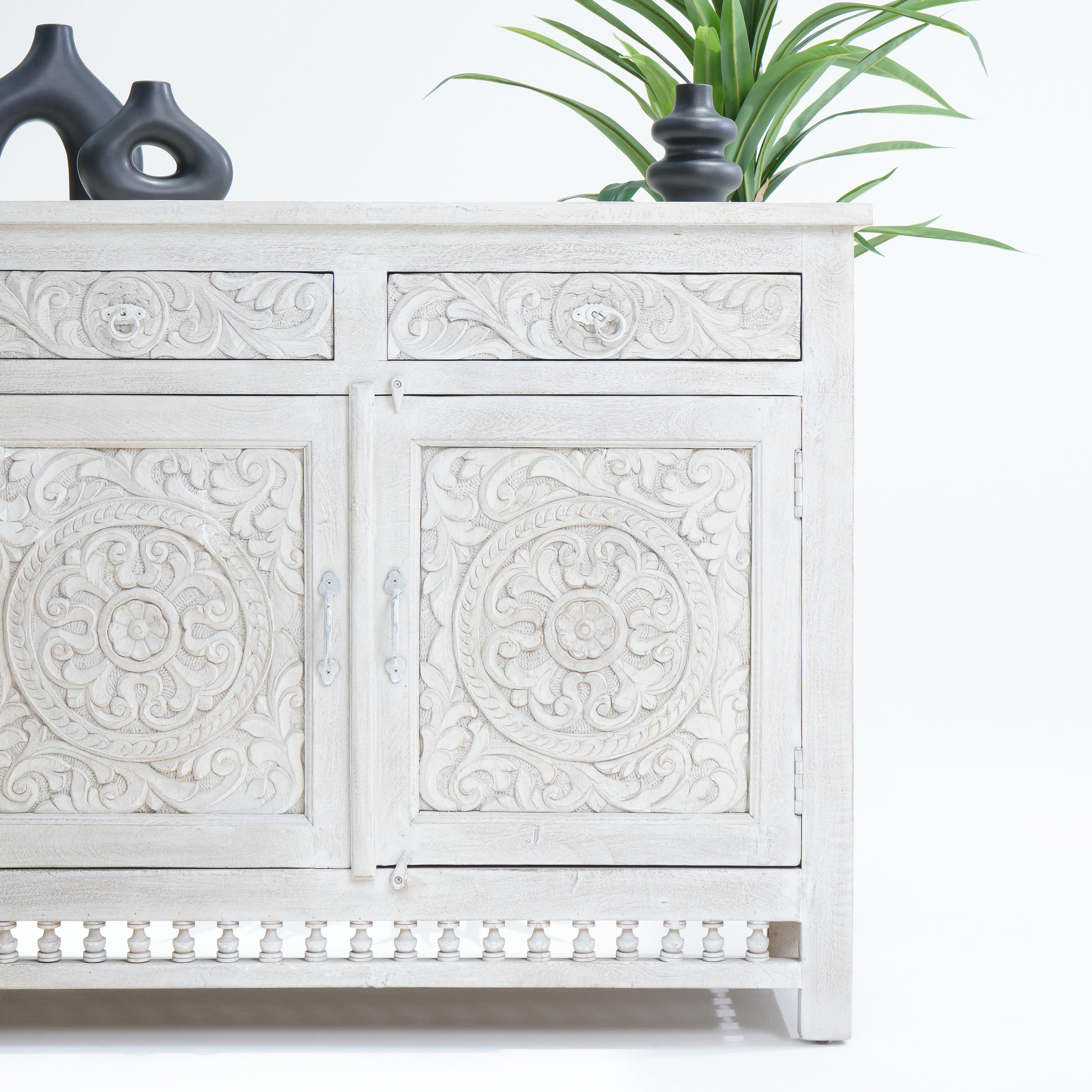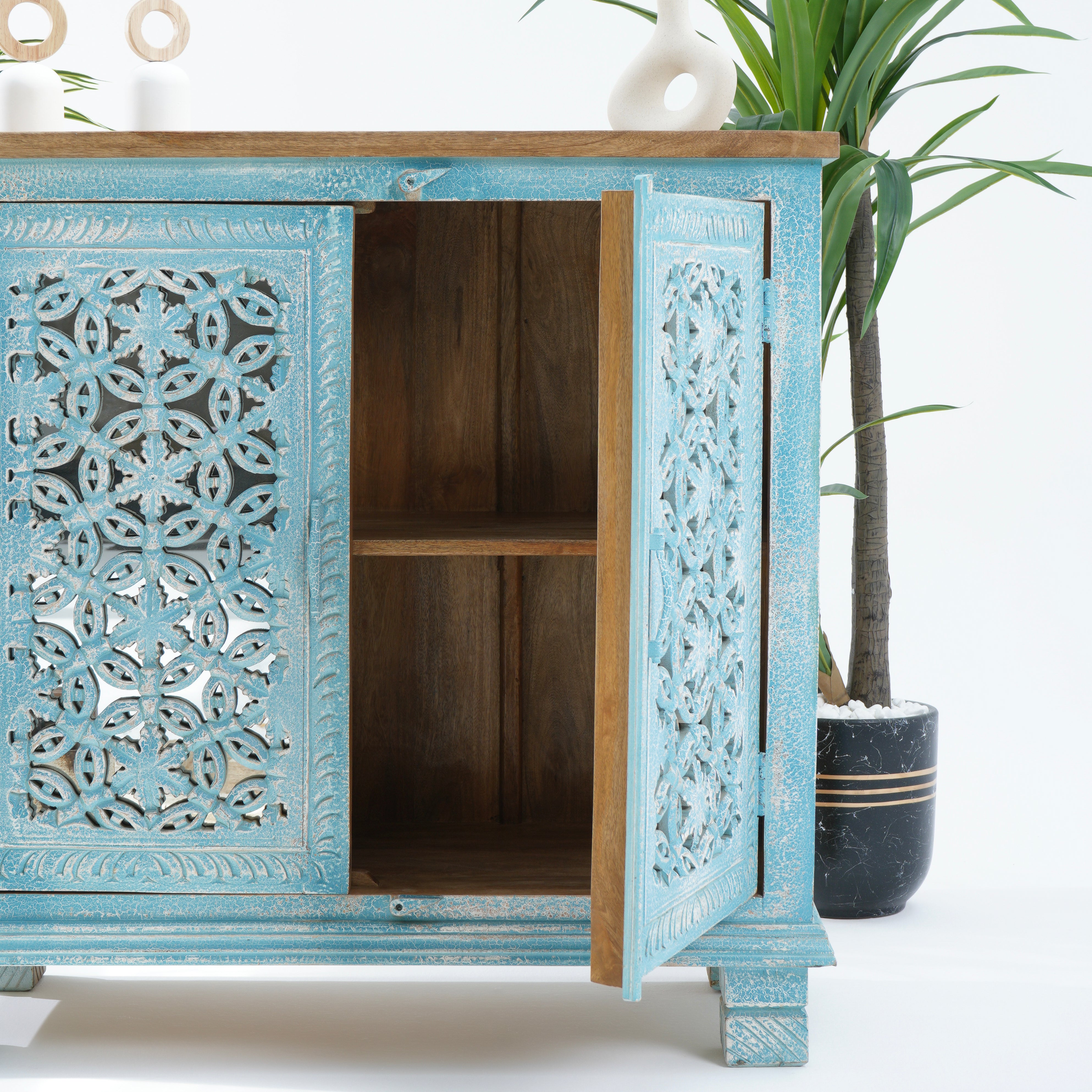 بوفيه وخزانة جانبية خشبية منحوتة يدويًا - خشب المانجو والأكاسيا