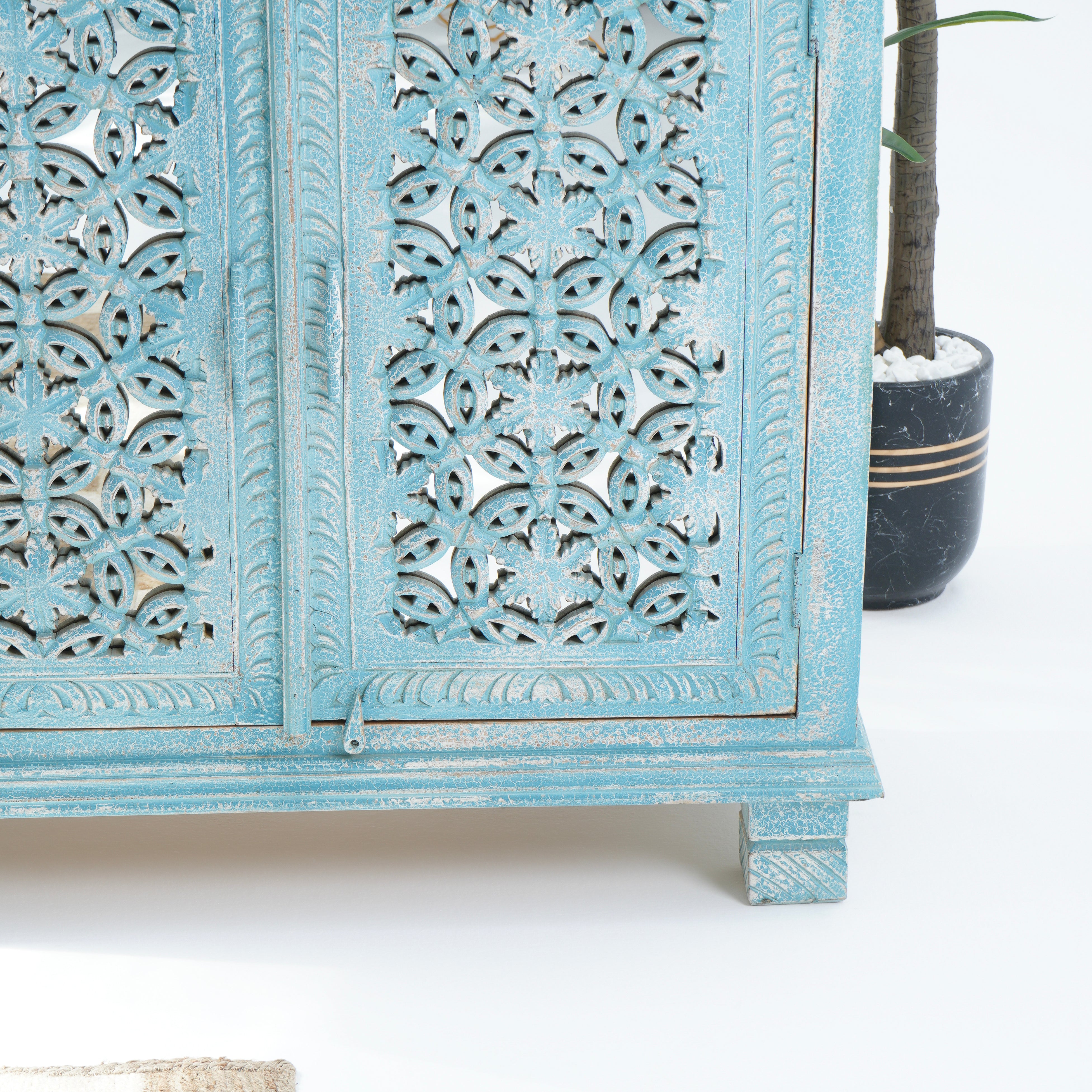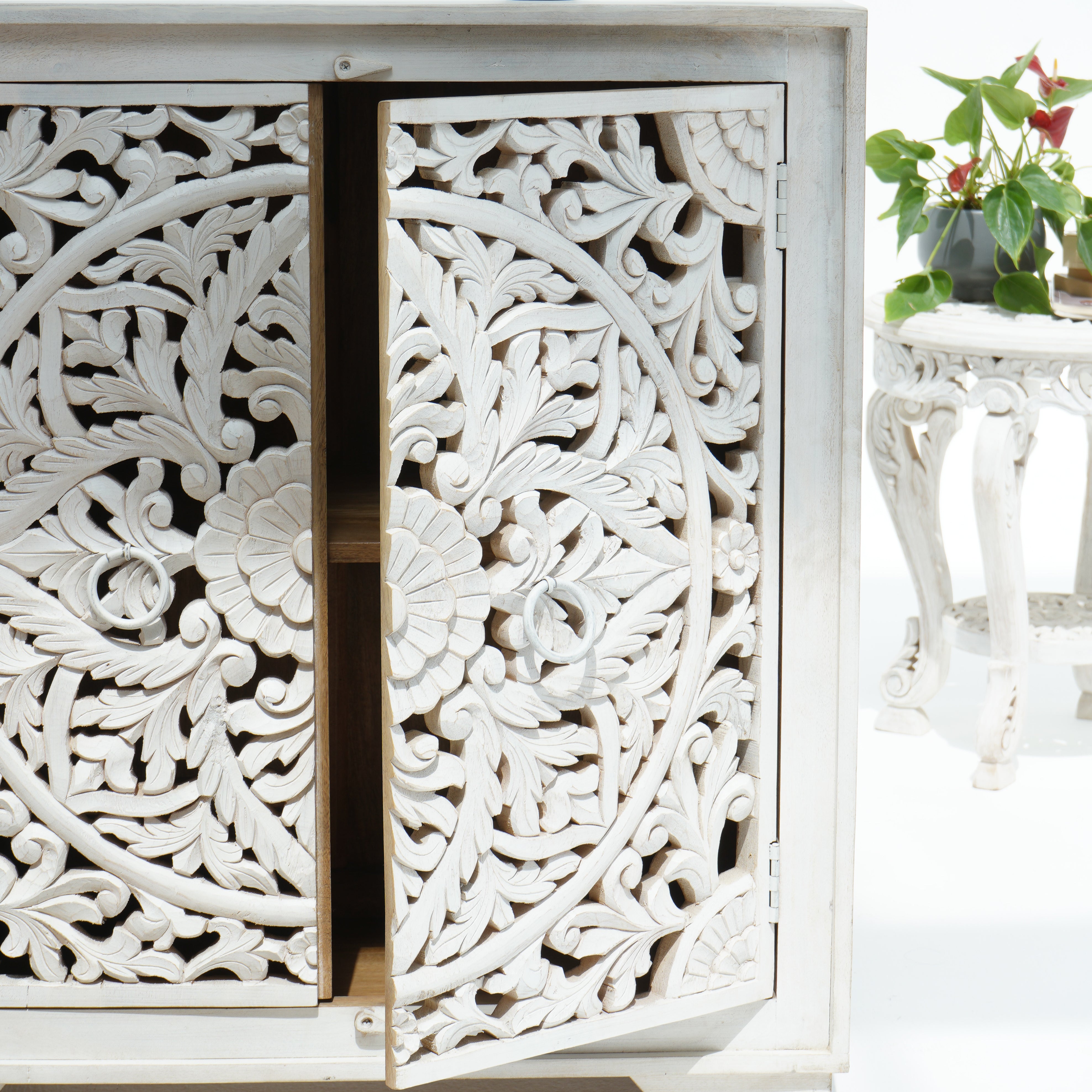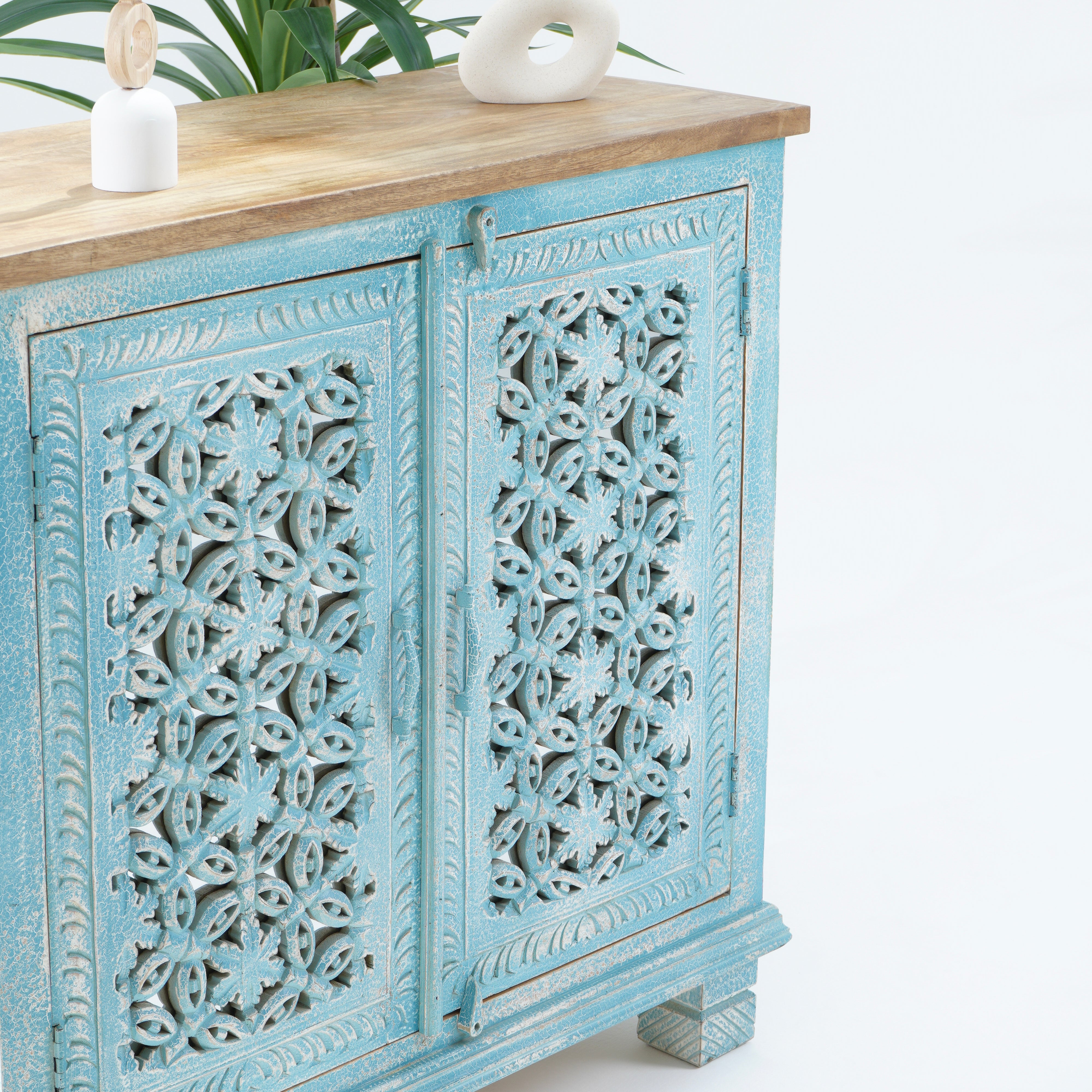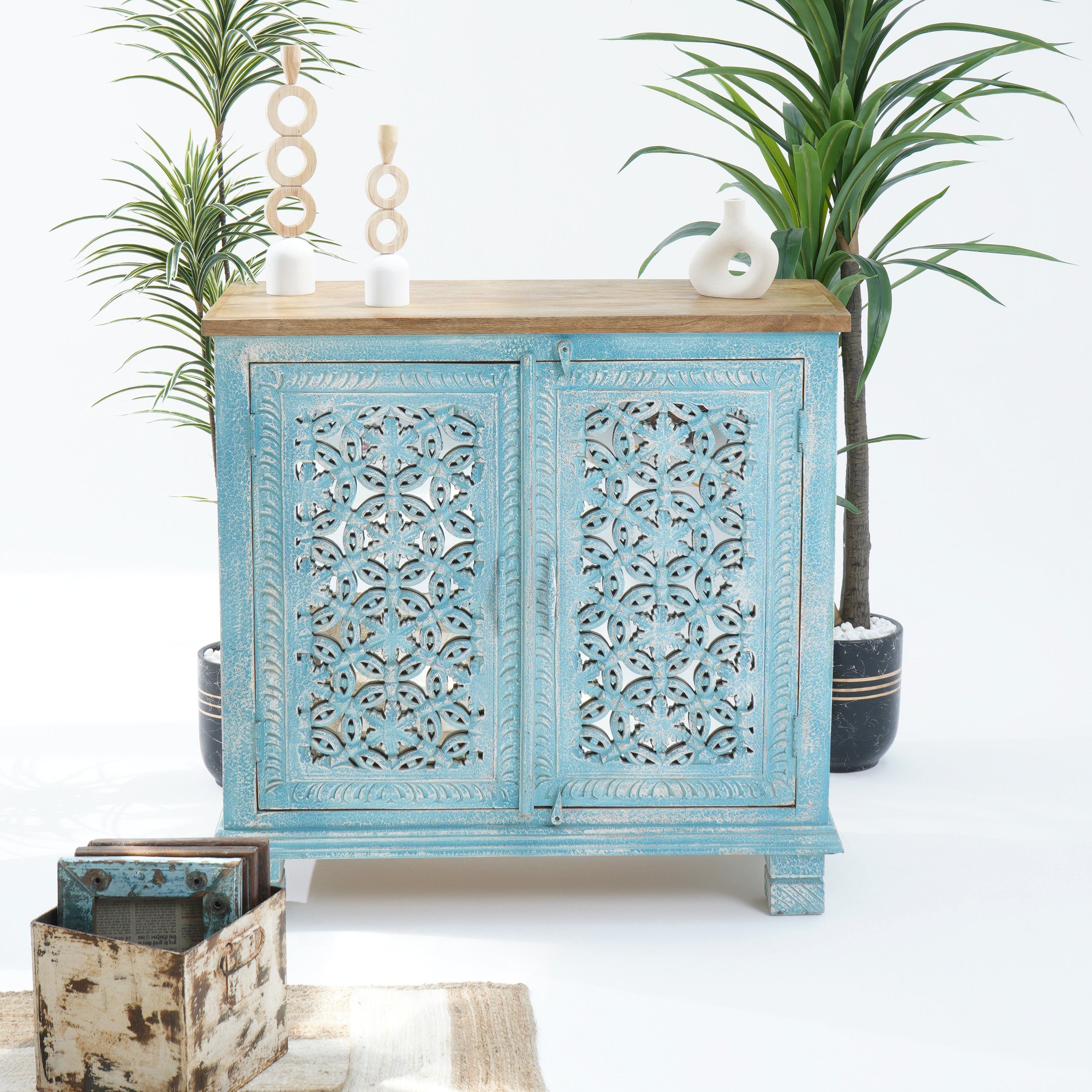 بوفيه وخزانة جانبية خشبية منحوتة يدويًا - خشب المانجو والأكاسيا