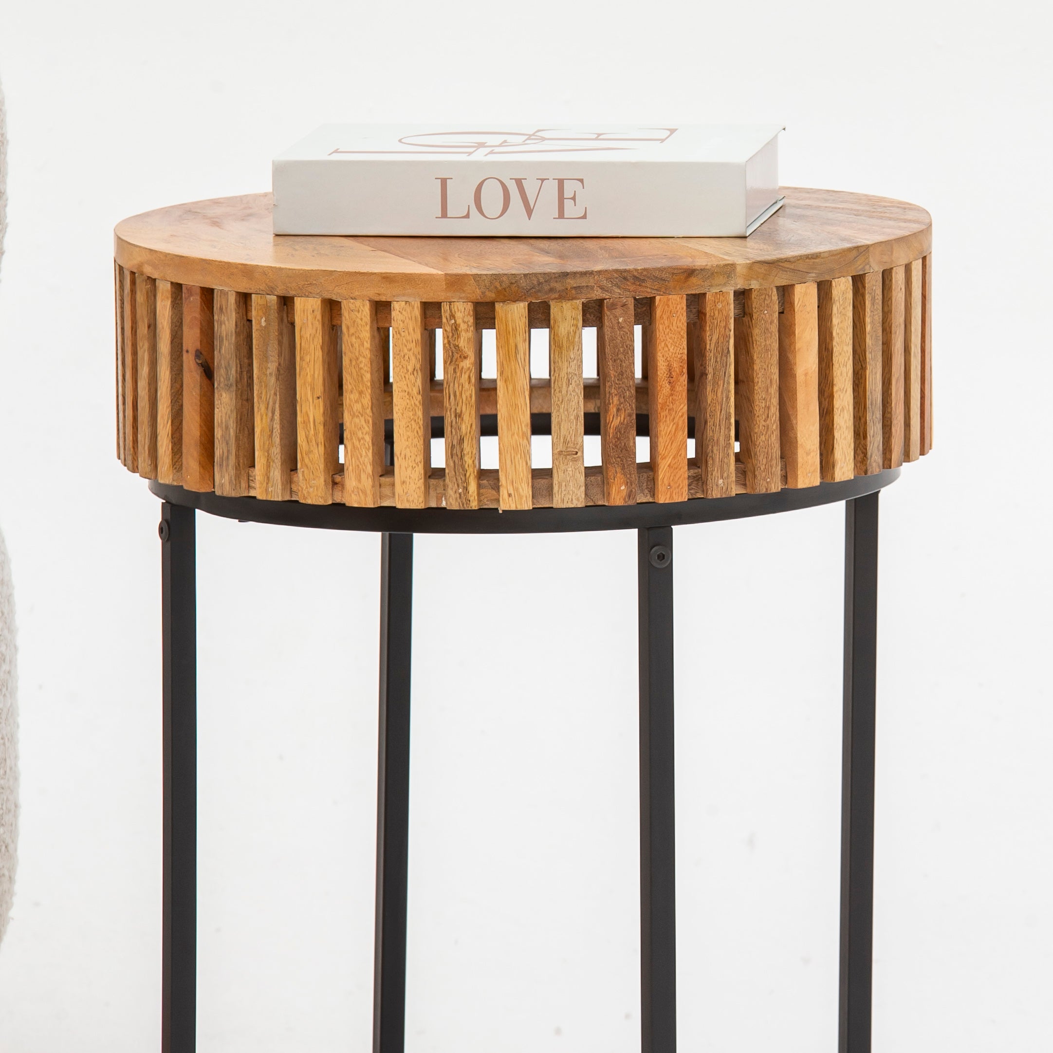MONTERA WOODEN ROUND SIDETABLE WITH METAL LEGS
