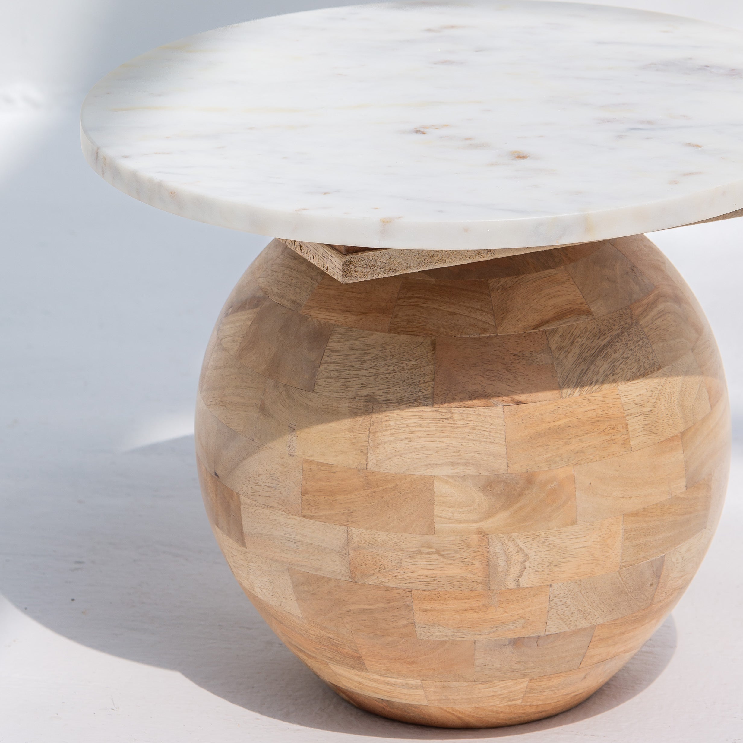 تجمع طاولة TERRALUXE الجانبية المستديرة المصنوعة من الرخام بين الأناقة الطبيعية والحرفية الاستثنائية. صُنعت هذه القطعة يدويًا من خشب المانجو الصلب الفاخر، وتتميز بسطح رخامي مستدير وقاعدة متناسقة تُضفي لمسة جمالية راقية على أي غرفة. تُكمل درجات لون الخشب الدافئة والطبيعية جاذبية الرخام الخالدة، مما يجعلها طاولة مثالية لغرف المعيشة أو غرف النوم أو المداخل. صُممت هذه الطاولة لتدوم طويلًا بفضل هيكلها المصنوع من الخشب الصلب، حيث تمزج بسلاسة بين المواد الطبيعية والتصميم الراقي، لتوفر في آن واحد وظائف عملية وفخامة بسيطة تُناسب أصحاب الذوق الرفيع.
