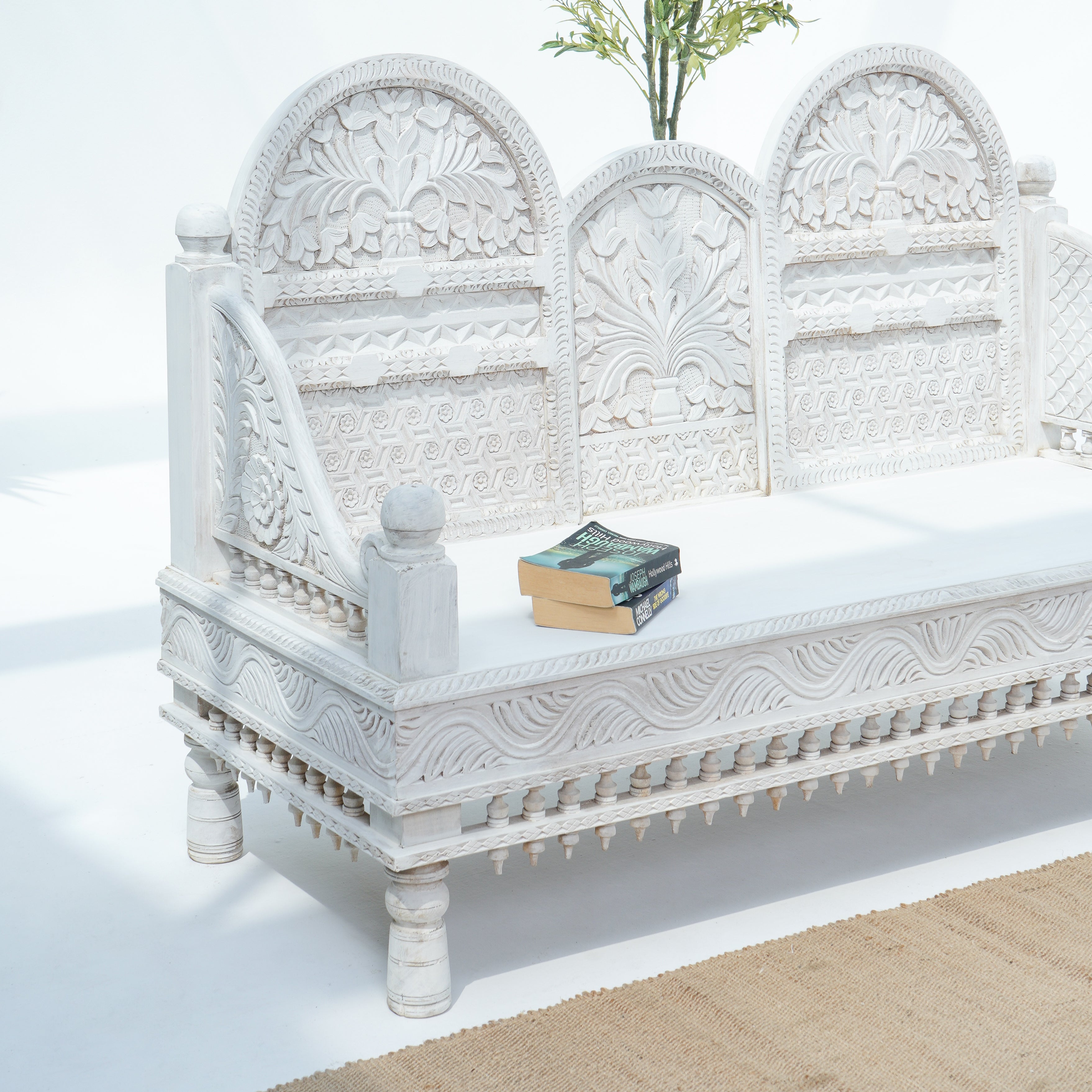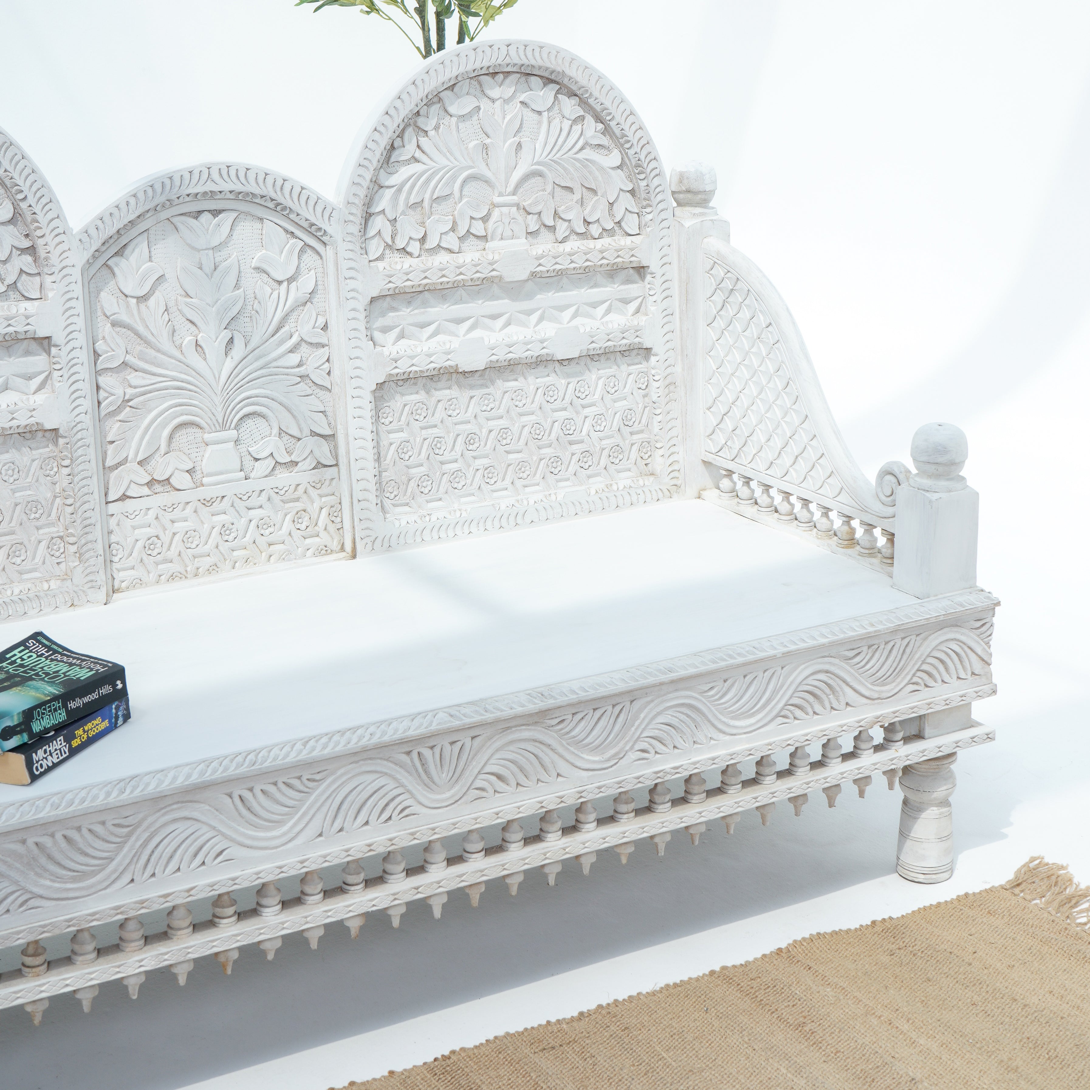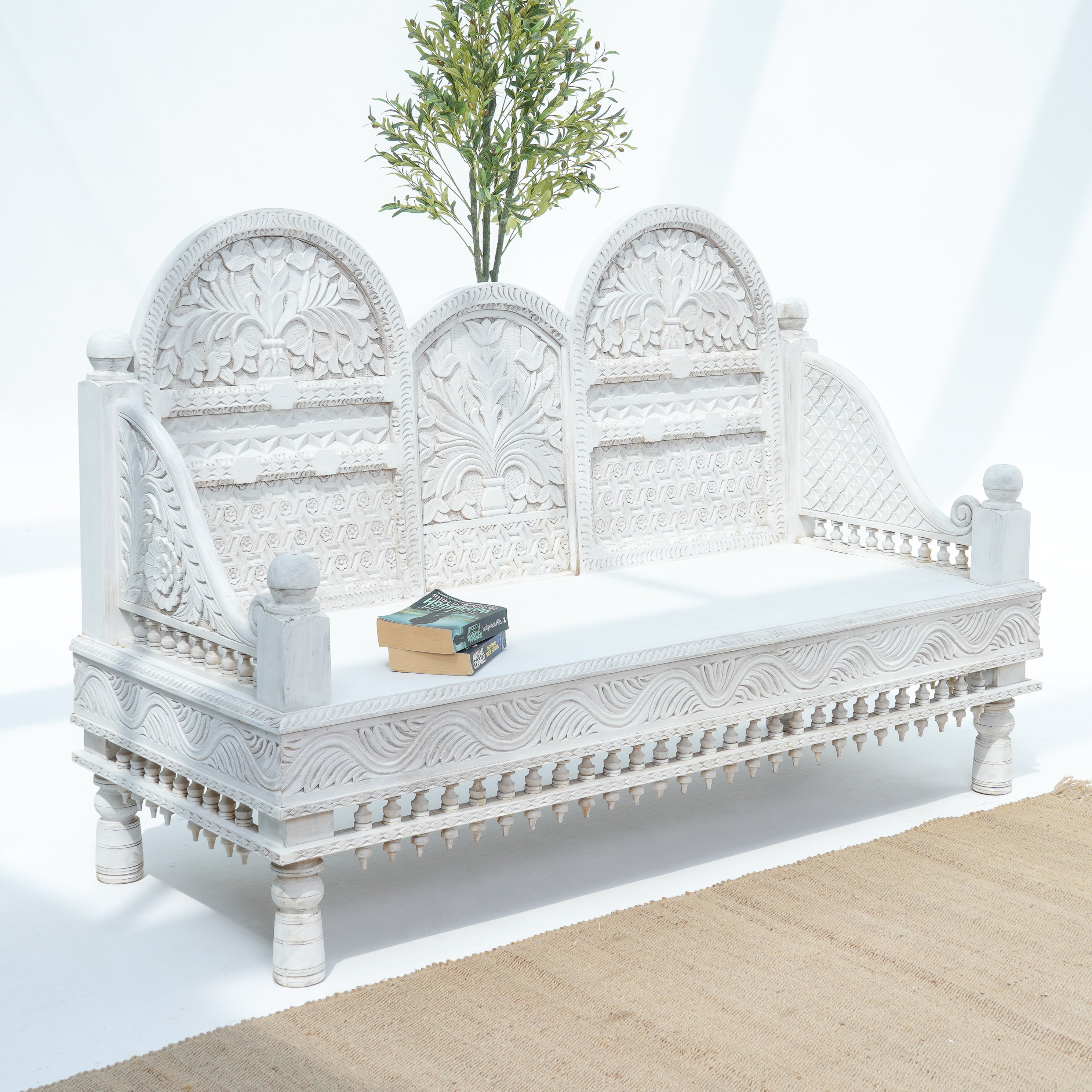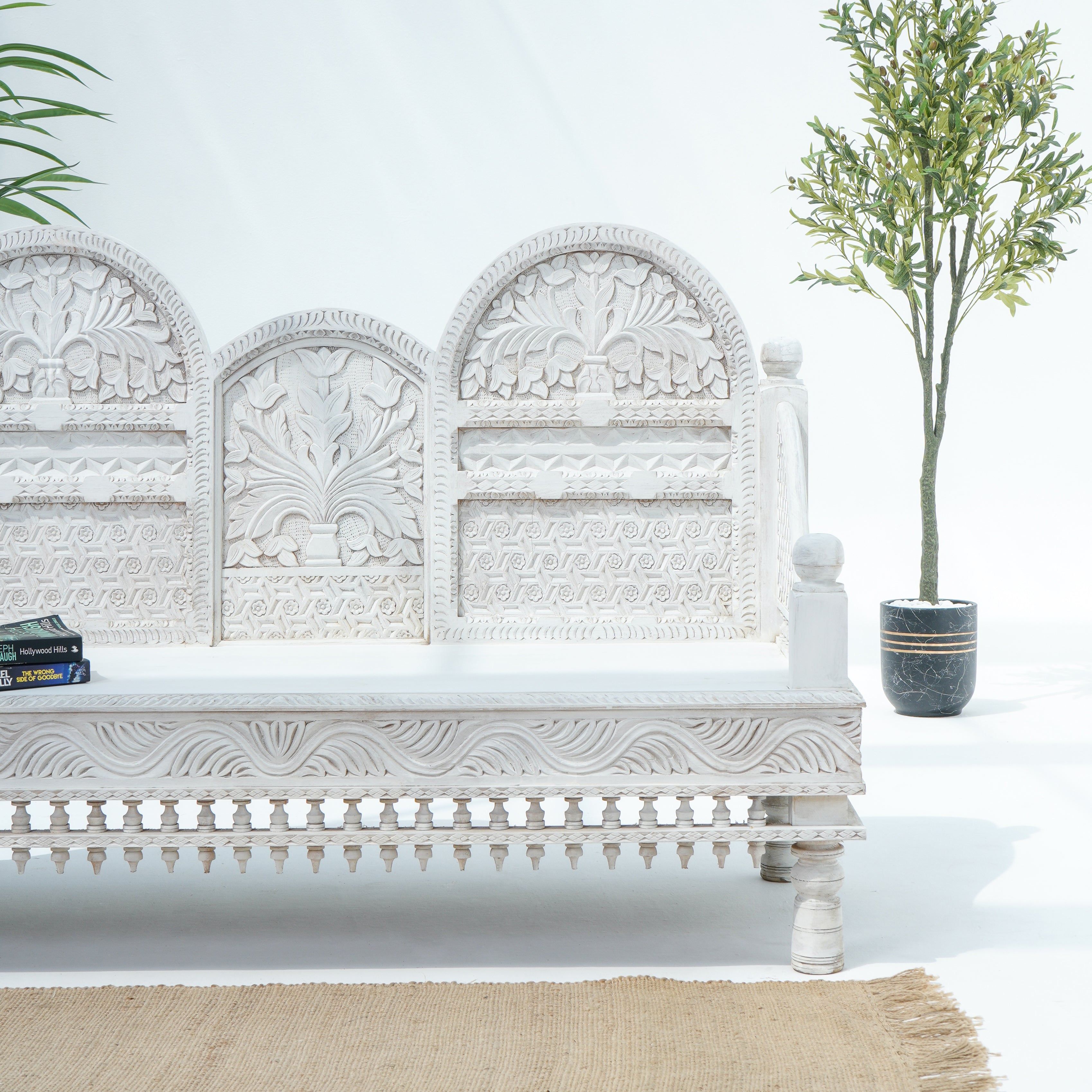 أضف لمسة من الفخامة إلى مساحتك مع أريكة "مهراجا" الخشبية المنحوتة. تتميز هذه القطعة الأنيقة بمساحة جلوس واسعة وتصميم خالد. مثالية لأي نمط ديكور. ضمان لمدة عام، صنع في الهند. اختر أثاثنا الفني والحرفي لجمال يدوم.