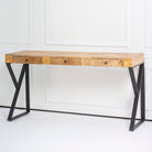 طاولة كونسول برلين لوفت، المصنوعة يدويًا من خشب المانجو الفاخر، تضفي لمسة حرفية أصيلة على أي مساحة. توفر أدراجها الواسعة (اثنان أو ثلاثة) مساحة تخزين عملية، بينما يُبرز إطارها الخشبي المتين أنماطًا طبيعية فريدة من نوعها في الحرف اليدوية الهندية. تُعد هذه القطعة مثالية للمداخل وغرف المعيشة والمكاتب المنزلية، فهي تجمع بين التصميم العملي ودفء فن النجارة التقليدي. إضافة خالدة تُجسد براعة الحرفيين واستخدامهم للمواد المستدامة.