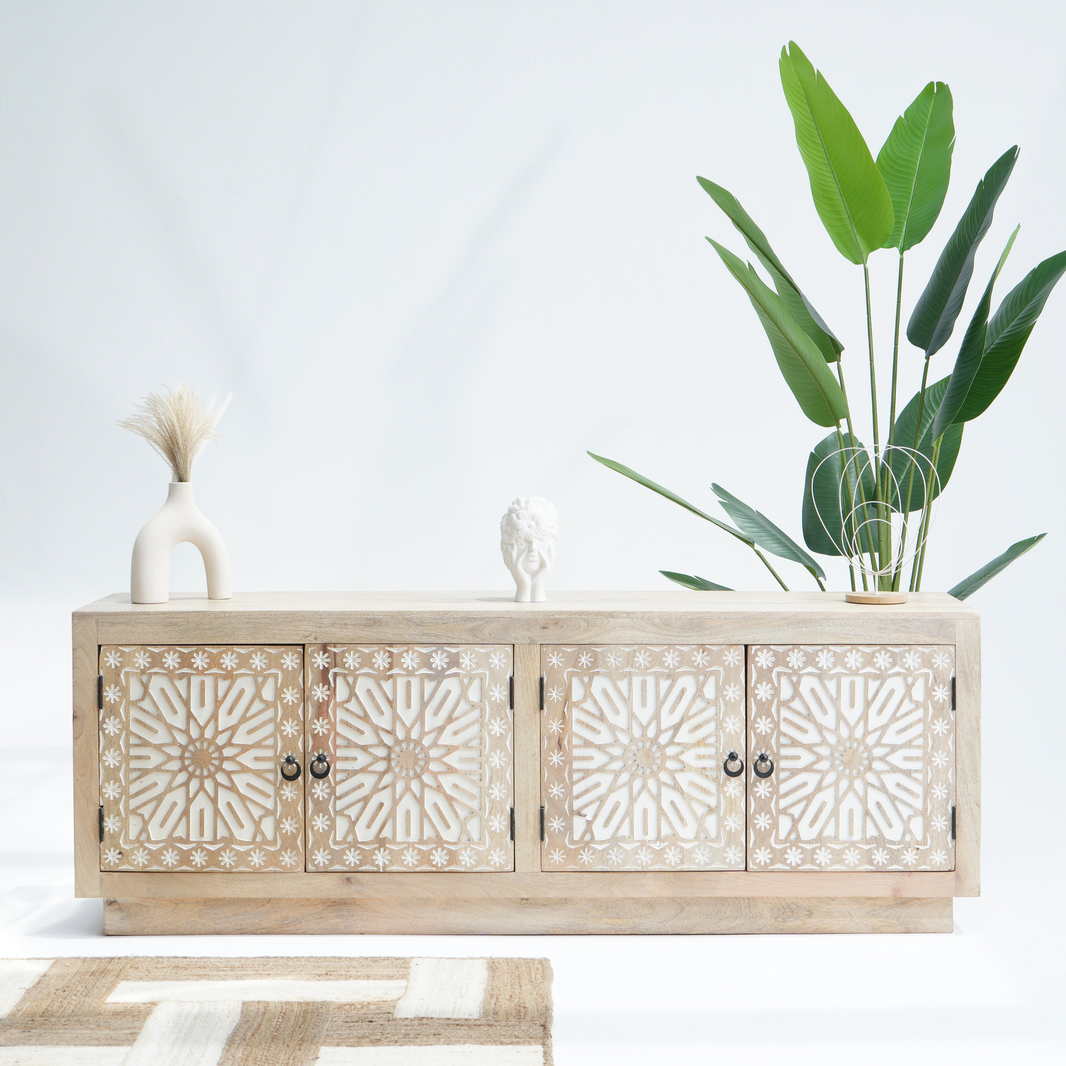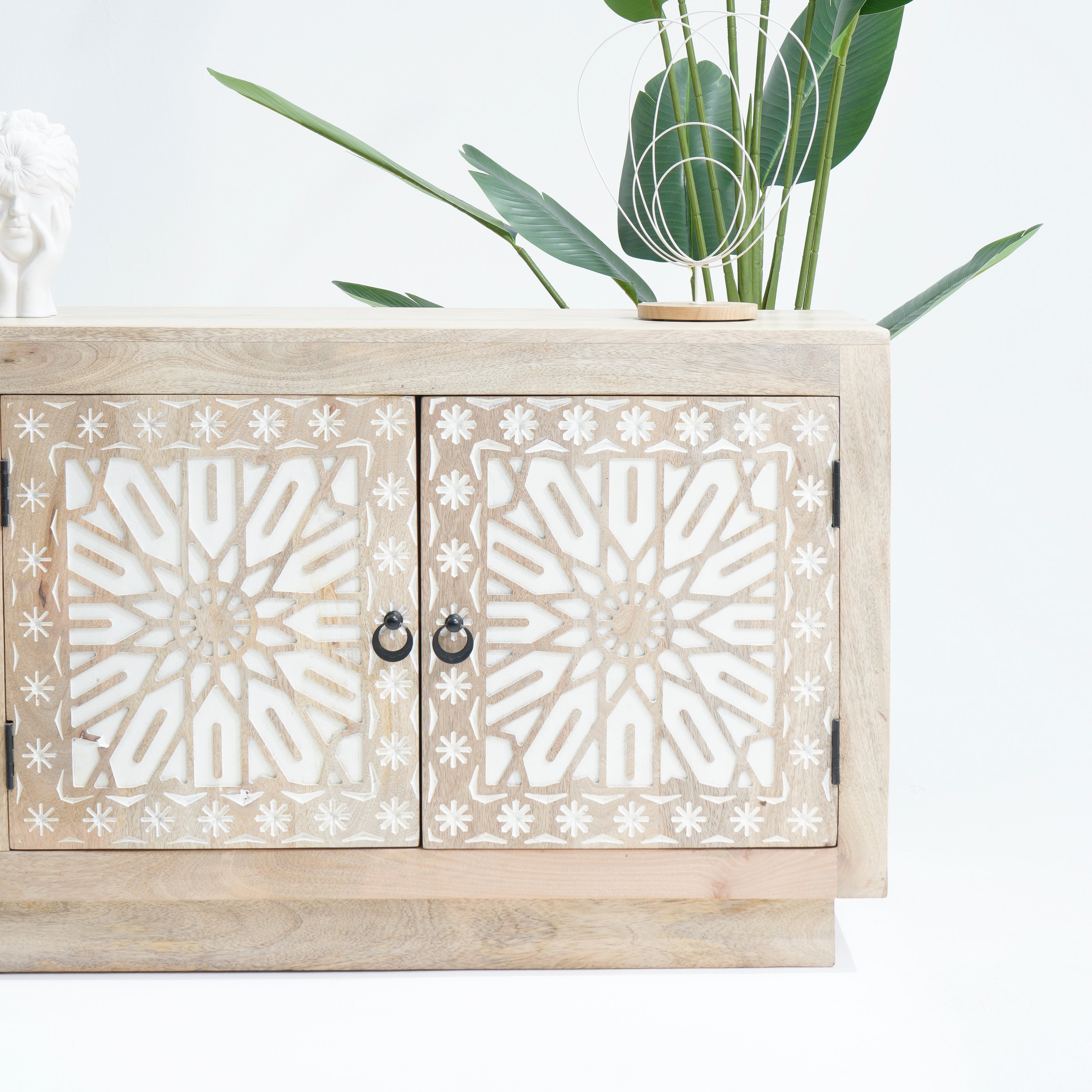 نقدم لكم حامل التلفزيون العاجي بتصميم CNC، الذي يجمع بين الأناقة والعملية. يتميز بأربعة أبواب مزينة بتفاصيل CNC دقيقة، مما يوفر مساحة تخزين واسعة لأجهزة الوسائط المتعددة وغيرها. صُنع هذا الحامل بعناية فائقة بالتفاصيل، ويضمن تصميمه الأنيق وبنيته المتينة استدامته وجماله. سواءً في غرفة معيشة عصرية أو كلاسيكية، يُضفي حامل التلفزيون العاجي بتصميم CNC لمسةً راقية على ديكور منزلك. ارتقِ بمساحة الترفيه الخاصة بك اليوم مع حامل التلفزيون العاجي بتصميم CNC ذي الطابع الخالد.