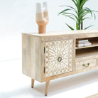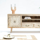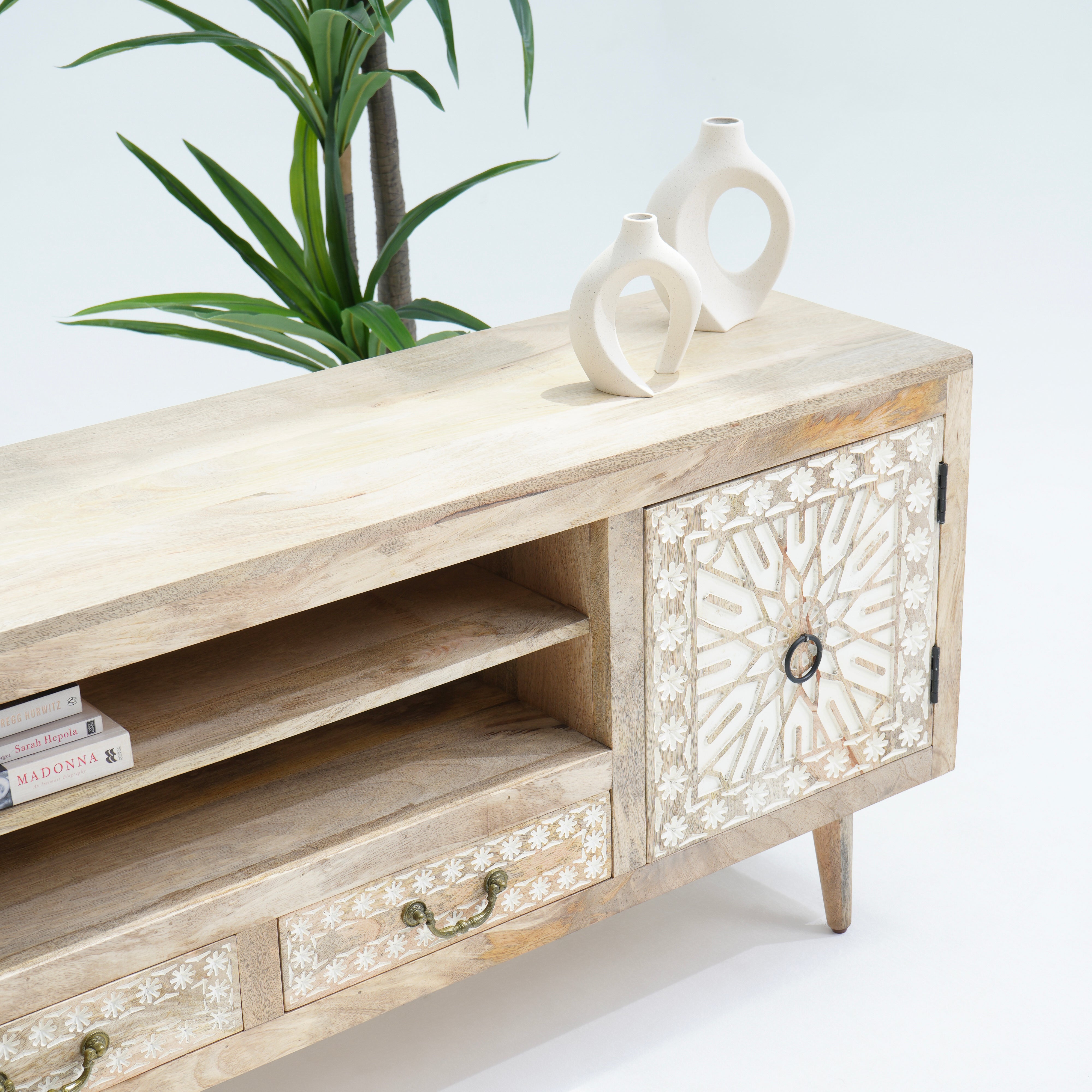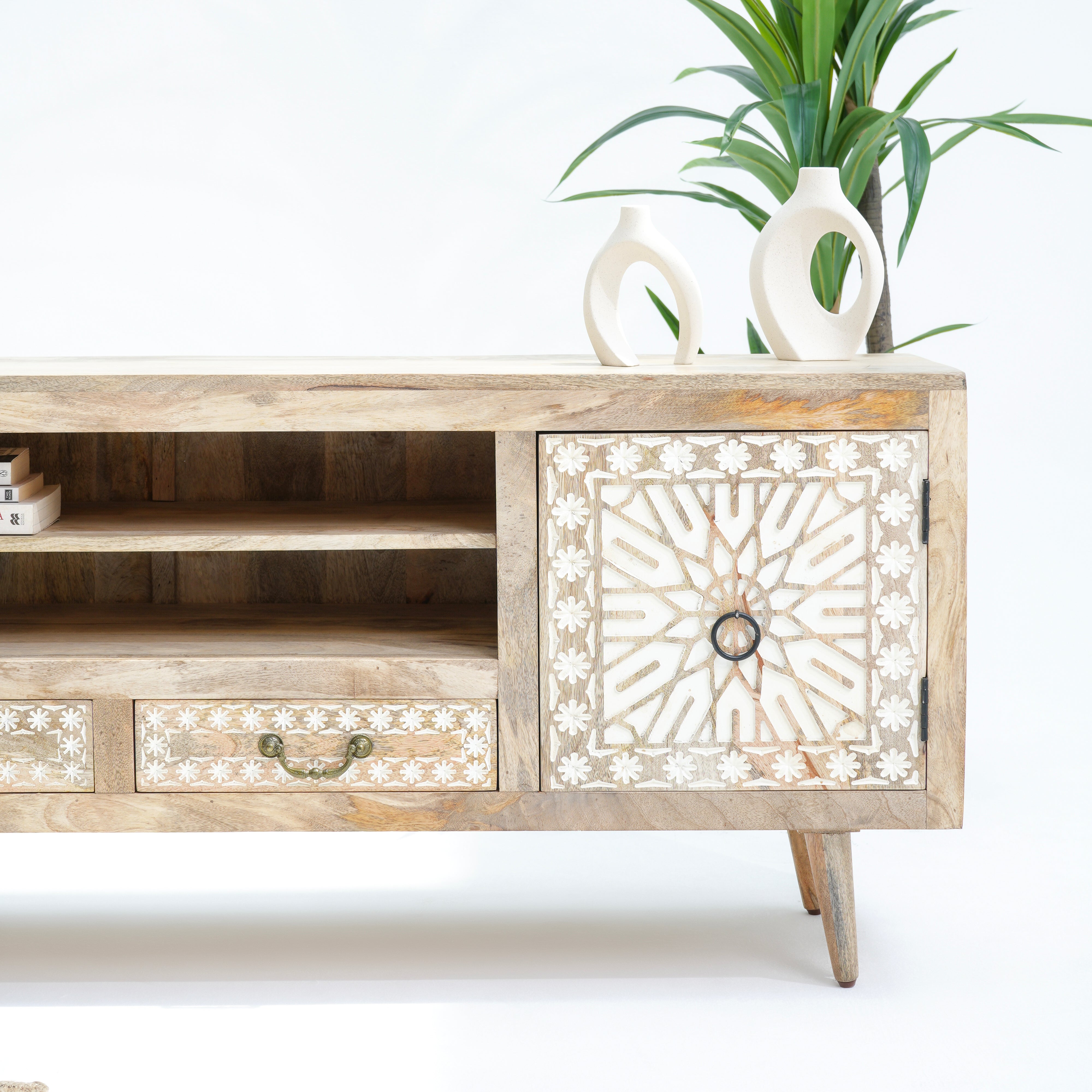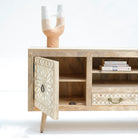 حامل تلفزيون بتصميم عاجي بتقنية CNC، ببابين ودرجين