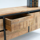 اكتشف حامل التلفزيون ستيلوود ذو الأدراج الأربعة والبابين، الذي يجمع بين الأناقة والعملية. صُنع بدقة متناهية من مواد متينة، ويتميز بمساحة تخزين واسعة لأجهزة الوسائط المتعددة وقطع الديكور. يضفي تصميمه الأنيق ولمسته النهائية الفاخرة لمسة عصرية أنيقة على أي غرفة. مثالي لأجهزة التلفزيون بمختلف أحجامها، فهو يضمن لك تجربة مشاهدة مميزة مع الحفاظ على ترتيب مساحتك. ارتقِ بغرفة معيشتك مع حامل التلفزيون متعدد الاستخدامات هذا الذي يجمع بين الأناقة والعملية بكل سهولة.