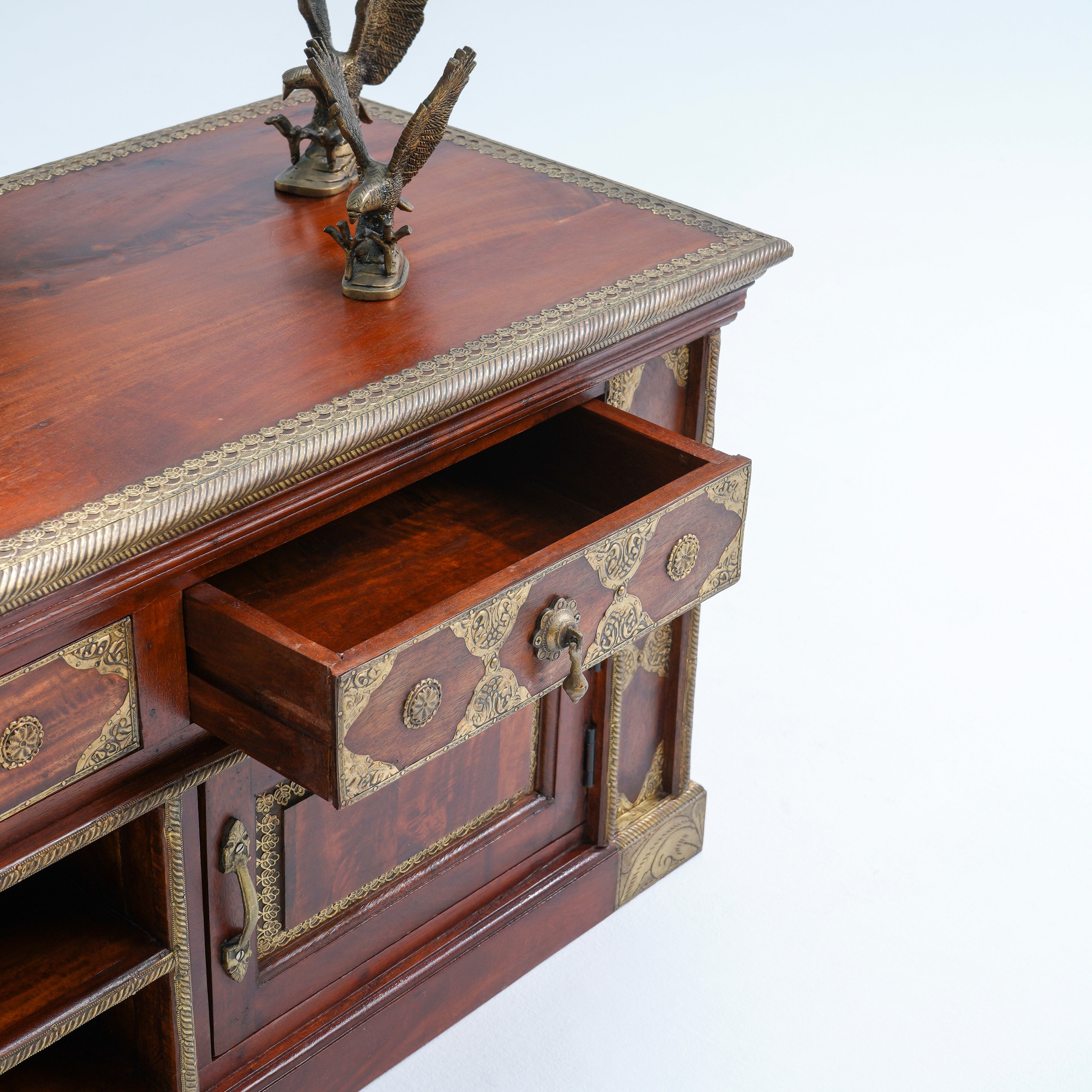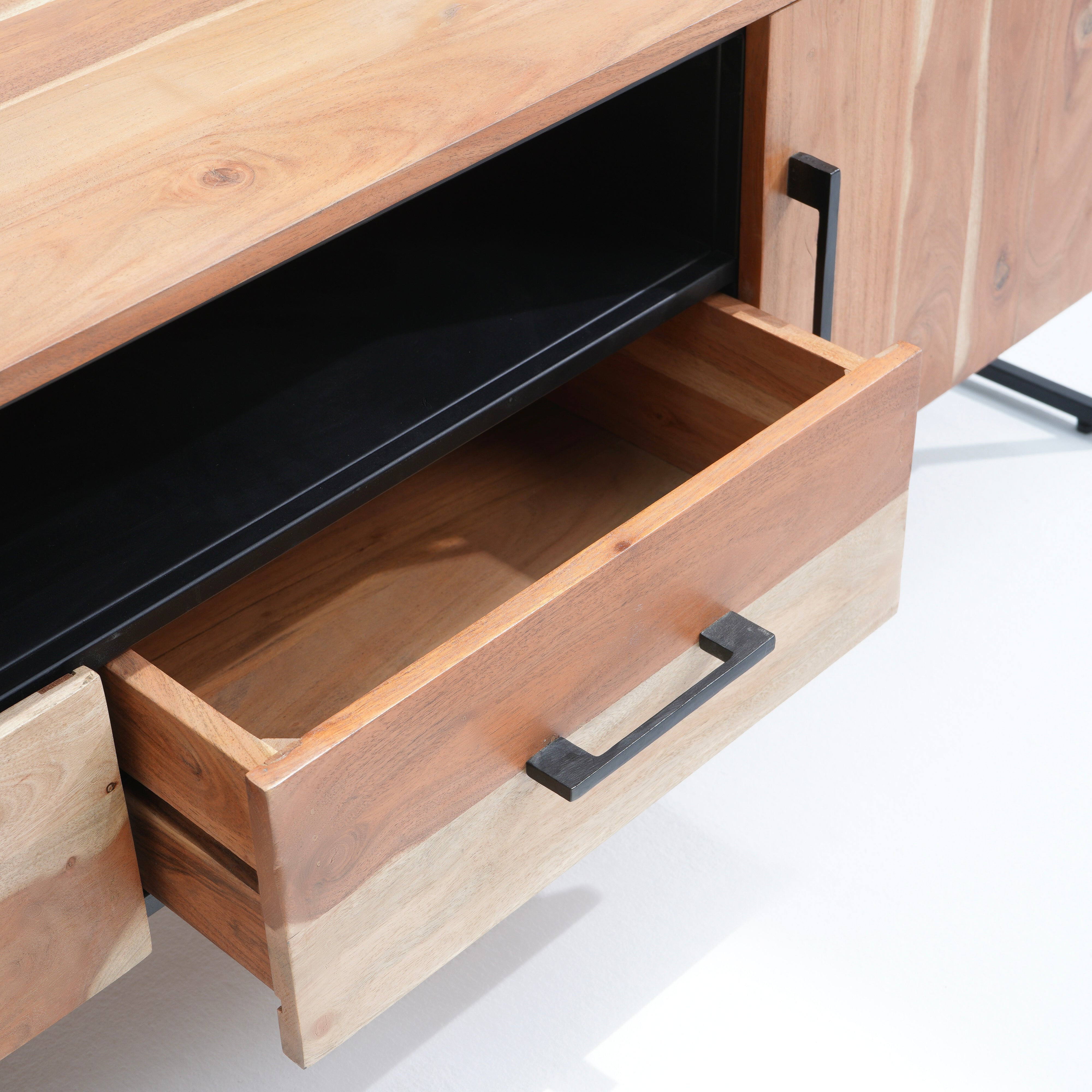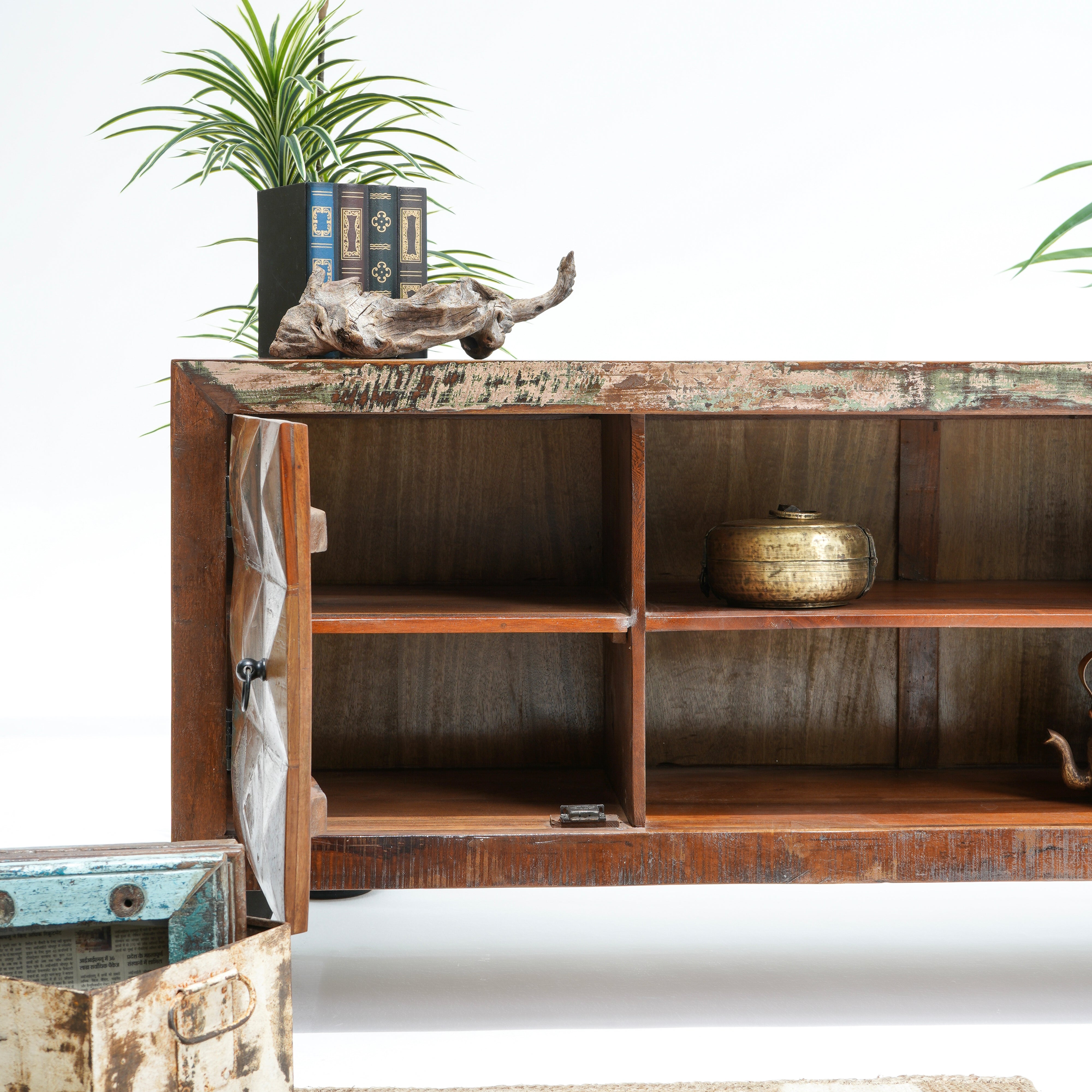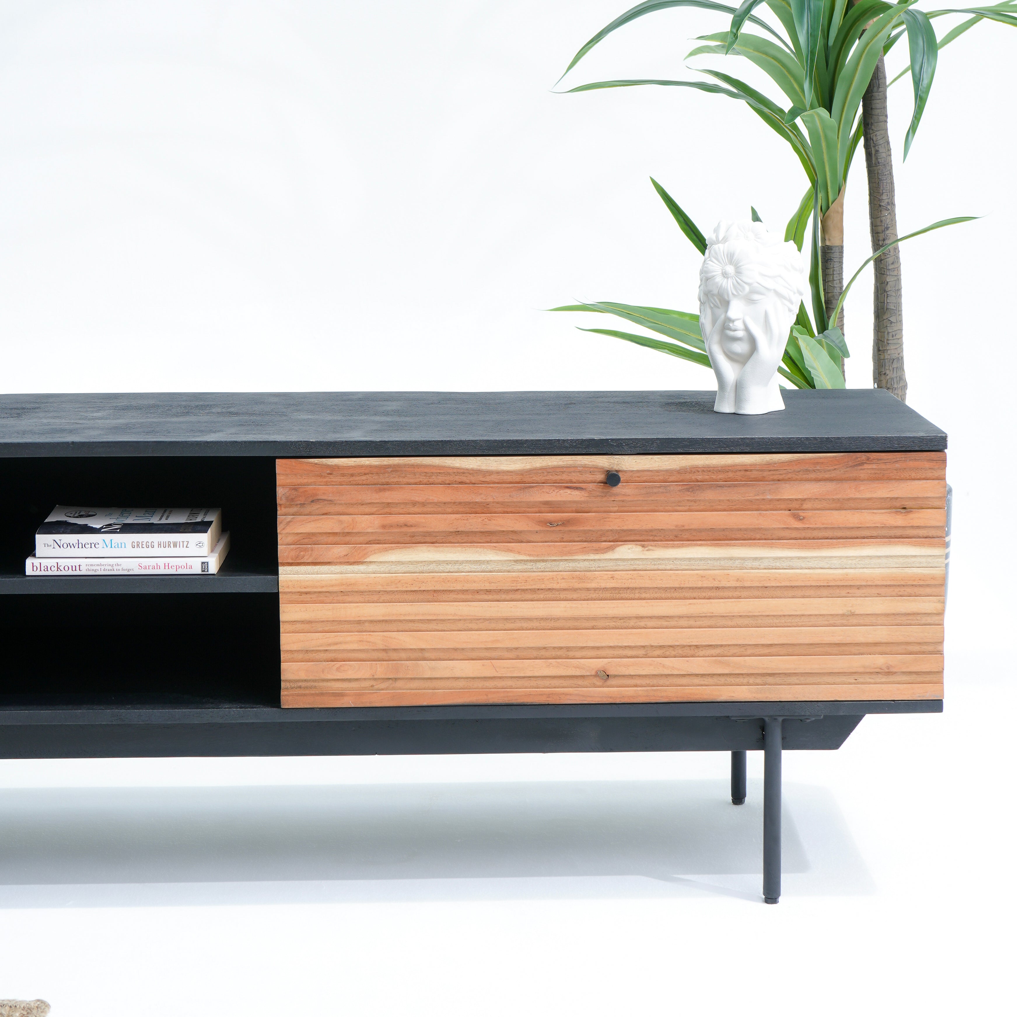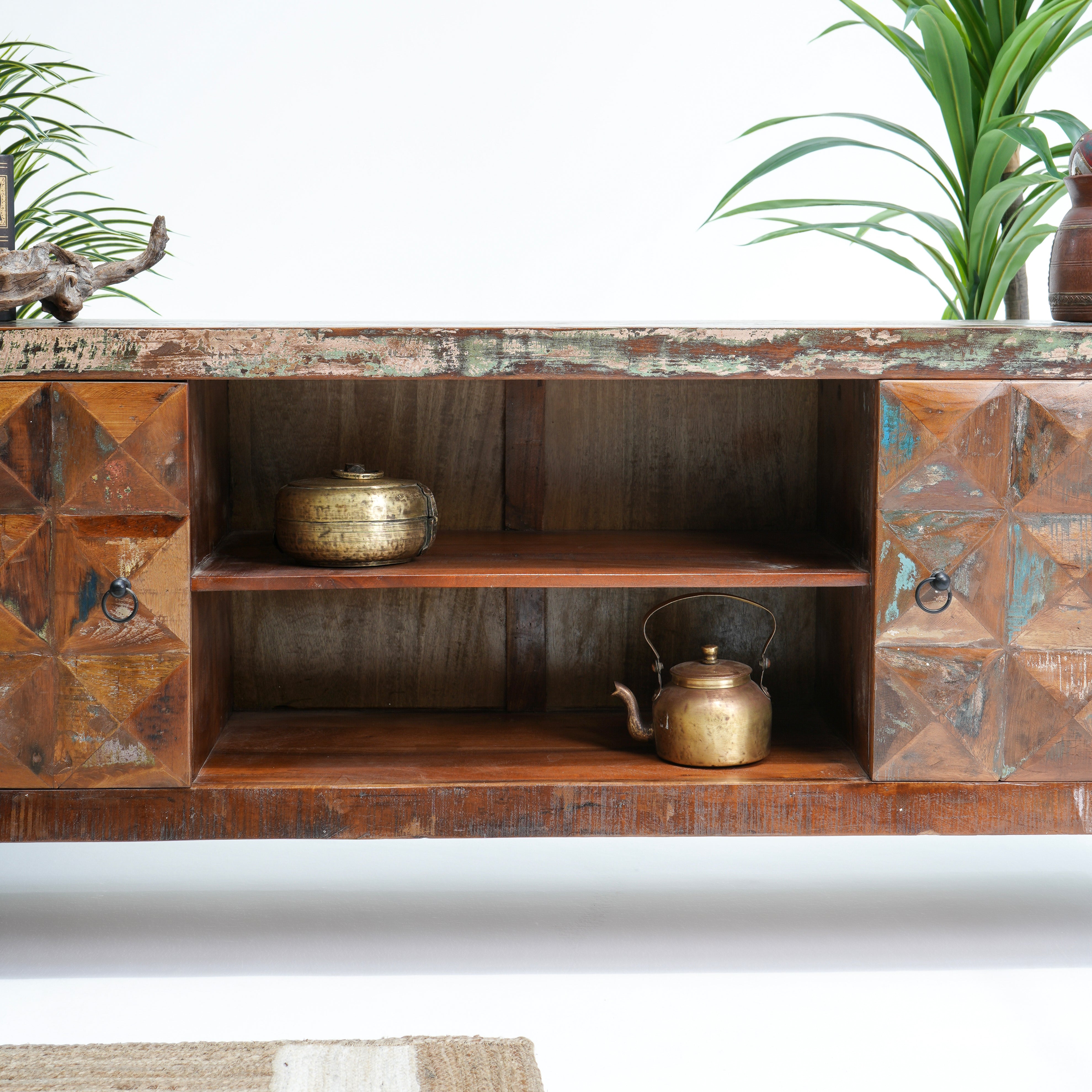 تتميز وحدات الوسائط هذه، المصنوعة من أخشاب صلبة فاخرة ومتينة مثل خشب الشيشم أو المانجو أو الساج، بما يلي: