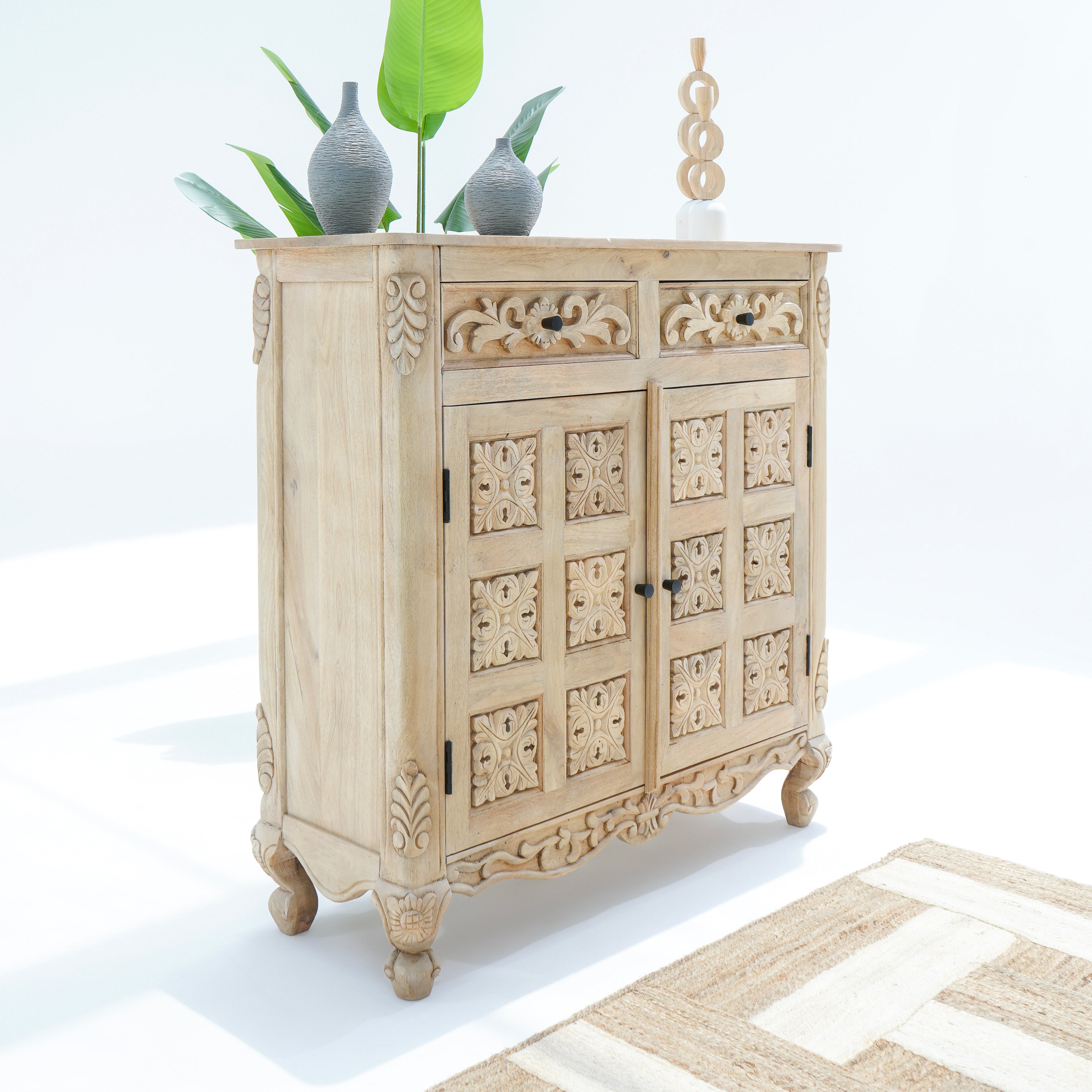 تُقدّم خزانة أليس الجانبية ذات البابين والدرجين حلاً عملياً وأنيقاً للتخزين في غرفة المعيشة أو غرفة الطعام. يساعد تصميمها الداخلي الواسع على تنظيم أغراضك الأساسية وسهولة الوصول إليها، بينما يُكمّل تصميمها البسيط أنماط الديكور المختلفة. تتميز هذه الخزانة الجانبية بالمتانة والعملية، فهي تلبي احتياجاتك اليومية بتصميمها الأنيق ووظائفها العملية.