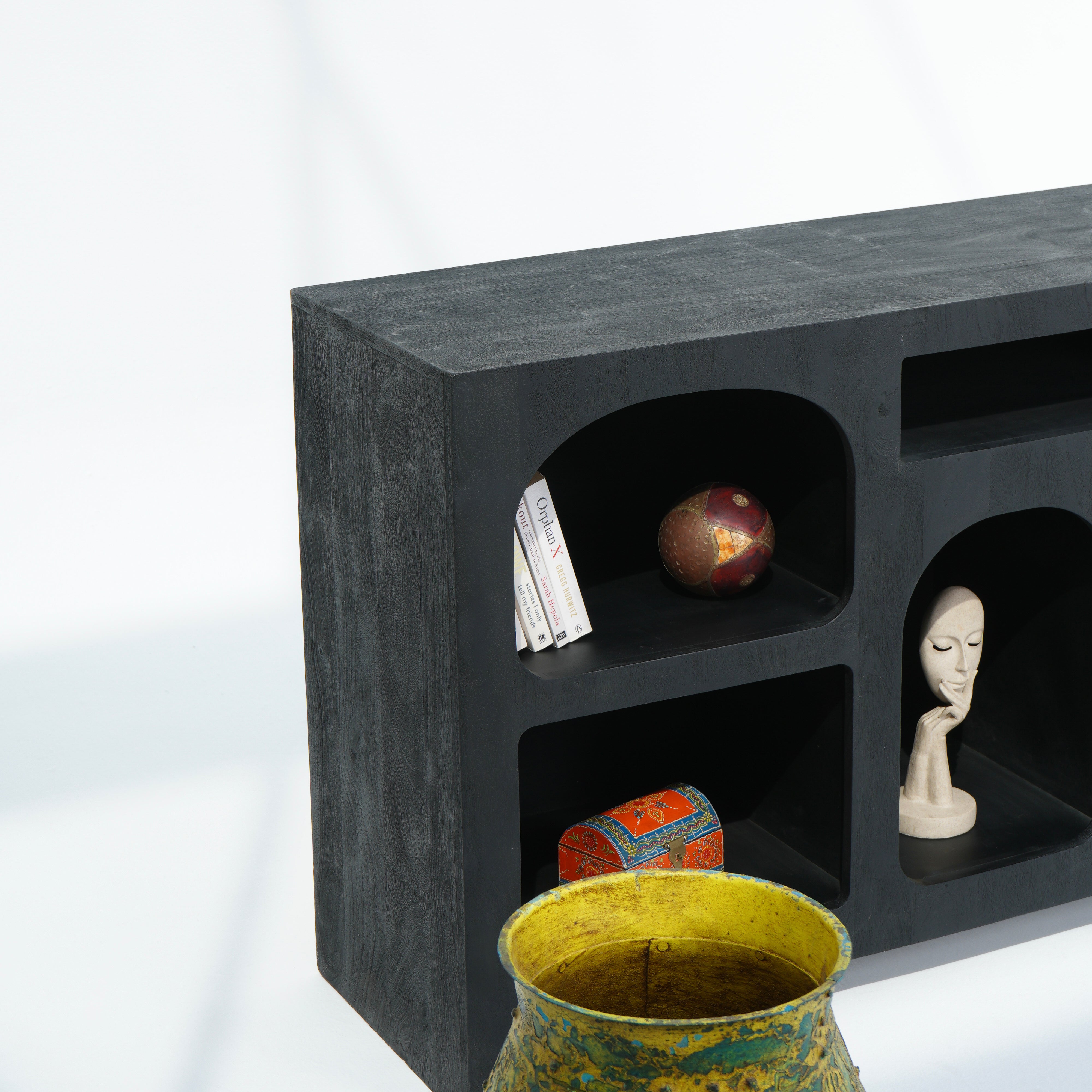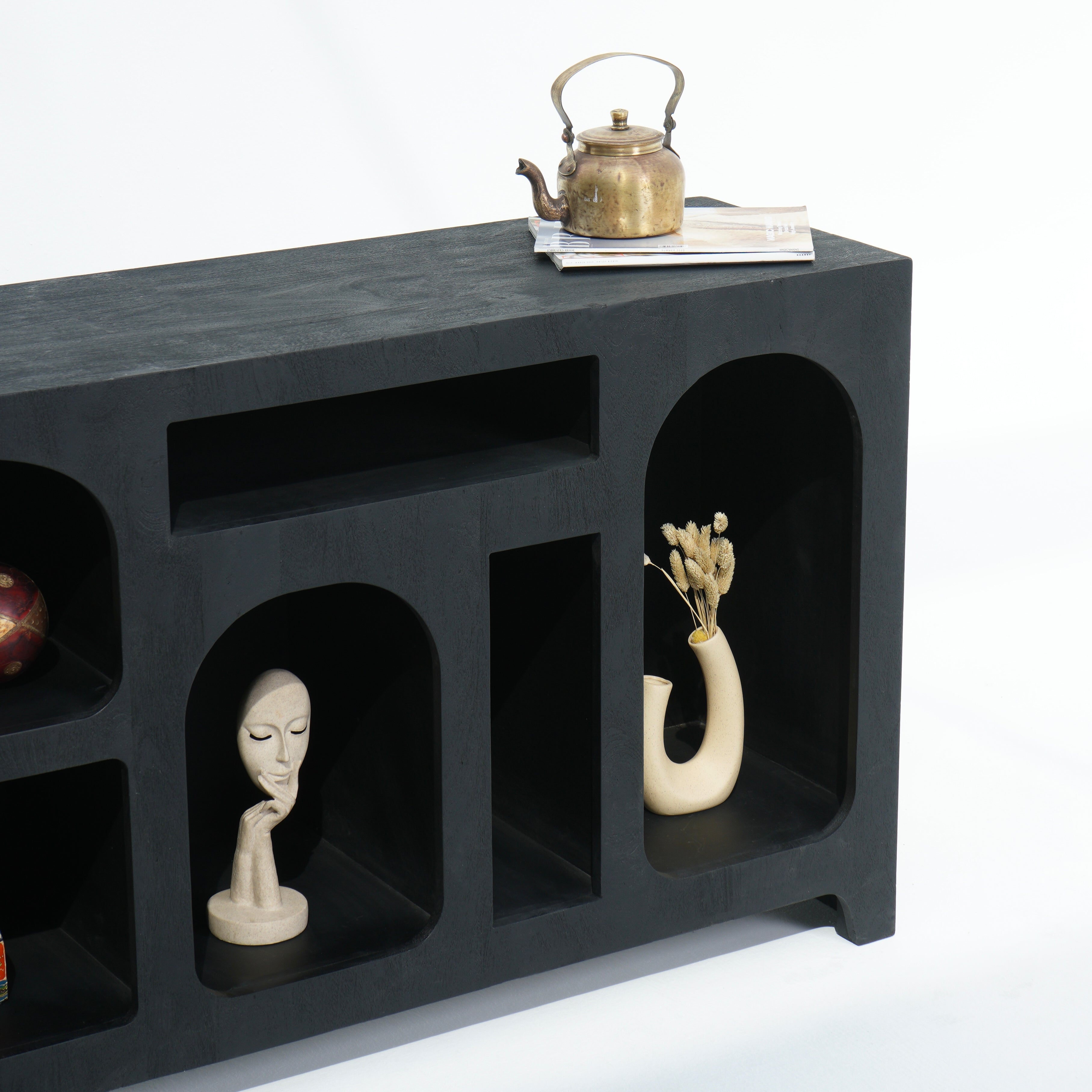 خزانة جانبية سوداء مفتوحة على شكل قوس