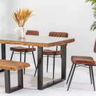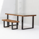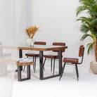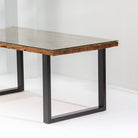 طاولة طعام مصنوعة من خشب السكك الحديدية