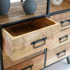 تجمع هذه القطعة متعددة الاستخدامات بين الأناقة الكلاسيكية والوظائف العصرية، وتتميز بستة أدراج واسعة للتخزين المخفي ورفوف مفتوحة لعرض الديكور، مما يجعلها إضافة أنيقة لأي غرفة.