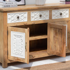نقدم لكم خزانة بوشكار الخشبية المنحوتة، وهي حل تخزين متقن الصنع يمزج بسلاسة بين الفن التقليدي والتصميم العملي. مصنوعة يدويًا في الهند من خشب المانجو الصلب الفاخر، تتميز هذه الخزانة بنقوش خشبية دقيقة تُظهر براعة حرفية استثنائية. يوفر تصميمها بأربعة أبواب وأربعة أدراج مساحة تخزين واسعة لأدوات الطعام الأساسية، والبياضات، أو قطع الديكور. متوفرة بتشطيب أنيق باللونين الطبيعي والأبيض، لتتناسب مع الديكورات الداخلية العصرية والتقليدية على حد سواء. صُممت هذه القطعة الخشبية الصلبة لتدوم طويلًا، لتكون إضافة مميزة لأي غرفة طعام أو معيشة، تضفي عليها طابعًا أصيلًا وجاذبية خالدة.
