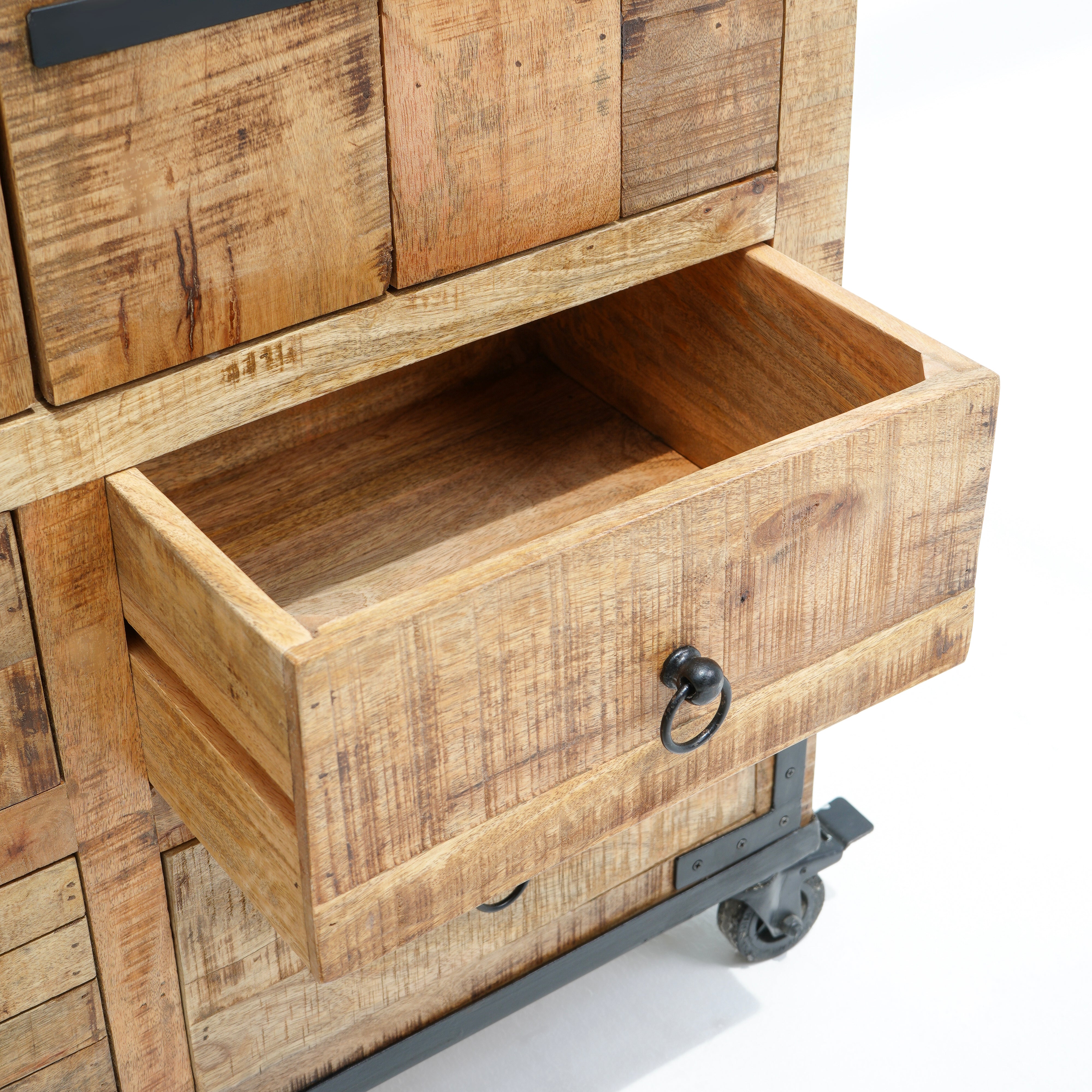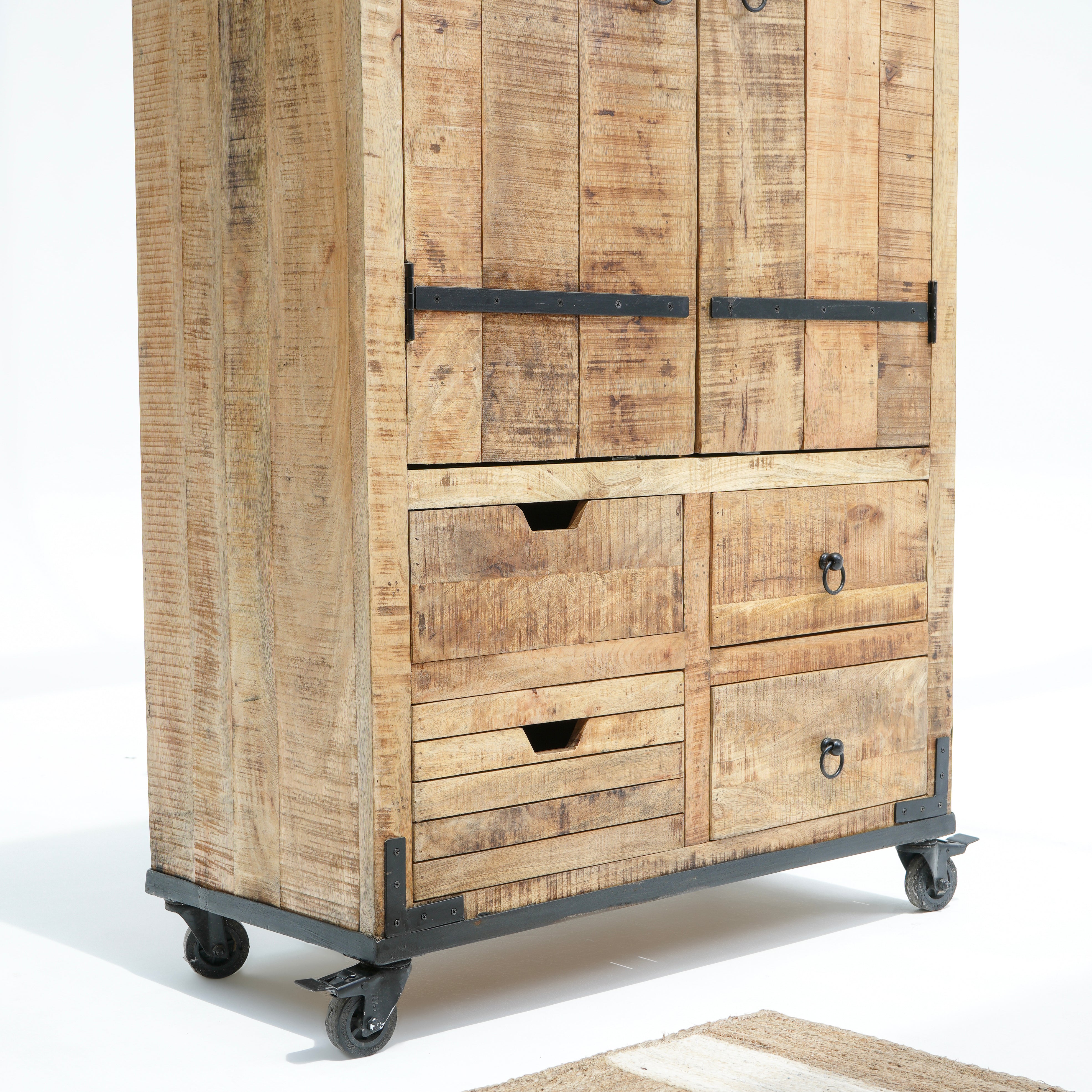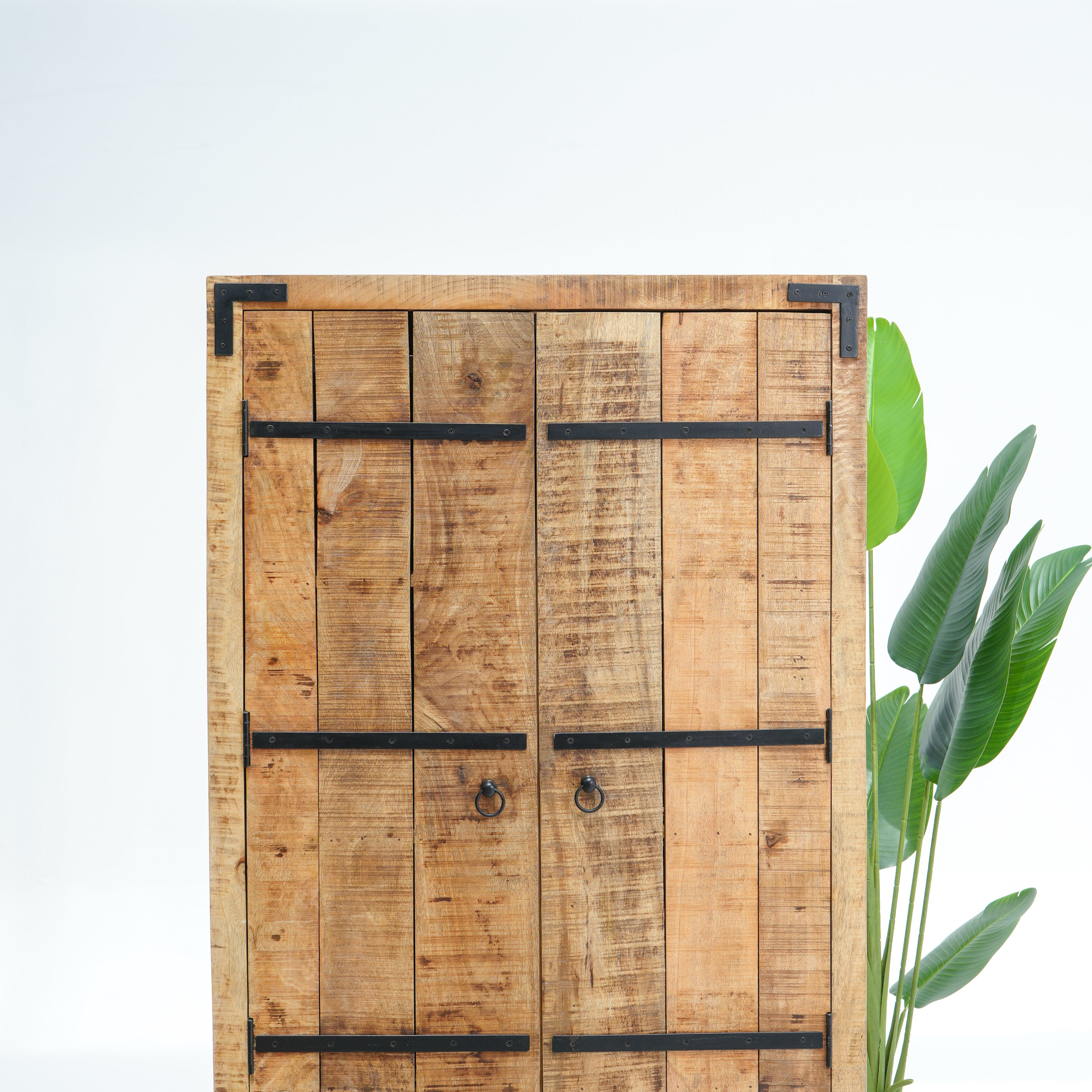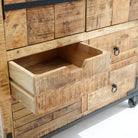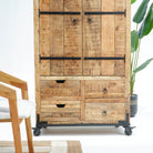 بفضل تشطيبها الخشبي العتيق وتجهيزاتها النحاسية، تُنظم هذه الخزانة المشروبات والأواني الزجاجية بأناقة، مما يجعلها قطعة مميزة للضيافة.