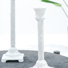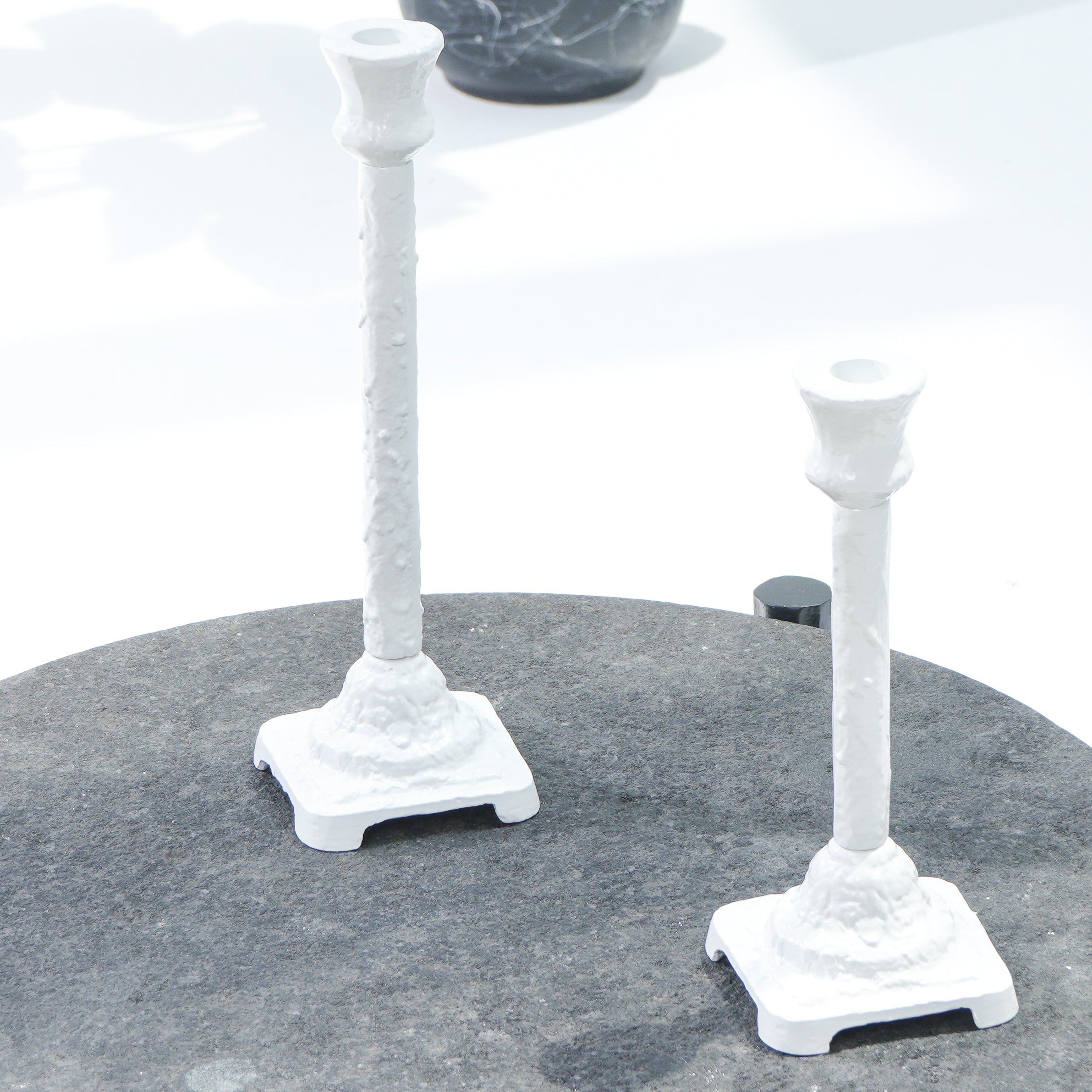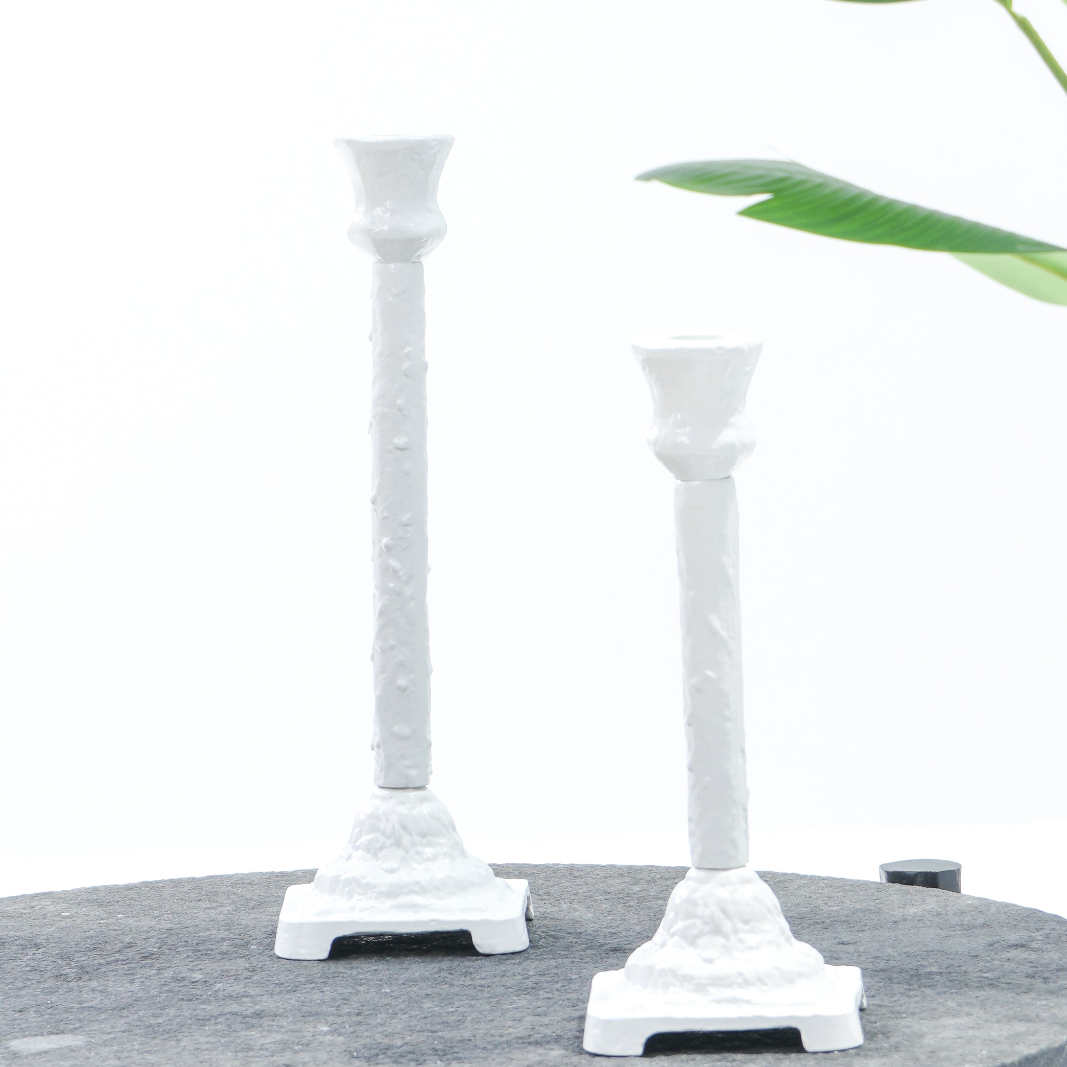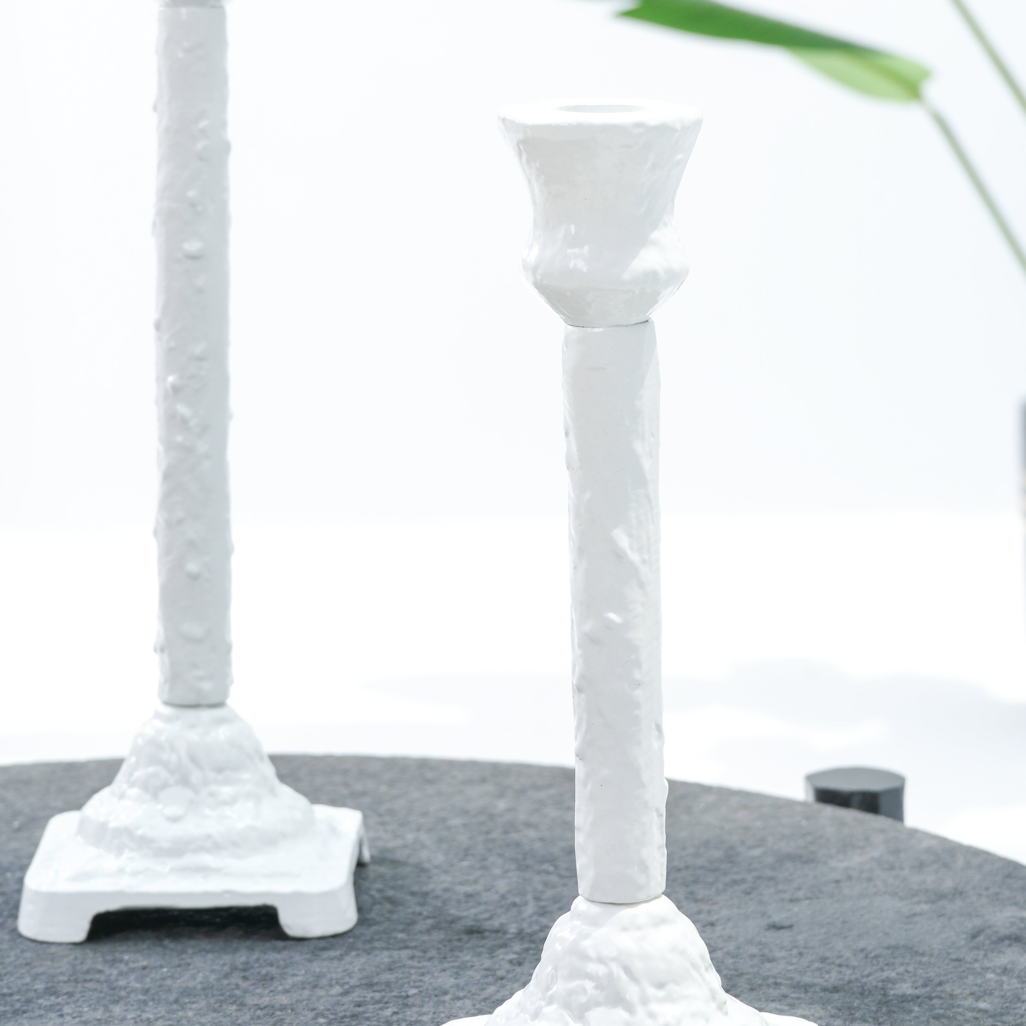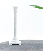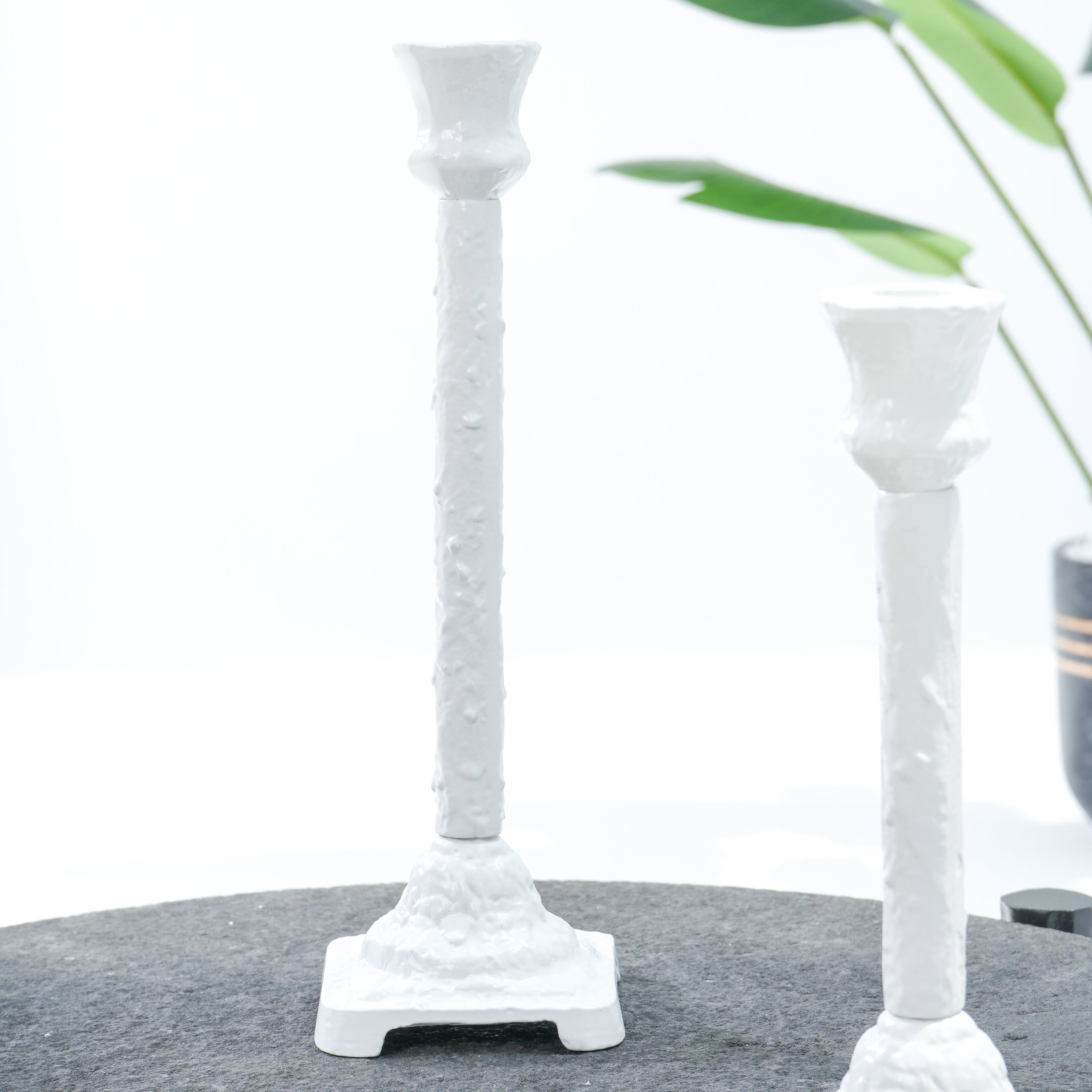 With a delicate white powder finish, this holder creates a serene atmosphere. Dimensions: 10.16 x 10.16 x 32.39 cm.