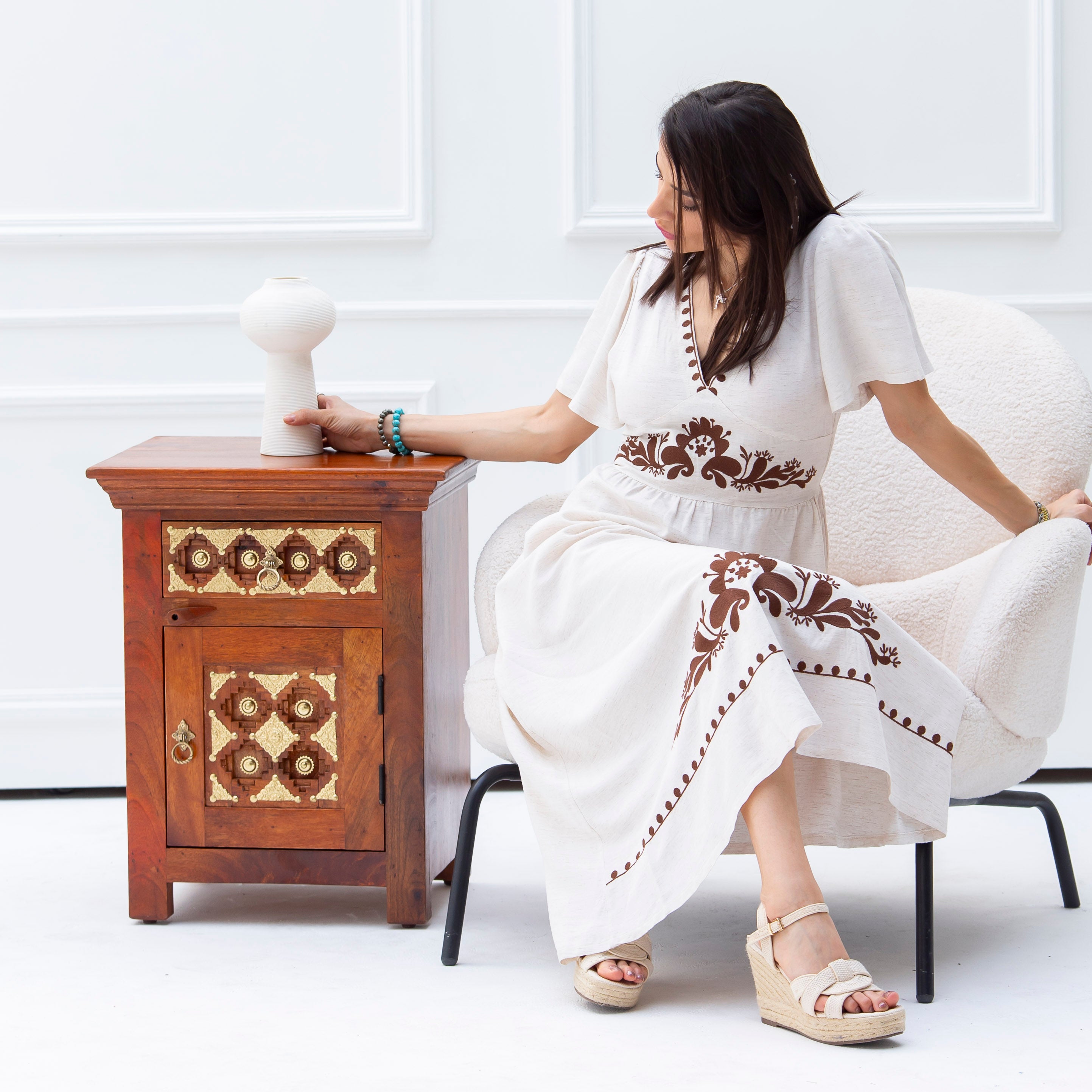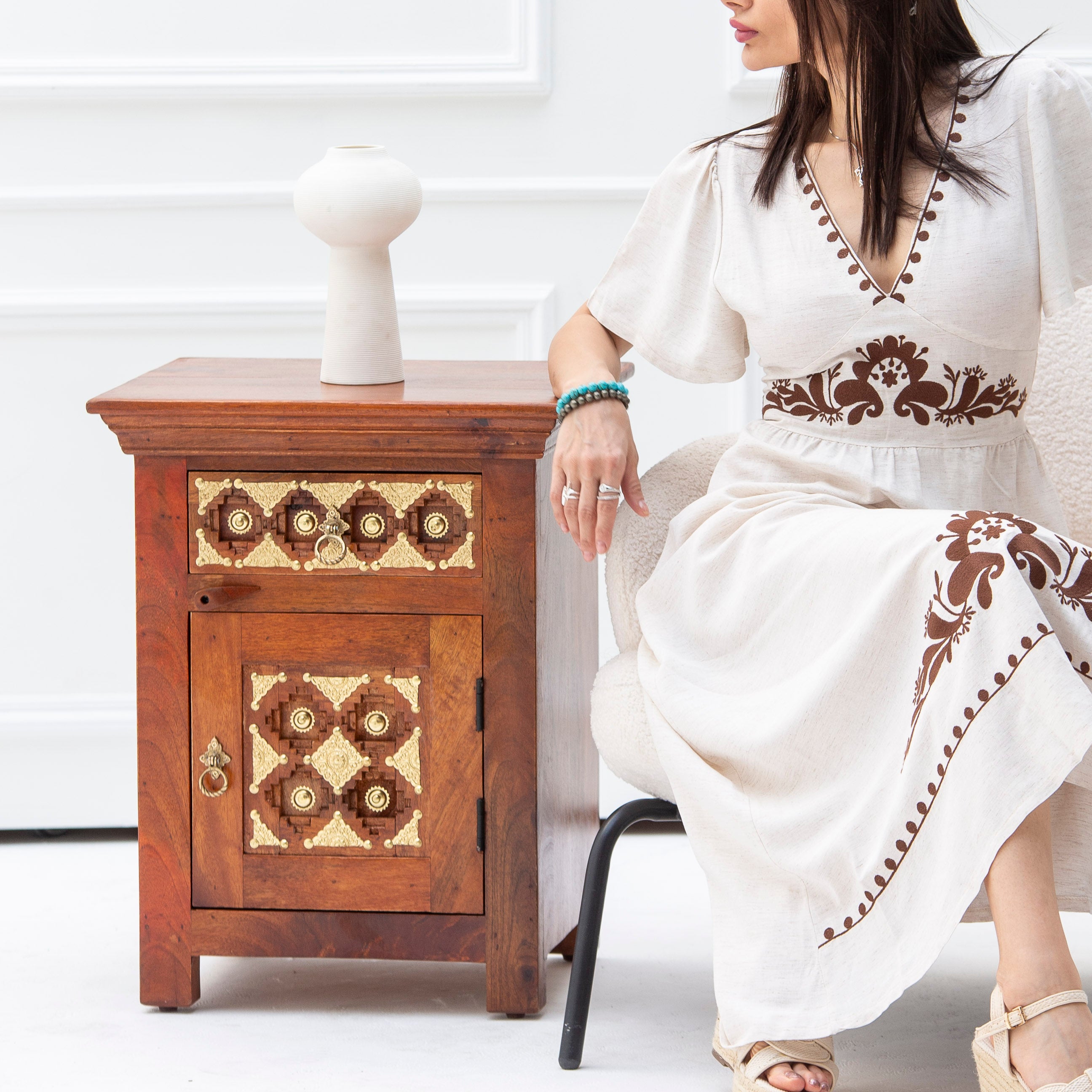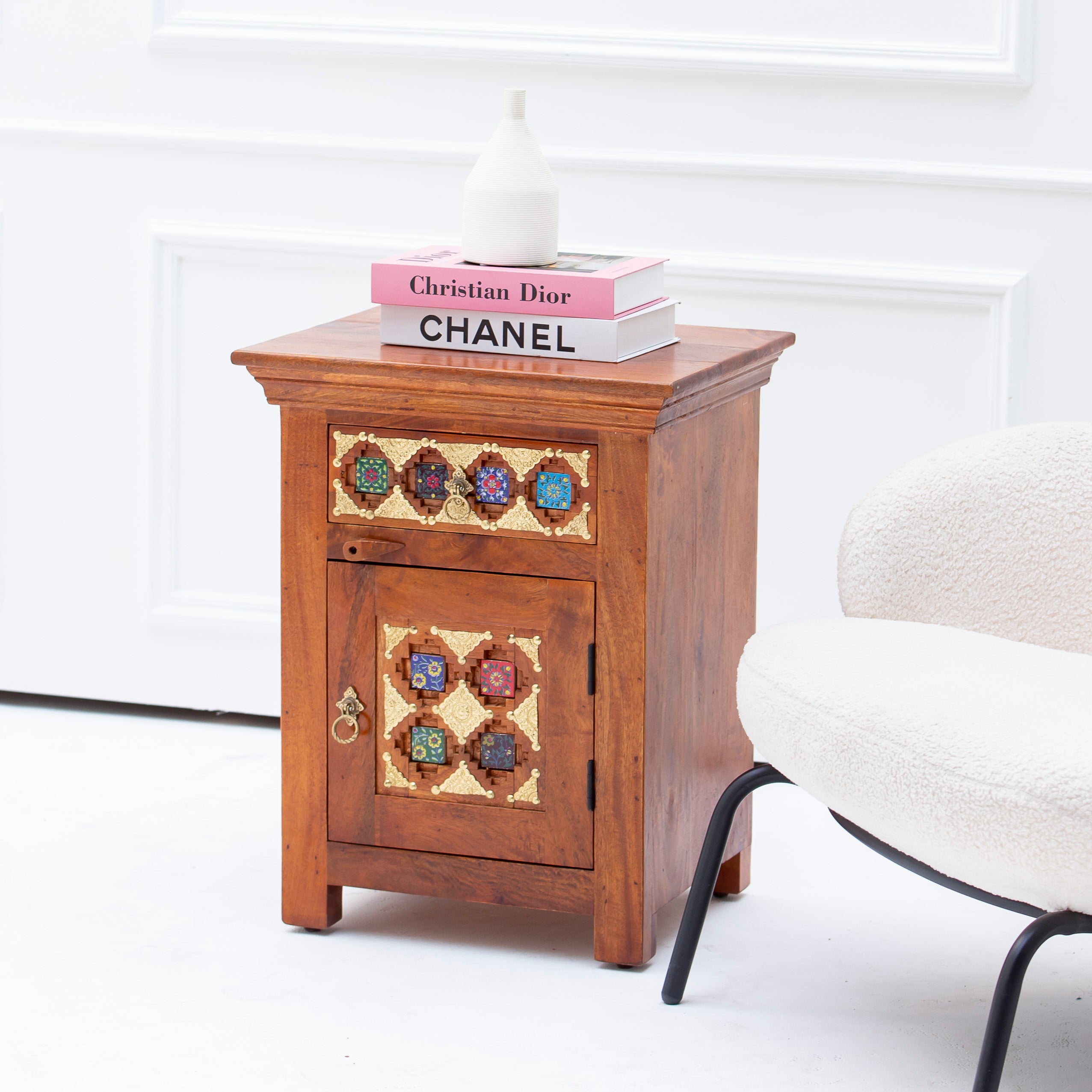 Handcrafted in India, this SHESTILE Nightstand Table brings authentic artisanal charm to your bedroom. Each piece showcases traditional craftsmanship with thoughtful design that balances form and function. The sturdy construction provides reliable storage for your nighttime essentials, while its distinctive character adds warmth and personality to your space. A timeless addition for those who appreciate handmade quality and cultural heritage in their home furnishings.