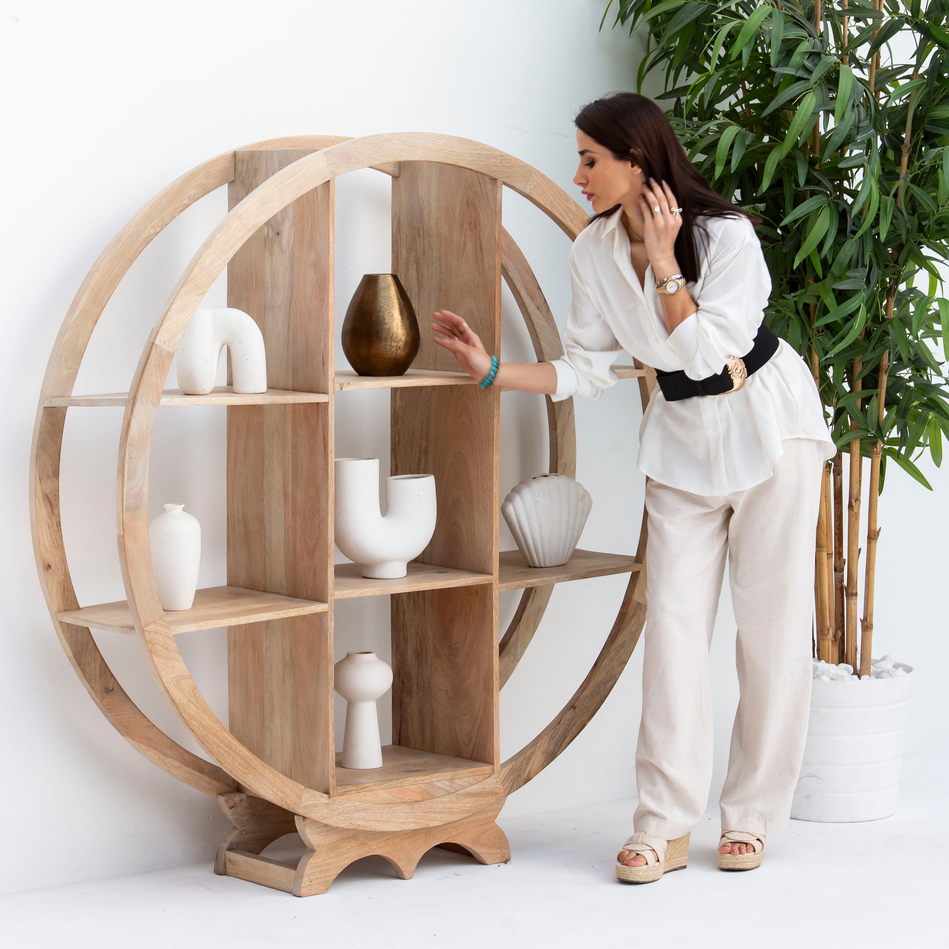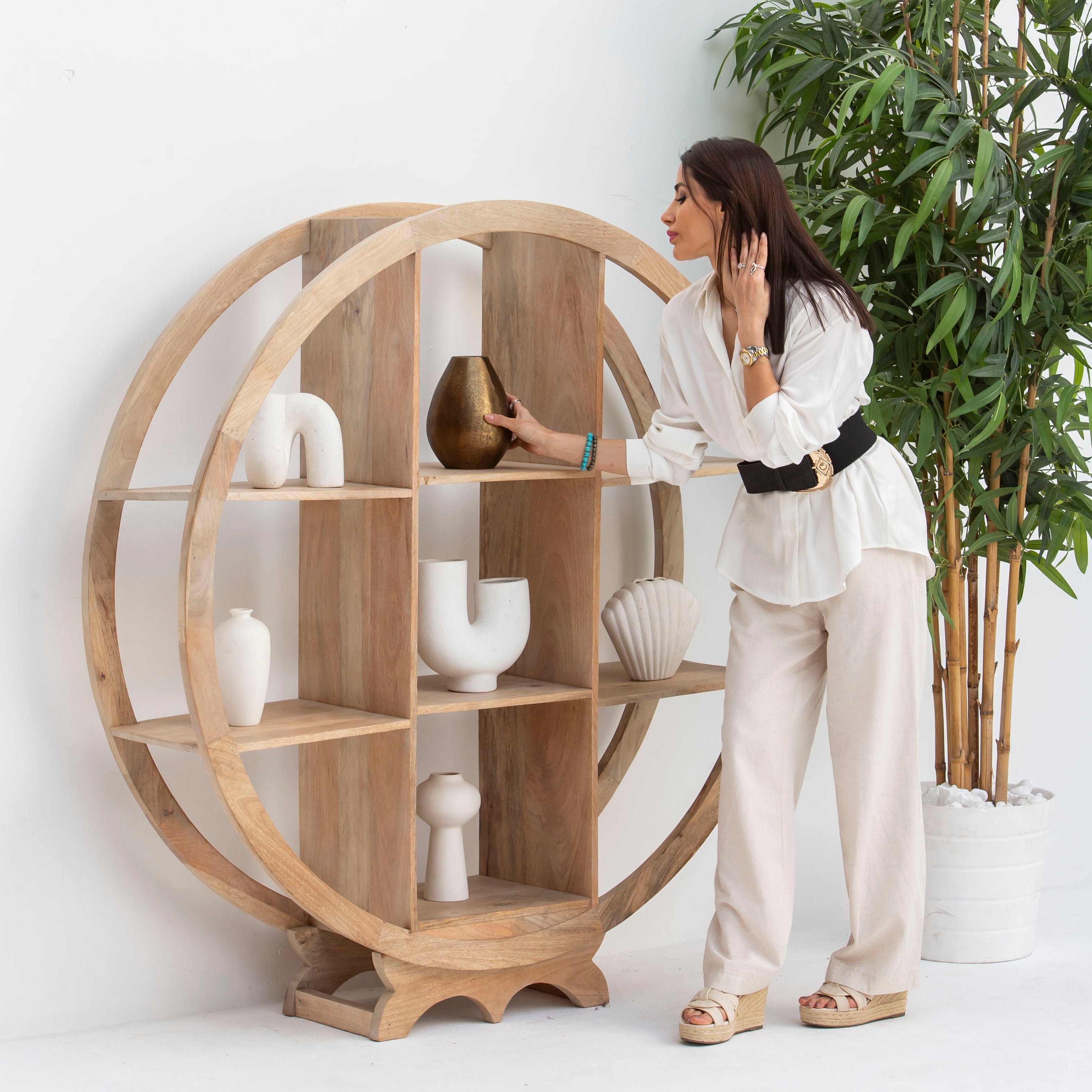 Discover the timeless elegance of our AUREVO Wooden Round open Bookshelf, meticulously handcrafted from premium mango wood. This artisanal piece brings authentic Indian craftsmanship into your home, featuring a distinctive circular design that showcases your literary collection with understated sophistication. The rich, natural grain of mango wood develops character over time, making each shelf a unique statement. Perfect for book lovers and design enthusiasts who appreciate quality materials and thoughtful construction. A functional work of art that celebrates traditional woodworking techniques.