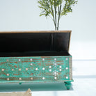 Discover the natural beauty of this handcrafted wooden box, finished in a rich green hue. Meticulously made in India by skilled artisans, each piece showcases authentic craftsmanship and attention to detail. Perfect for storing treasures, organizing your space, or displaying as a decorative accent, this wooden box brings warmth and character to any room. A genuine handmade creation that celebrates traditional woodworking artistry.