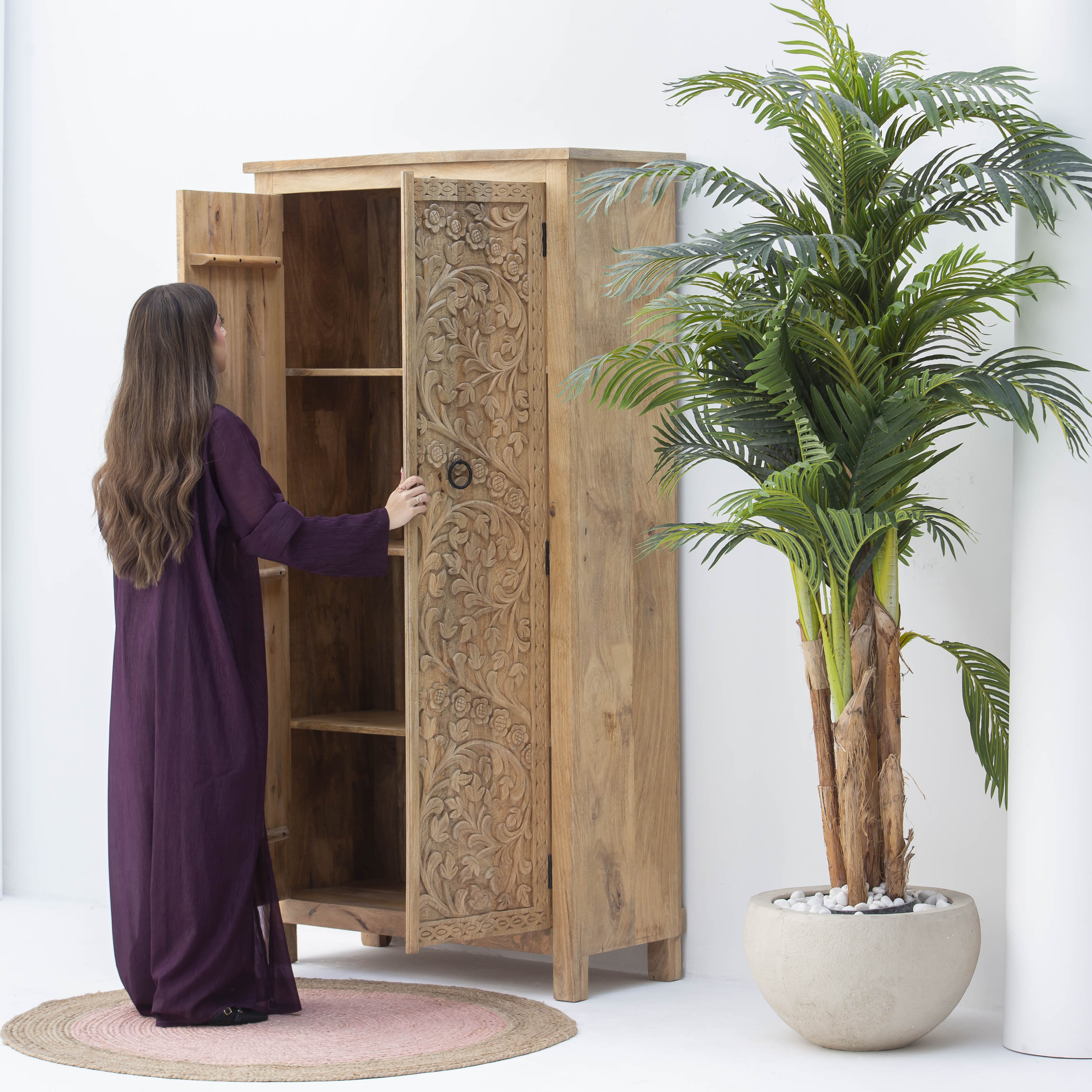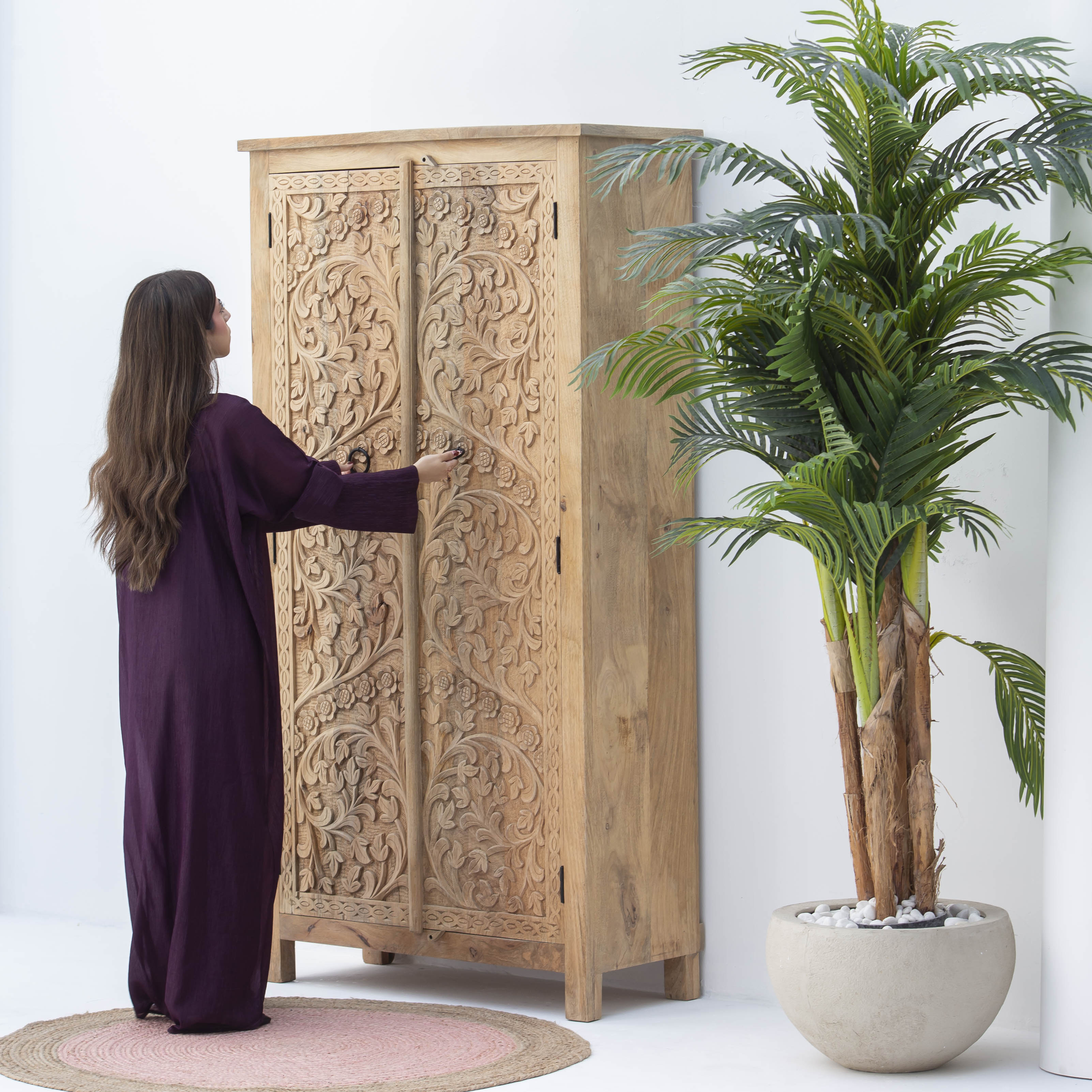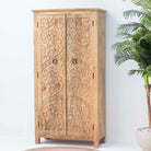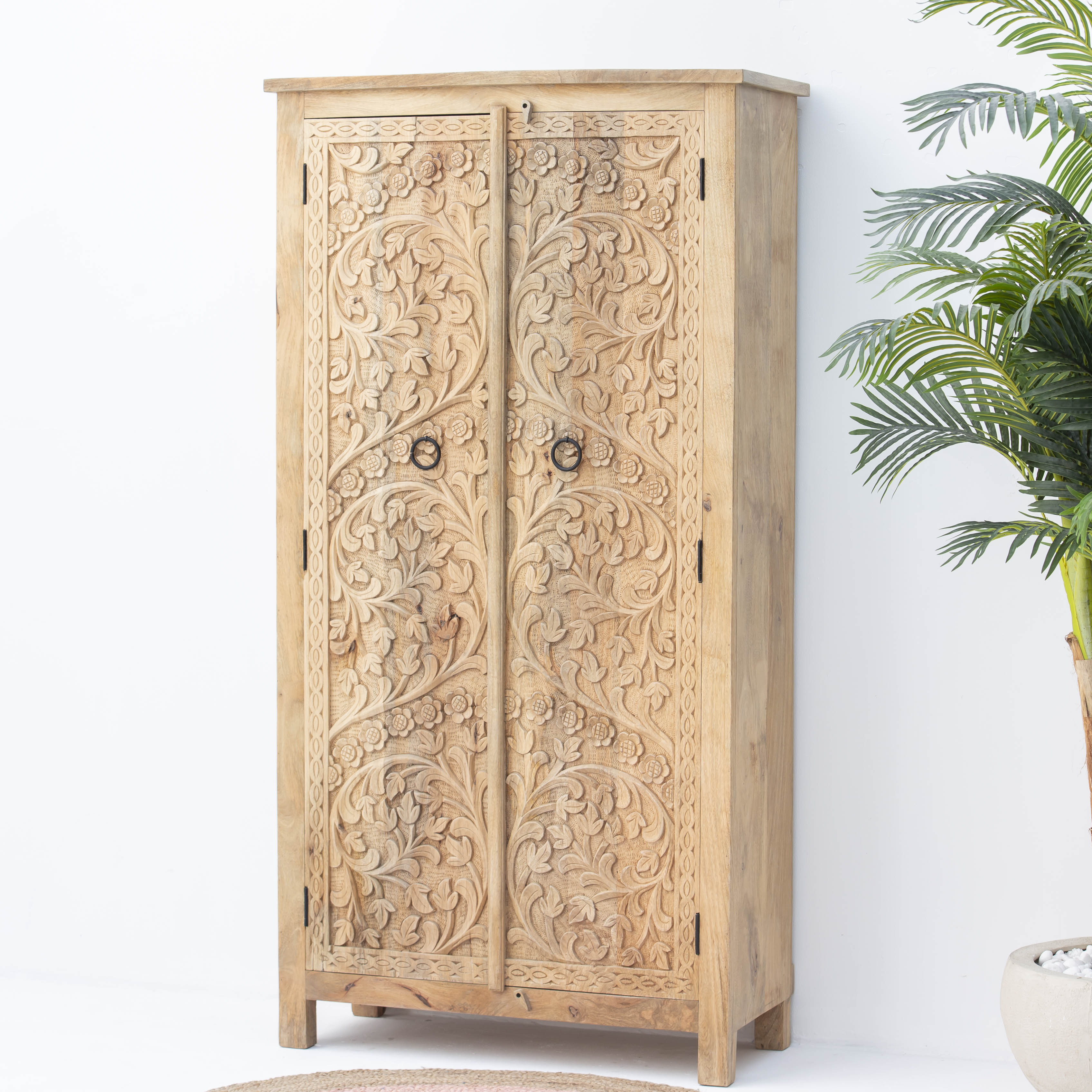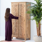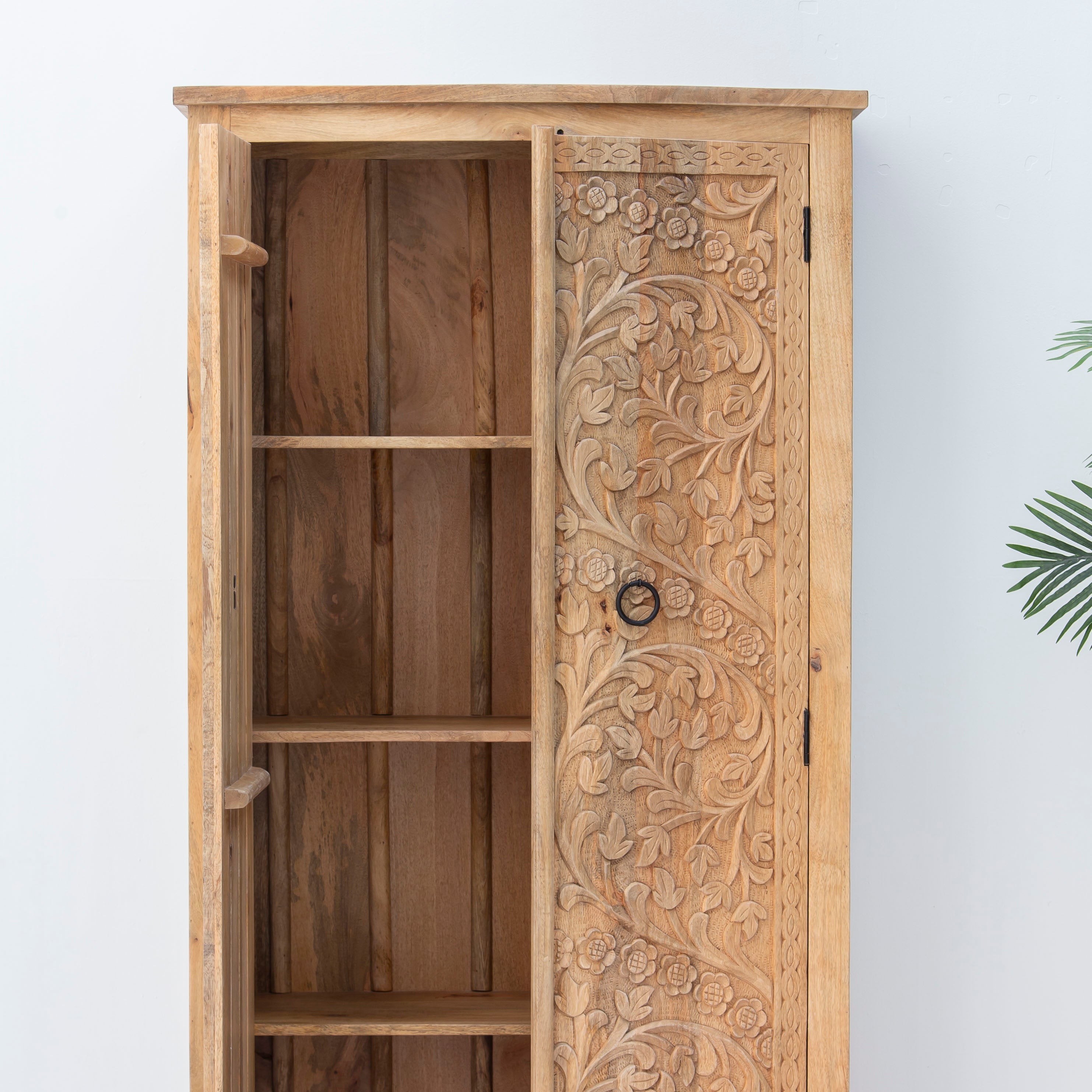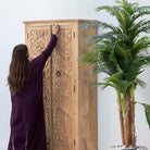 Handcrafted with meticulous attention to detail, this carving wooden cabinet showcases traditional artisanal craftsmanship. Each piece features intricate carved patterns that reflect skilled woodworking heritage, transforming functional storage into a statement of artistic expression. The natural wood grain and sculptural details add warmth and character to any interior space, making it an ideal choice for those who appreciate authentic, handmade furniture that tells a story.