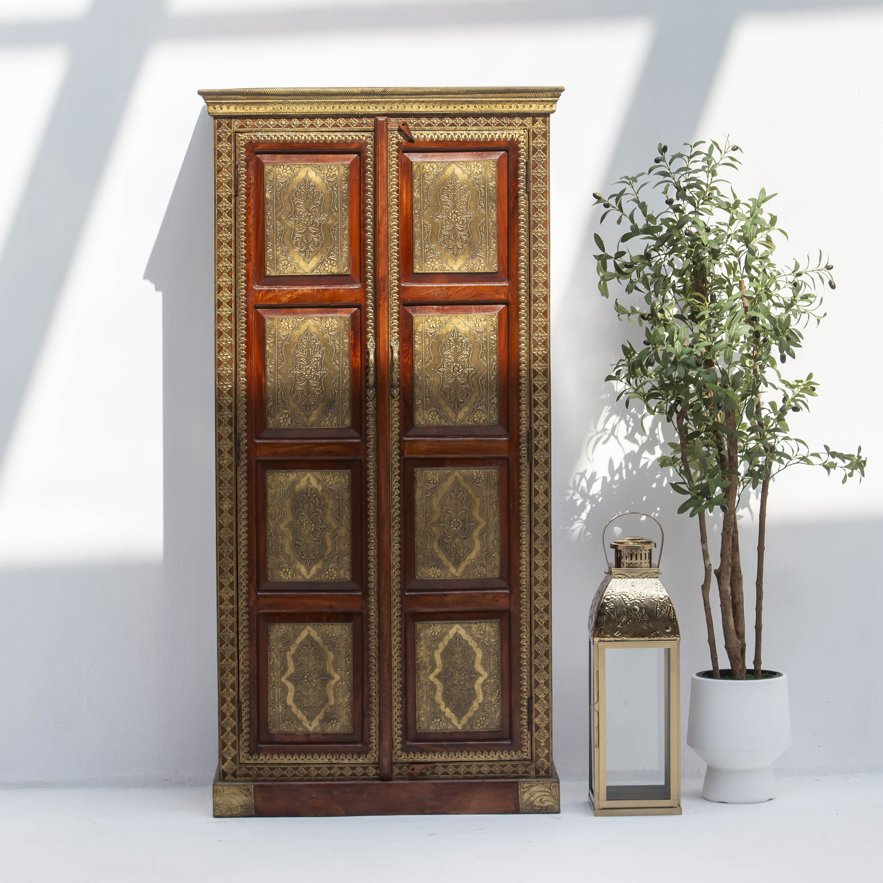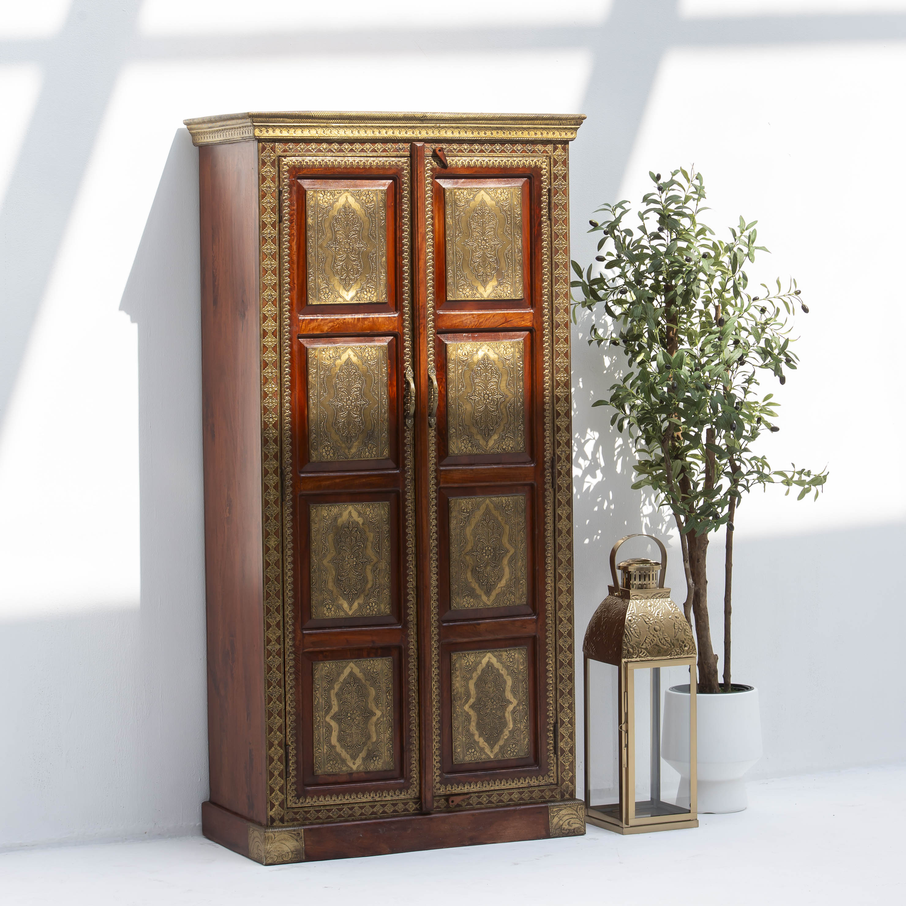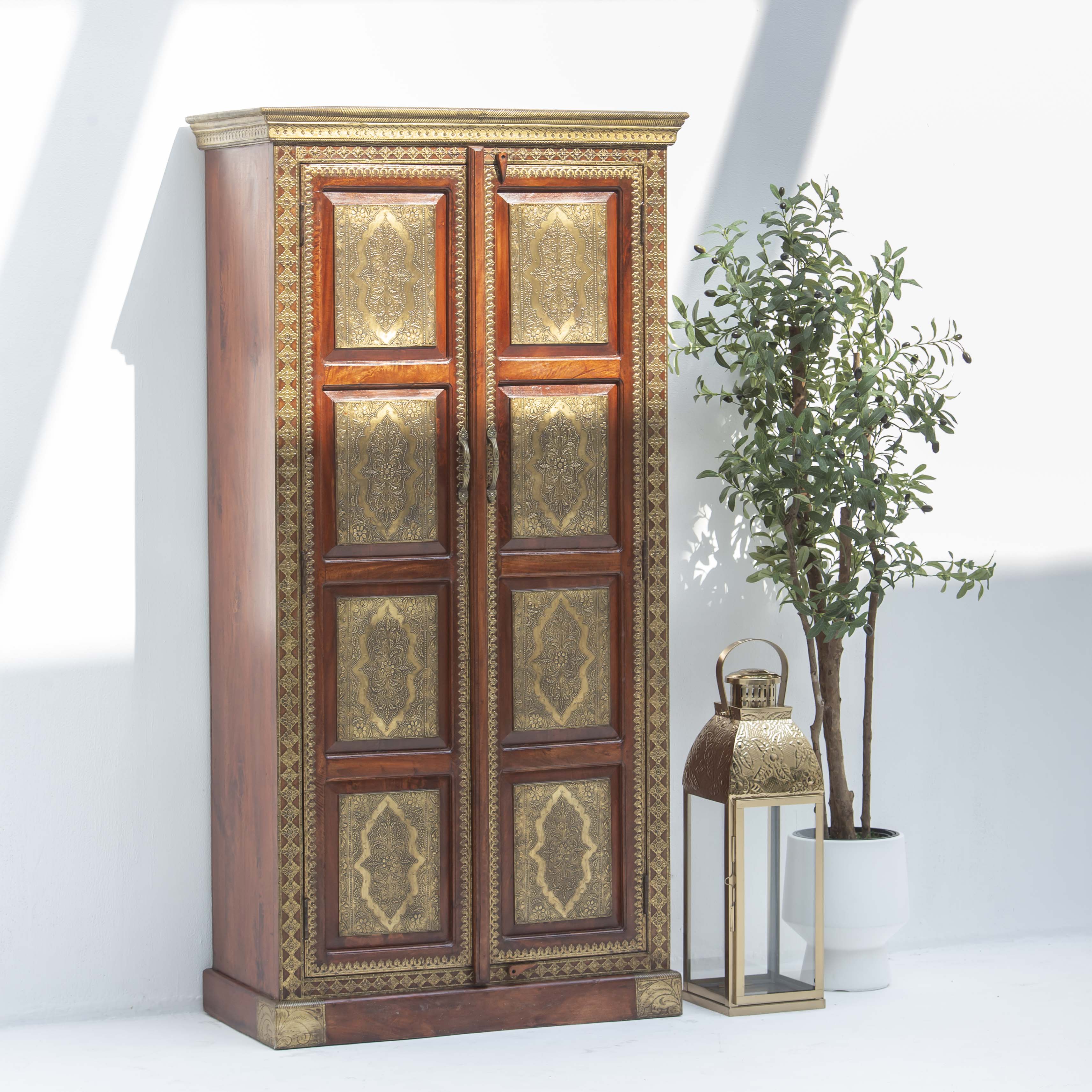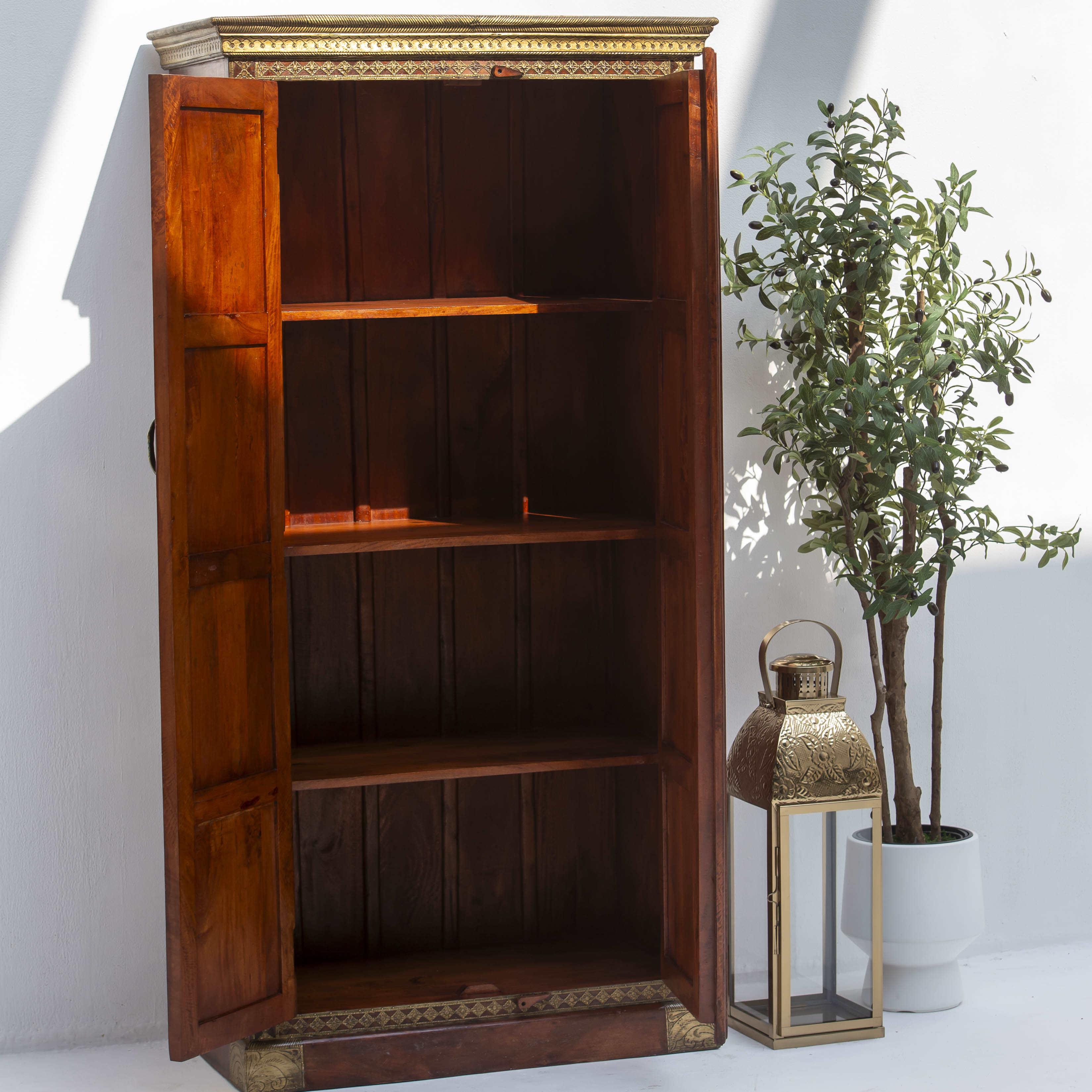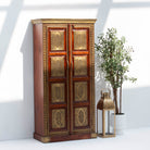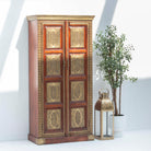Discover the timeless elegance of our Richmond Brass Two Door Cabinet, a masterpiece of Indian craftsmanship. Handcrafted from premium mango wood, this stunning piece combines rich natural grain with gleaming brass accents that catch the light beautifully. The two spacious doors open to reveal generous storage, making it both a functional addition and a striking focal point for any room. Each cabinet is uniquely crafted by skilled artisans, ensuring no two pieces are identical. Perfect for displaying treasured collections or storing everyday essentials with style and sophistication.