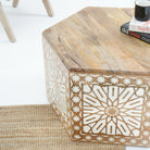 Introducing the CNC Harmony Coffee Table, featuring intricate designs and solid wood craftsmanship from India. This modern piece adds style and functionality to any room. Comes with a 1-year warranty for lasting quality and peace of mind!