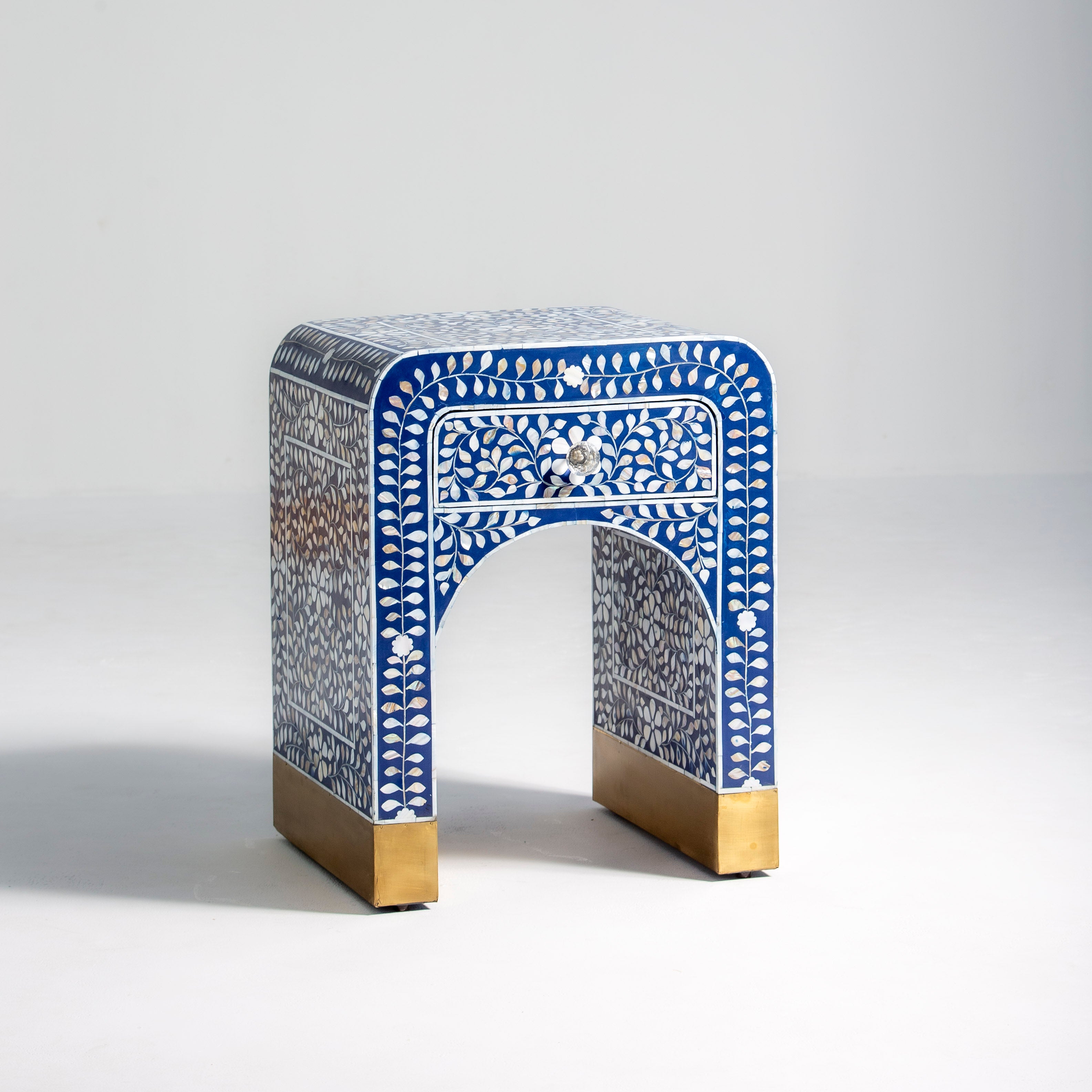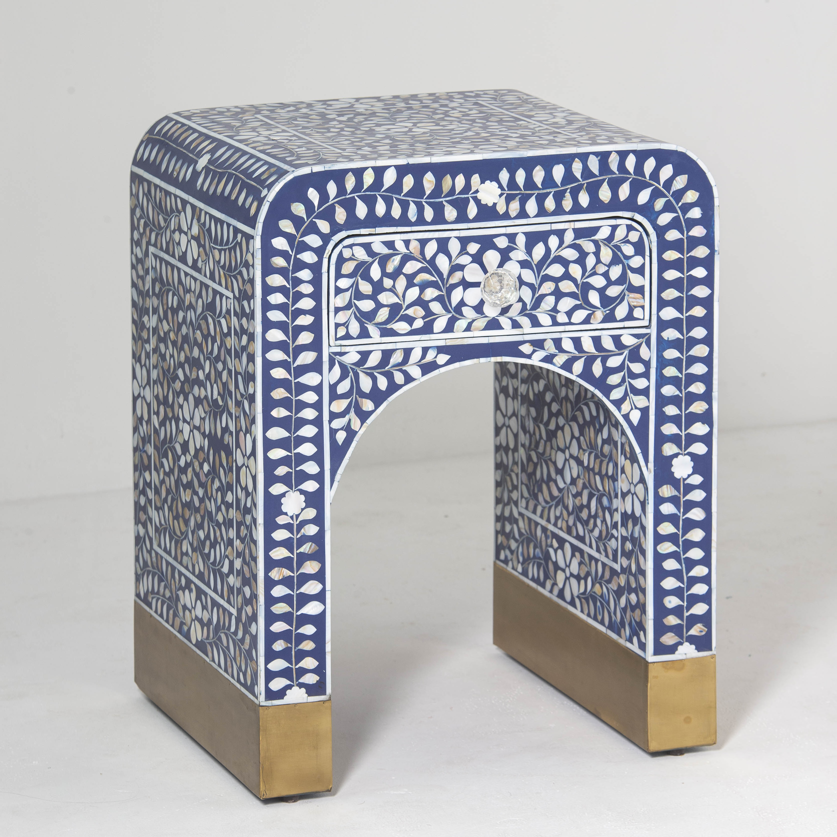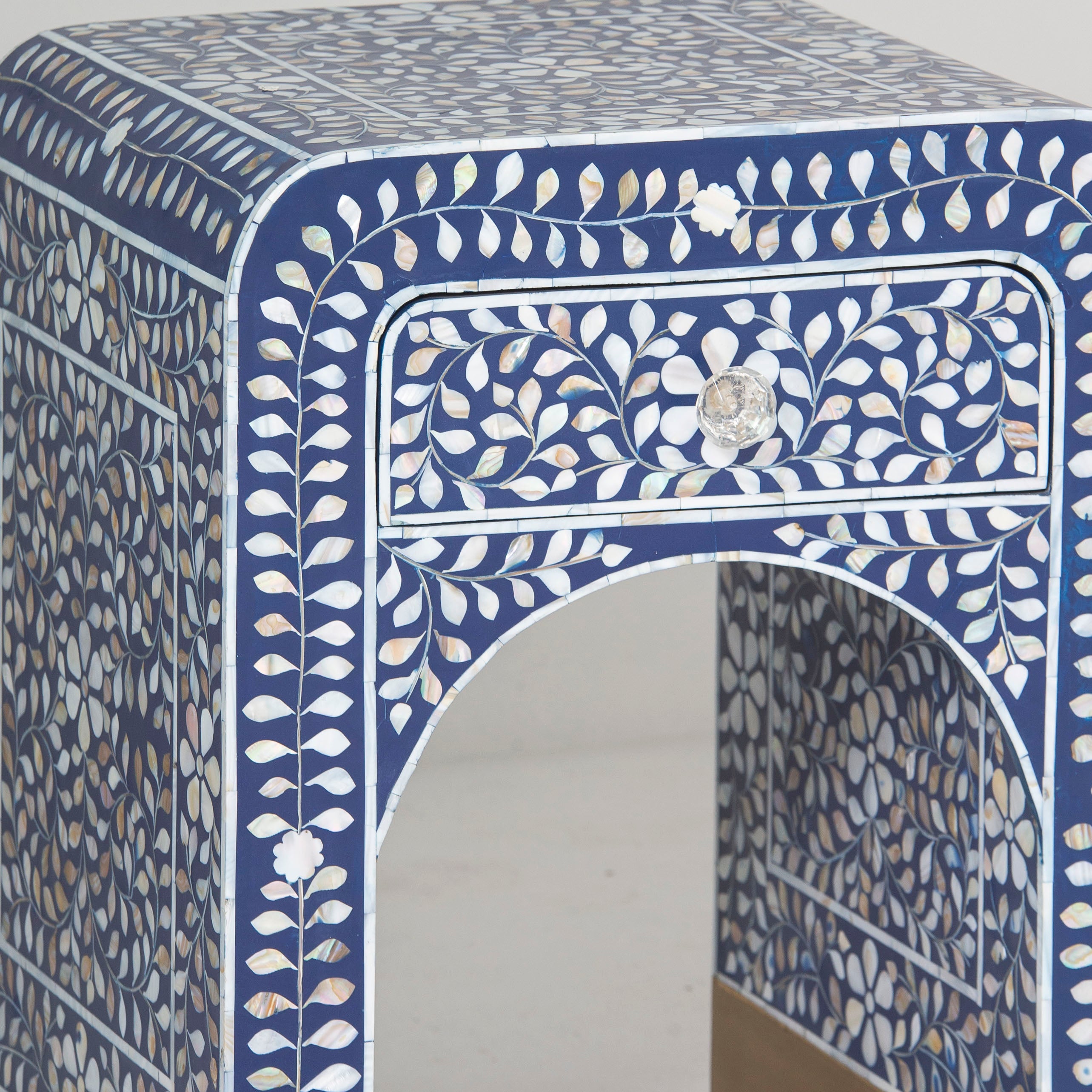 OCEAN PEARL MOP BLUE ONE DRAWER BEDSIDE TABLE