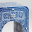 Handcrafted with meticulous attention to detail, this Ocean Pearl bedside table showcases the natural beauty of mother-of-pearl inlay against a serene blue finish. The single drawer provides discreet storage for nighttime essentials, while the compact design fits seamlessly beside any bed. Each piece celebrates artisanal craftsmanship, with the luminous pearl detailing catching light beautifully. A timeless accent that brings coastal elegance and functional grace to your bedroom sanctuary.