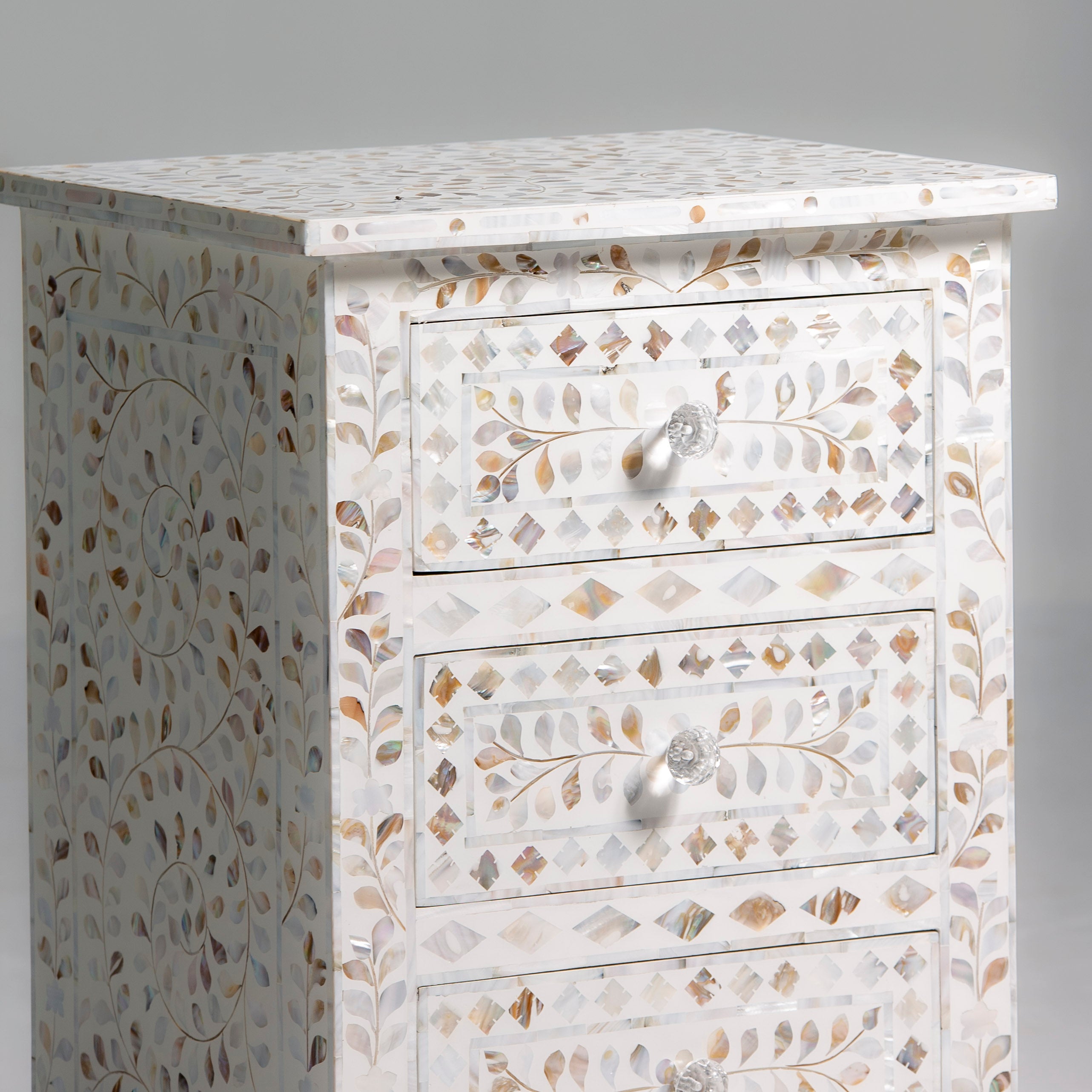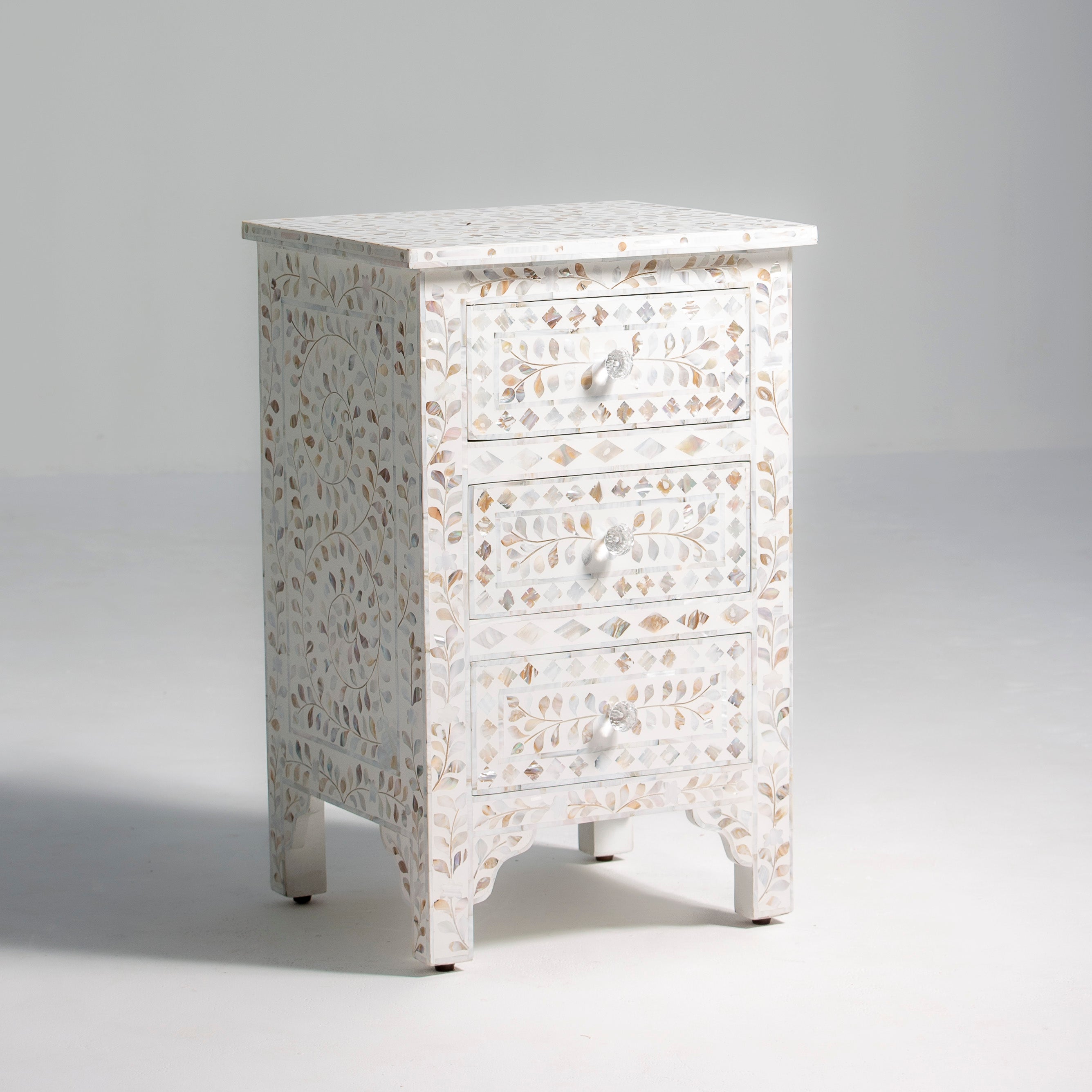 Handcrafted with meticulous attention to detail, this Ocean Pearl White bedside table brings understated elegance to your bedroom sanctuary. Three generously proportioned drawers offer thoughtful storage for nighttime essentials, while the soft pearl finish catches light beautifully. The clean lines and timeless design complement both contemporary and traditional interiors, making it a versatile addition to your sleeping space. Built to endure, this piece celebrates the artistry of fine furniture craftsmanship.